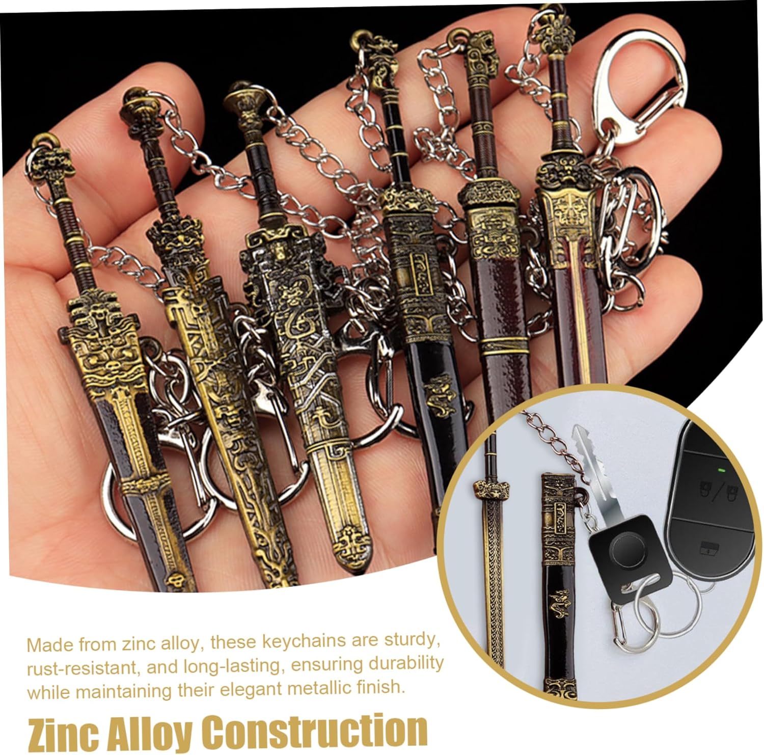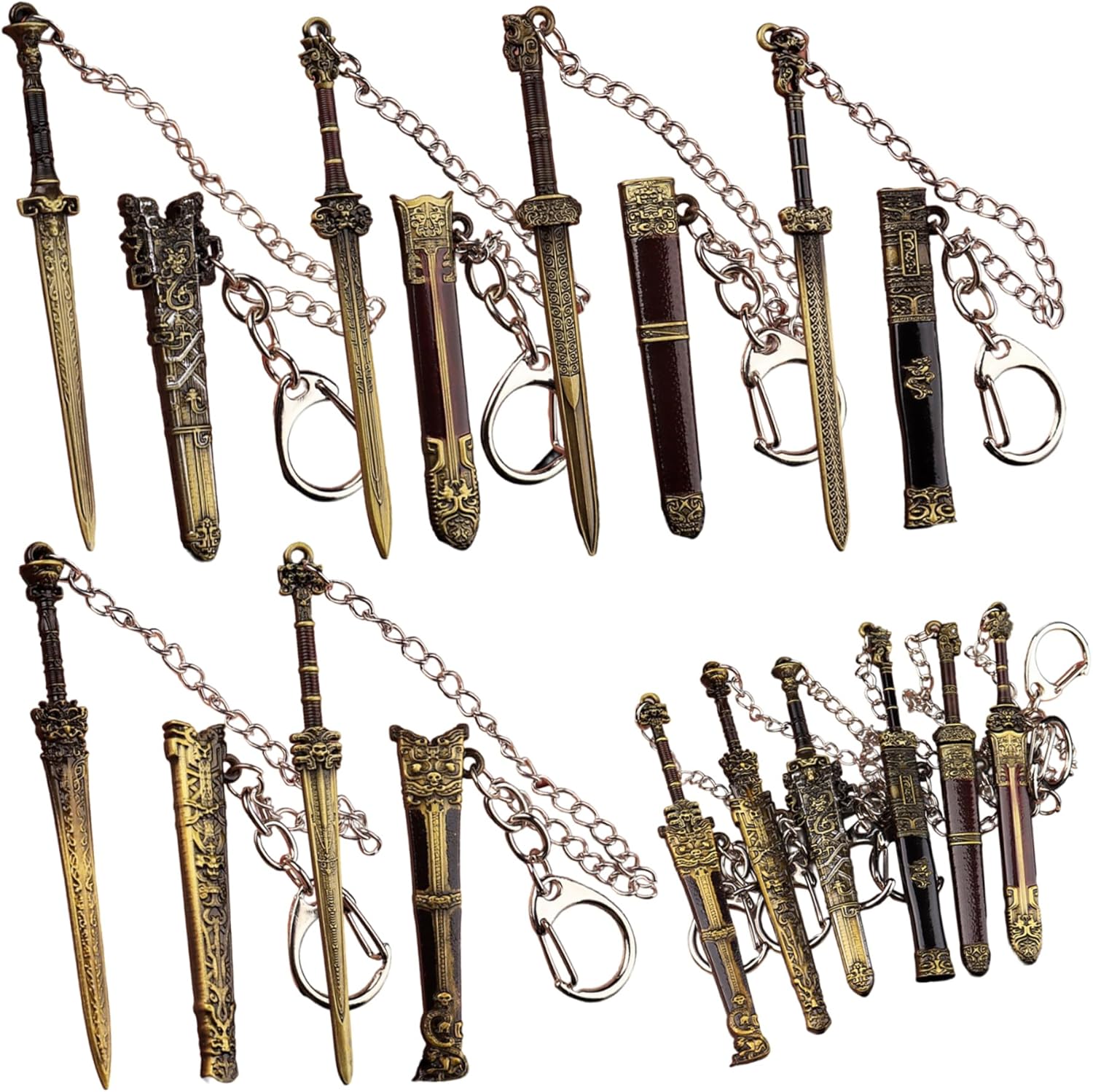 Design stabile e leggero: realizzato in metallo robusto con un fodero incluso, questi portachiavi offrono sia durata che leggerezza, garantendo che resistano all'usura quotidiana senza aggiungere massa alle tue cose. Squisita artigianato in miniatura: ogni portachiavi da 3,5 pollici per la spada è meticolosamente realizzato in metallo, con dettagli intricati che replicano magnificamente l'eleganza di una vera spada, rendendola un accessorio unico e accattivante. Ottimo regalo per tutte le occasioni: sia come regalo di compleanno, sorpresa per le vacanze o oggetto da collezione, queste mini portachiavi di spada rendono regali ponderati per amici, familiari o appassionati di spada. Unisex e accessorio alla moda: combinando il design classico della spada con un'estetica moderna, questi portachiavi fanno appello a un vasto pubblico, fungendo da un accessorio per tastiera o una borsa carina ed elegante che integra qualsiasi look. Fantastico multifunzionale borse e borse: progettati per la versatilità, questi portachiavi attaccano facilmente a borse, borse, zaini o chiavi, aggiungendo sia lo stile che la personalità agli elementi essenziali quotidiani per uomini e donne.