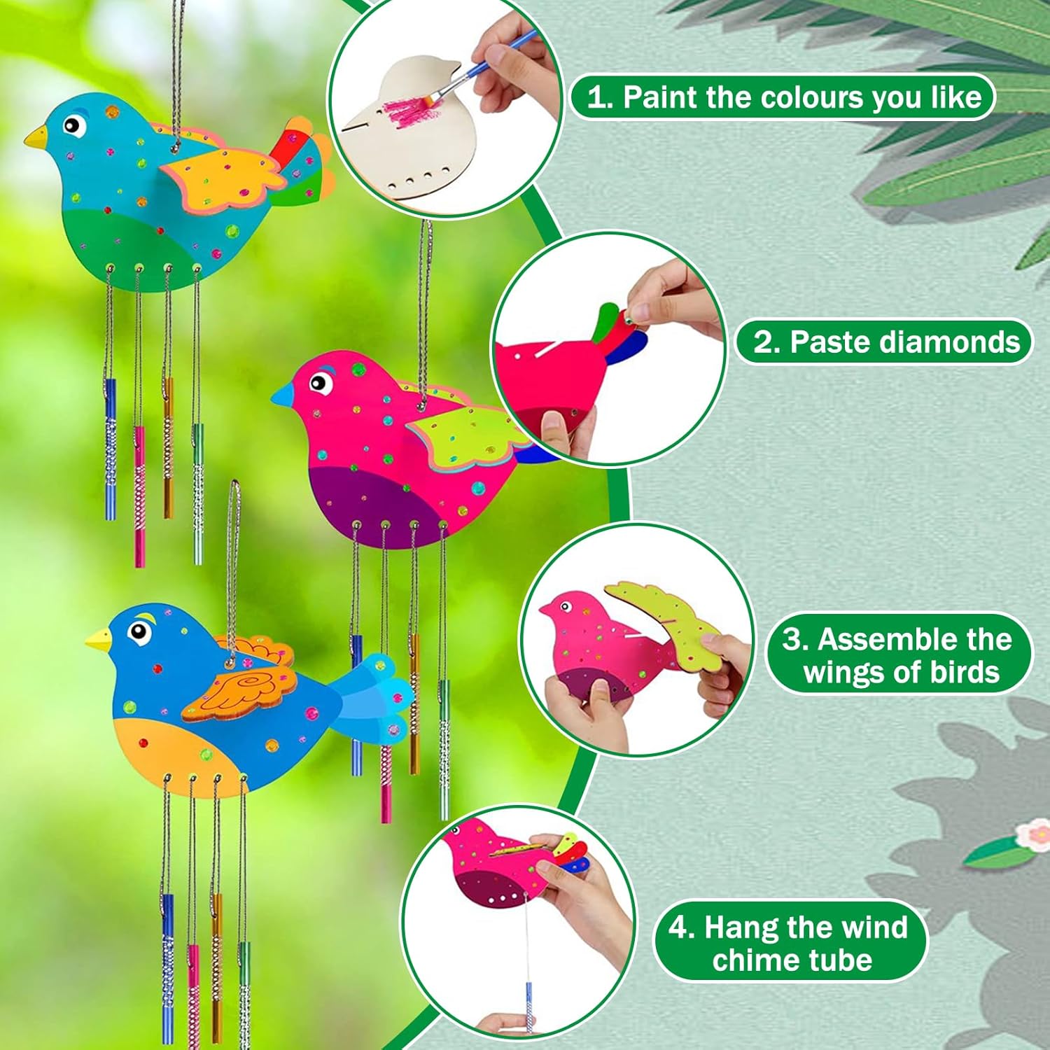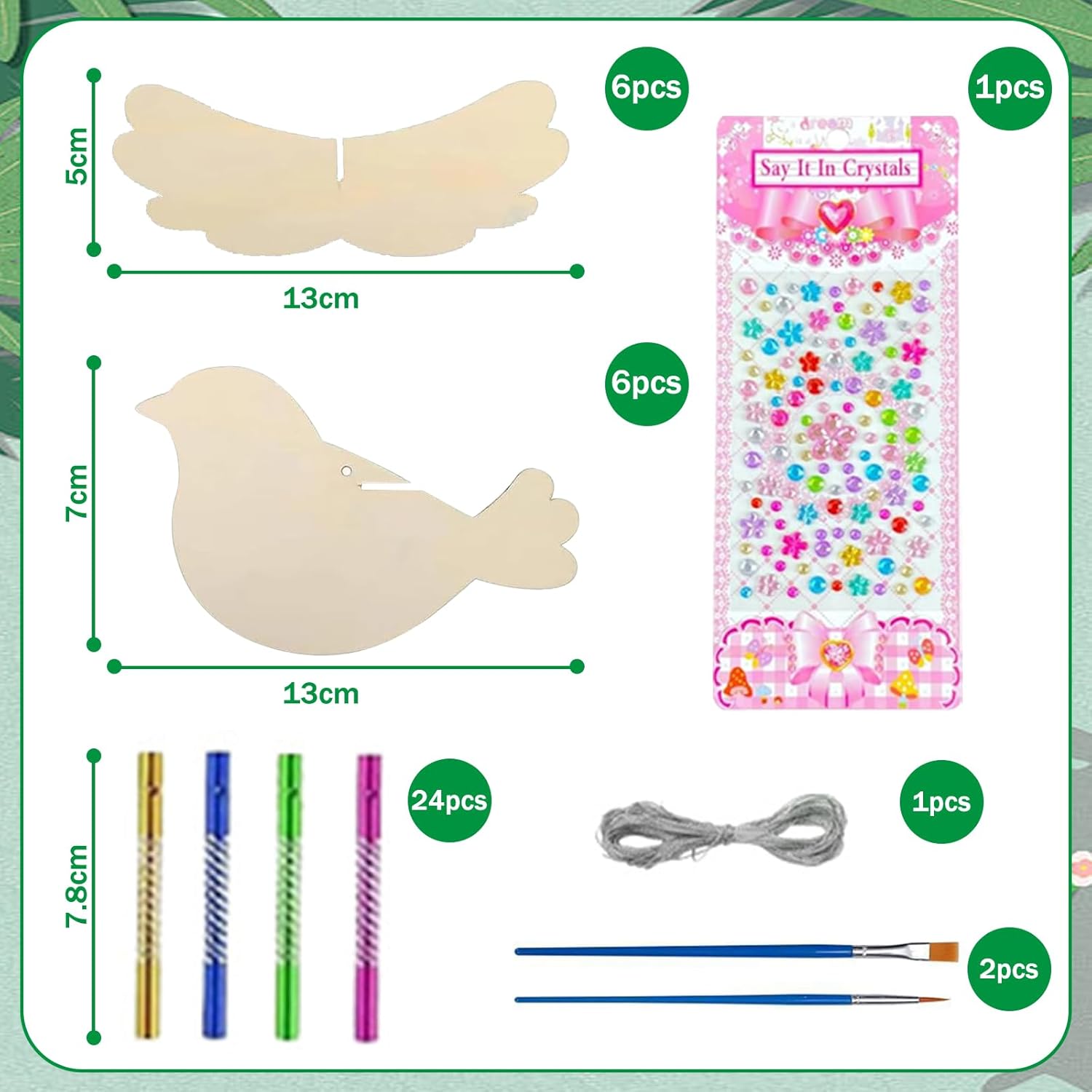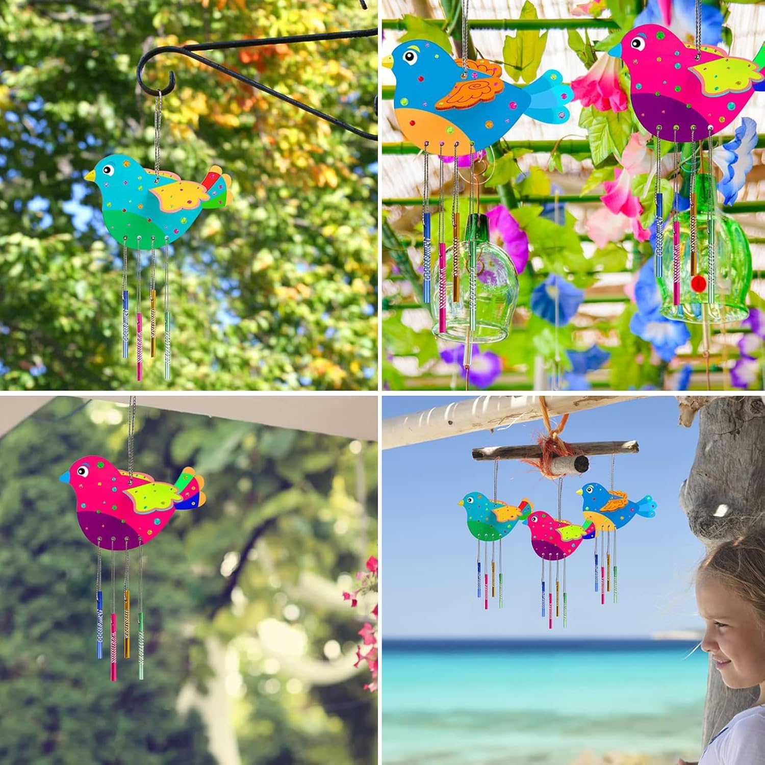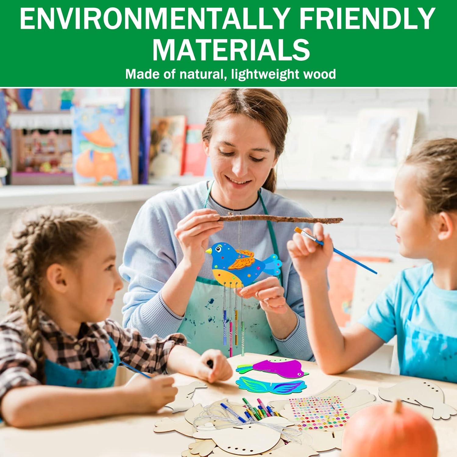 【Elenco dei pacchetti】Riceverai Il set contiene 6 combinazione di chip in legno di uccello + 24 carillon del vento + 1 adesivo + 2 pennelli + filo d'argento 6 metri, quantità di stile sufficiente per le tue esigenze. 【Materiale di qualità】l'artigianato è realizzato in materiale di alta qualità, ben fatto, durevole, solido da usare, non facilmente deformabile o rotto, leggero e portatile, offre una lunga durata. 【Design fai da te】Questi animali in legno sono facili da dipingere e colorare. I bambini possono scegliere diverse combinazioni di adesivi e colori per dipingerli secondo le loro idee, stimolando la loro creatività e immaginazione. 【Versatile】Dopo aver accompagnato i tuoi bambini ad assemblare i campanelli eolici, puoi scegliere di appenderli in luoghi come le finestre della porta di casa. La brezza emetterà un suono piacevole, aggiungendo atmosfera familiare. 【Ampiamente utilizzato】Questo set di campanelli eolici è perfetto per bomboniere, premi, lavori manuali, decorazioni e altro ancora.