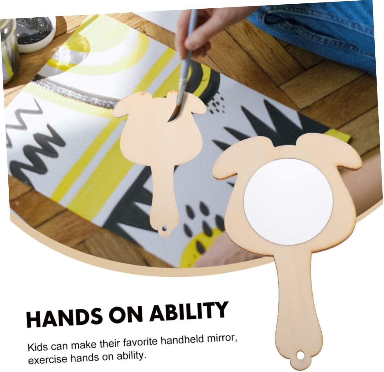 Mini specchio decorativo: quantità sufficiente e puoi anche condividerli con la tua famiglia e i tuoi amici, piccoli specchi fai da te Specchio con maniglia incompiuta: guida le associazioni dei bambini a modellare le cose, stimola l'abilità pratica dei bambini ed esercita l'abilità creativa e logica dei bambini, specchio per il trucco portatile Piccoli specchi artigianali: sono realizzati meticolosamente e il non sbiadisce facilmente dopo un uso prolungato, specchio in legno creativo Mini giocattolo: i bambini possono realizzare il loro specchio portatile preferito, esercitare abilità pratiche, mini giocattoli Giocattoli per specchi portatili: puoi usare pennarelli, argilla morbida o altri strumenti fai da te per realizzare degli ornamenti su questo specchio di legno , specchio per il trucco portatile