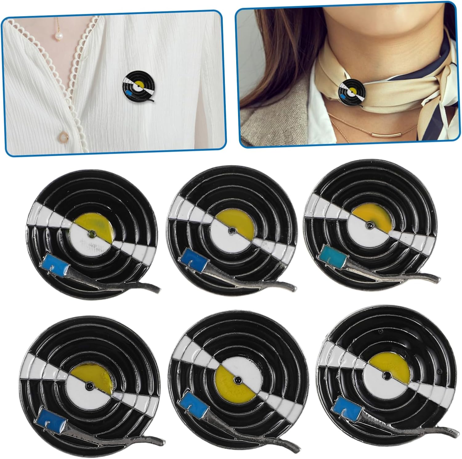 Il pacchetto include 6 spille Caratteristiche -Materiale: spilla a forma di giradischi in metallo -Design classico: unendo elementi di dischi in vinile e grammofono, le spille musicali offrono un modo unico ed elegante per mostrare la tua individualità spilla a forma di giradischi musicale - Ottima idea : ideali per gli appassionati di musica e gli amanti della moda vintage, queste spille sono un delizioso e memorabile. - Buona finitura in smalto: queste spille musicali presentano un rivestimento in smalto vibrante che garantisce una spilla retrò per dischi comoda e non irritante. - Adatto a qualsiasi occasione: adatto per l'uso quotidiano che per eventi speciali, queste spille a forma di giradischi aggiungono un tocco retrò al tuo look spilla a forma di giradischi -Colore: spilla vintage multicolore -Portatili e alla moda: leggeri e facili da attaccare, questi spilli decorativi per giradischi completano una varietà di stili di abbigliamento spilla musicale -Dimensioni: spilla piccola 2,50X2,50X1,00 cm/0,98X0,98X0,39 pollici Informazioni sulle merci Spilla vecchio stile Perfetta per chi apprezza lo stile vintage, questa spilla a forma di giradischi è alla moda che funzionale. Spilla da bavero a forma di disco retrò La finitura in smalto conferisce loro un aspetto raffinato, mentre la robusta chiusura assicura che rimangano attaccati per tutto il . Spilla a forma di giradischi musicale Sono un ottimo modo per esprimere il tuo per la musica e l'estetica retrò