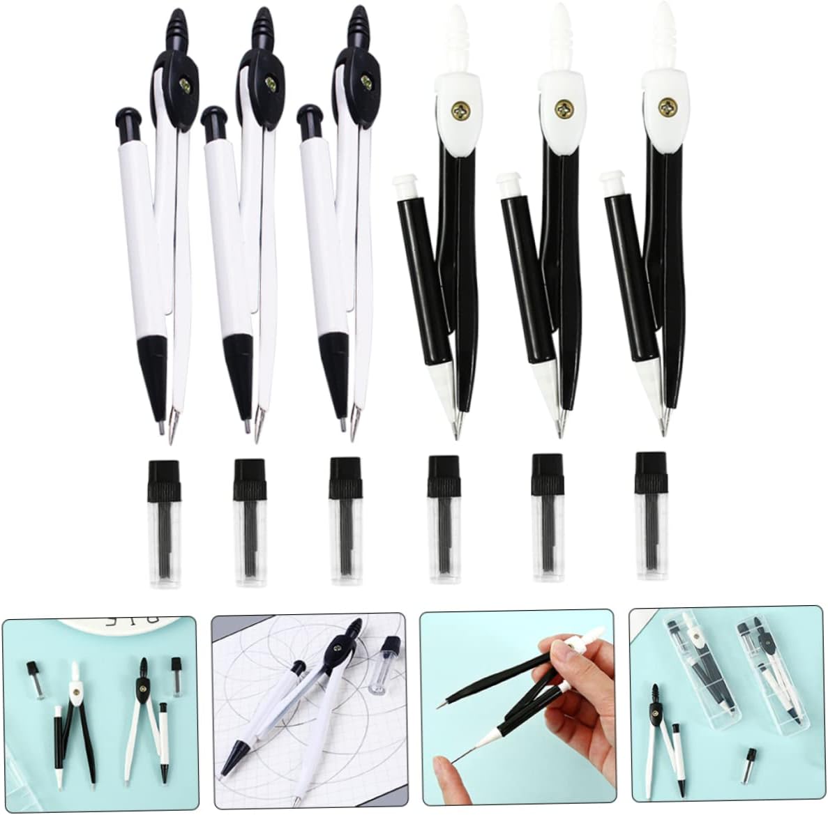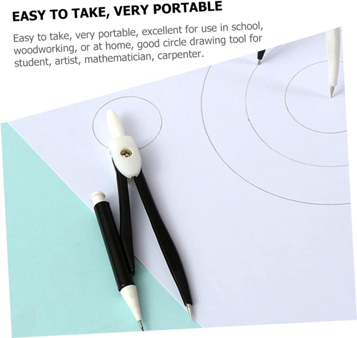 Bussola per studenti: l'impugnatura della bussola ha un design antiscivolo, consente di impugnarla in modo più comodo e facile da usare, bussola portatile Bussole in metallo: questa bussola in metallo può aprirsi e chiudersi senza problemi, con elevata precisione, per piegarsi o rompersi, bussola per disegnare cerchi Compasso per disegno circolare: ampiamente utilizzato per matematica, geometria, arte, design, disegno, disegno e altri campi, strumenti da disegno Strumento per disegnare cerchi: adottando materiali metallici robusti, questo compasso per studenti è facile da piegare e deformare, compasso geometrico Compasso circolare: le punte dure del compasso possono marcare con precisione il pezzo in lavorazione, per disegnare archi, cerchi, linee di demarcazione, segmenti di , ecc., compasso da disegno
