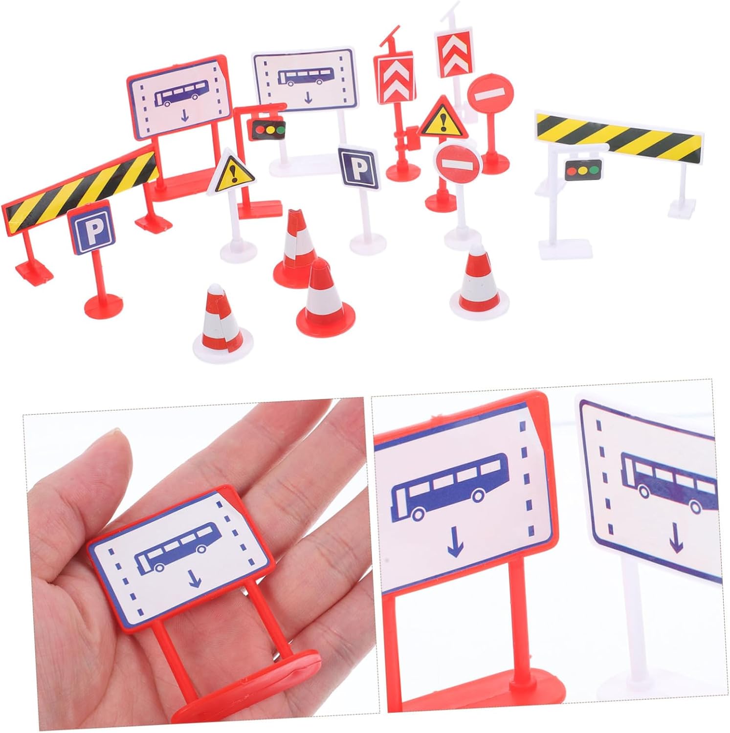 Mini decorazioni stradali: incoraggia a essere fantasioso e a studiare bene con gli altri, e puoi anche decorare la loro imbarcazione con questi modelli di segnali stradali, modelli di segnali simulati. stradale: giocattoli interattivi genitore-figlio per approfondire la connessione con tuo figlio e possono imparare qualcosa attraverso il giocattolo, il di parcheggio stradale. Arredamento-- insegna a la segnaletica stradale essenziale e le regole di sicurezza in età, la segnaletica di handicap per il parcheggio. Giochi di parcheggio per auto: adottati con , robusti e per un uso duraturo, decorazione micro paesaggistica, aumento dei dettagli del paesaggio, mini coni stradali. Arredamento della scena: selezionato di buona fattura e materiale abs, liscio, sicuro e robusto, è posizionarli nel modello di sabbia e nella mini casa, segnale stradale di simulazione.
