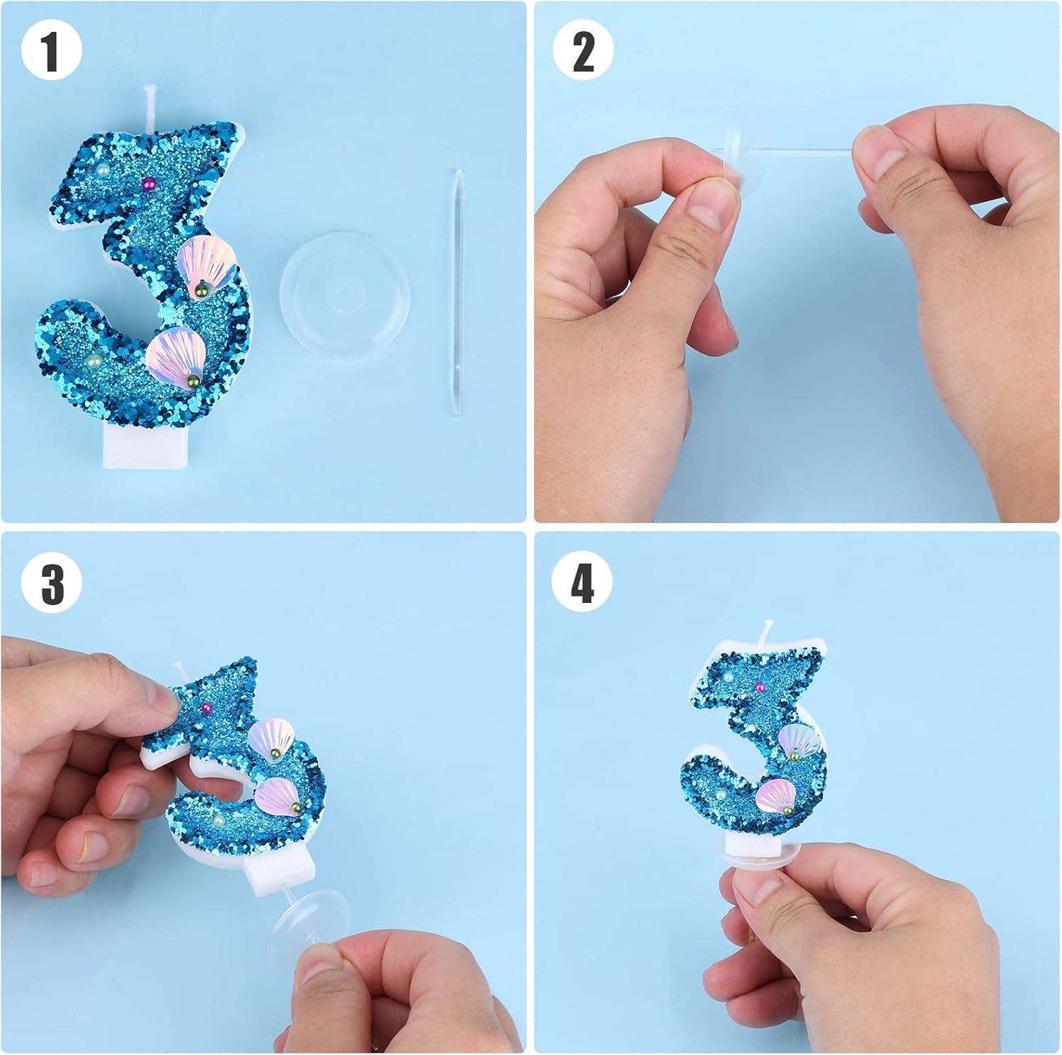 Dimensioni perfette: il candele numeri torta blu misura circa 7,5 cm di altezza e 5,2 cm in altezza del bastone.Il vassoio è di circa 2,8 cm.Si prega di controllare le dimensioni del nostro prodotto prima di acquistare. Materiale affidabile: la nostra 3d numeri candele blu è realizzata in cera senza fumo premium, ecologica e affidabile.Facile da accendere e può bruciare in modo uniforme e coerente.Puoi scegliere liberamente qualsiasi numero da 0 a 9 o creare un numero di numeri che desideri, come 10, 19, 24, 30, ecc., Per festeggiare il compleanno, l'anniversario, il capodanno, le varie feste a tema, ecc. Versatile: queste bellissime candele numeriche possono essere ampiamente utilizzate per la maggior parte dei festival e delle celebrazioni, tra cui compleanno, matrimonio, anniversario, anniversario aziendale, Natale, Capodanno, ecc. Con le bellissime conchiglie e paillettes, si adatta anche alle feste a tema sirena e più diverseparti. Ottimo regalo: le candele numeriche della torta sono un regalo ideale per tua moglie, la famiglia o gli amici in giorni significativi.Con paillettes glitter blu e gusci vividi, questa candela è molto diversa dalle candele generali sul mercato, che sembrano estremamente belle e squisite.Scelta ideale per i regali. Ricordi caldi: per favore non consentire ai bambini di toccare la candela mentre brucia, in caso di bruciore ferito.Tieni le candele per torta di compleanno in un posto d'ombra lontano dagli infiammabili.