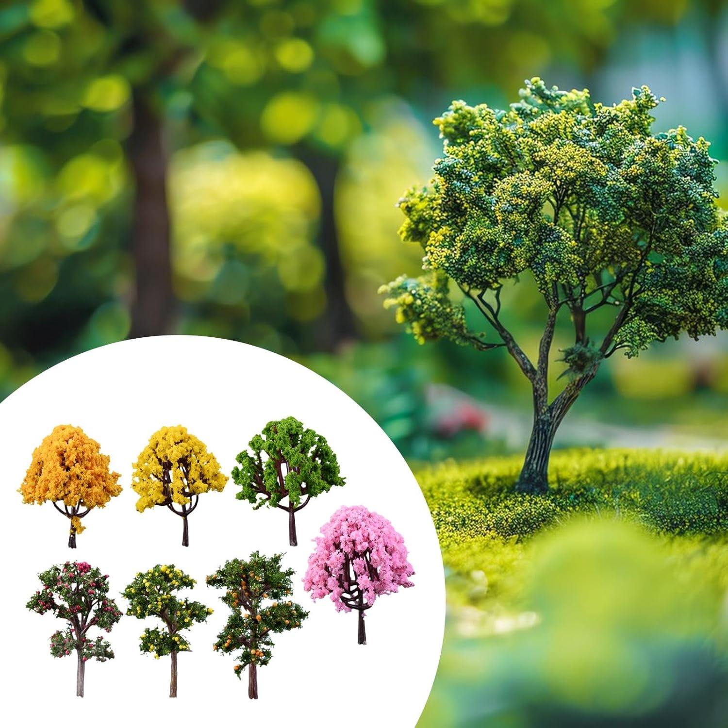 Design realistico: presenta un design ad albero artificiale altamente realistico per aggiungere un tocco naturale a qualsiasi ambiente, ideale per micro paesaggi o per abbellire la casa. Materiale di alta qualità: realizzati in polipropilene di qualità, questi alberi decorativi sono resistenti e mantengono il loro aspetto nel tempo senza richiedere manutenzione. Dimensioni compatte: ogni albero è alto circa 6-7 cm, perfetto per espositori da tavolo, terrari o composizioni decorative più grandi. 【Uso versatile】: adatto per modellismo di treni, giardini fatati e progetti fai da te, consentendo l'uso individuale o la combinazione con altri elementi. Set completo: include 7 alberi artificiali in miniatura con diversi disegni per varietà e flessibilità nei progetti di decorazione, catering per hobbisti e decoratori.