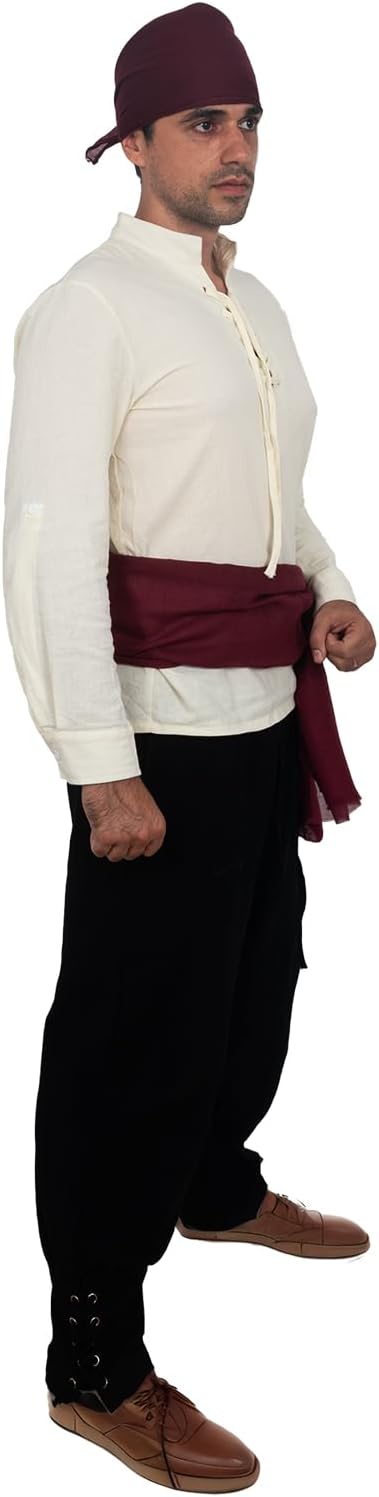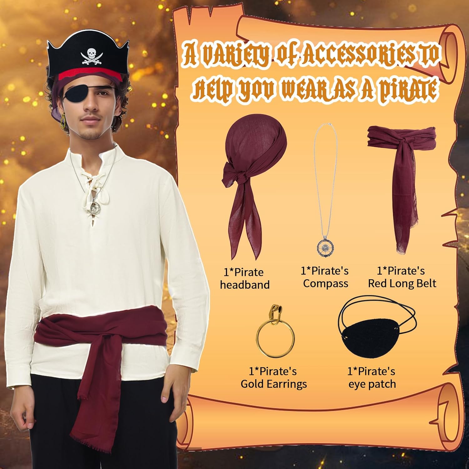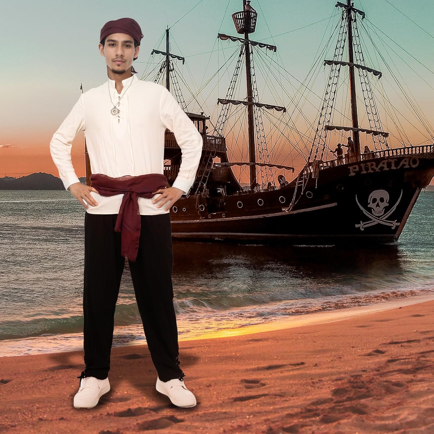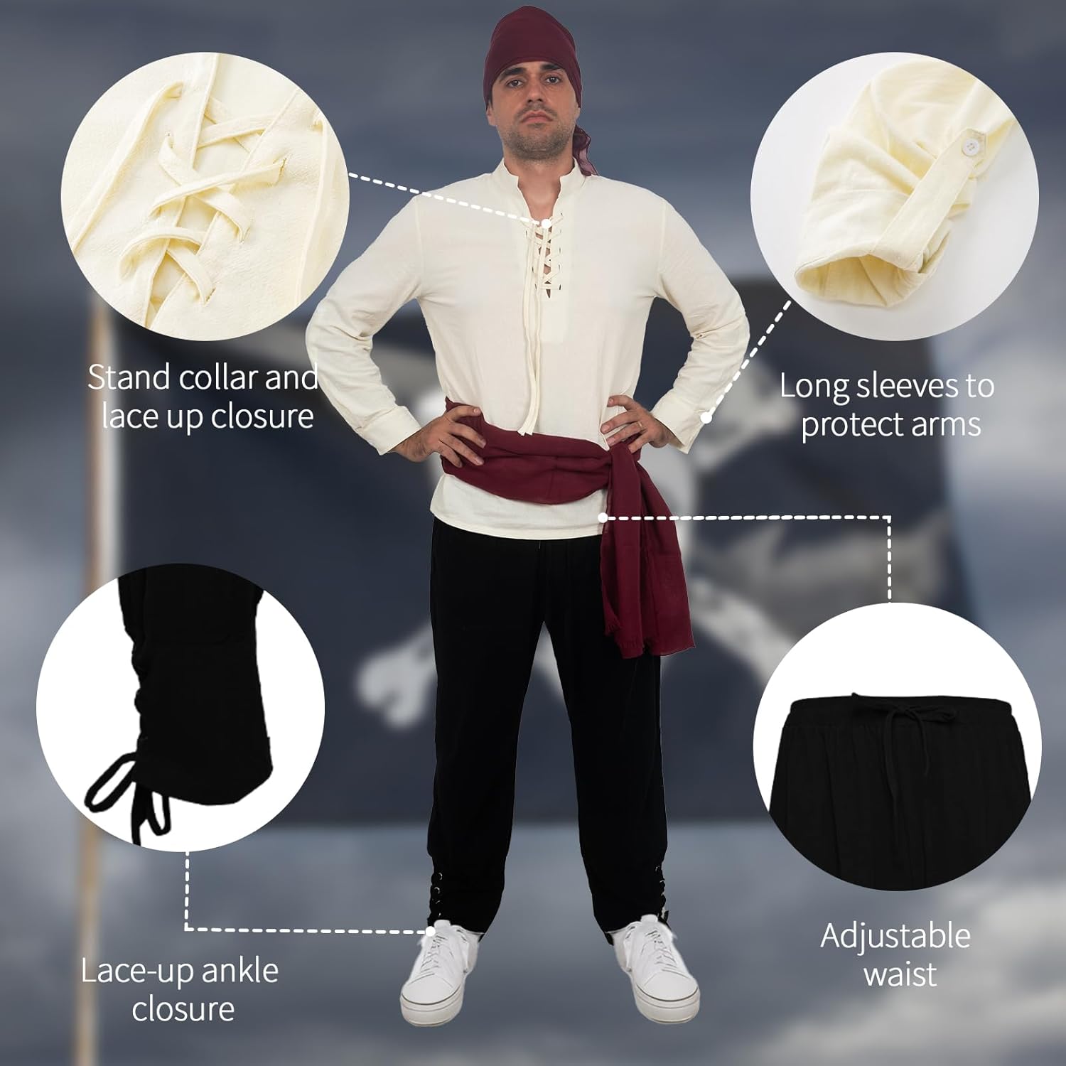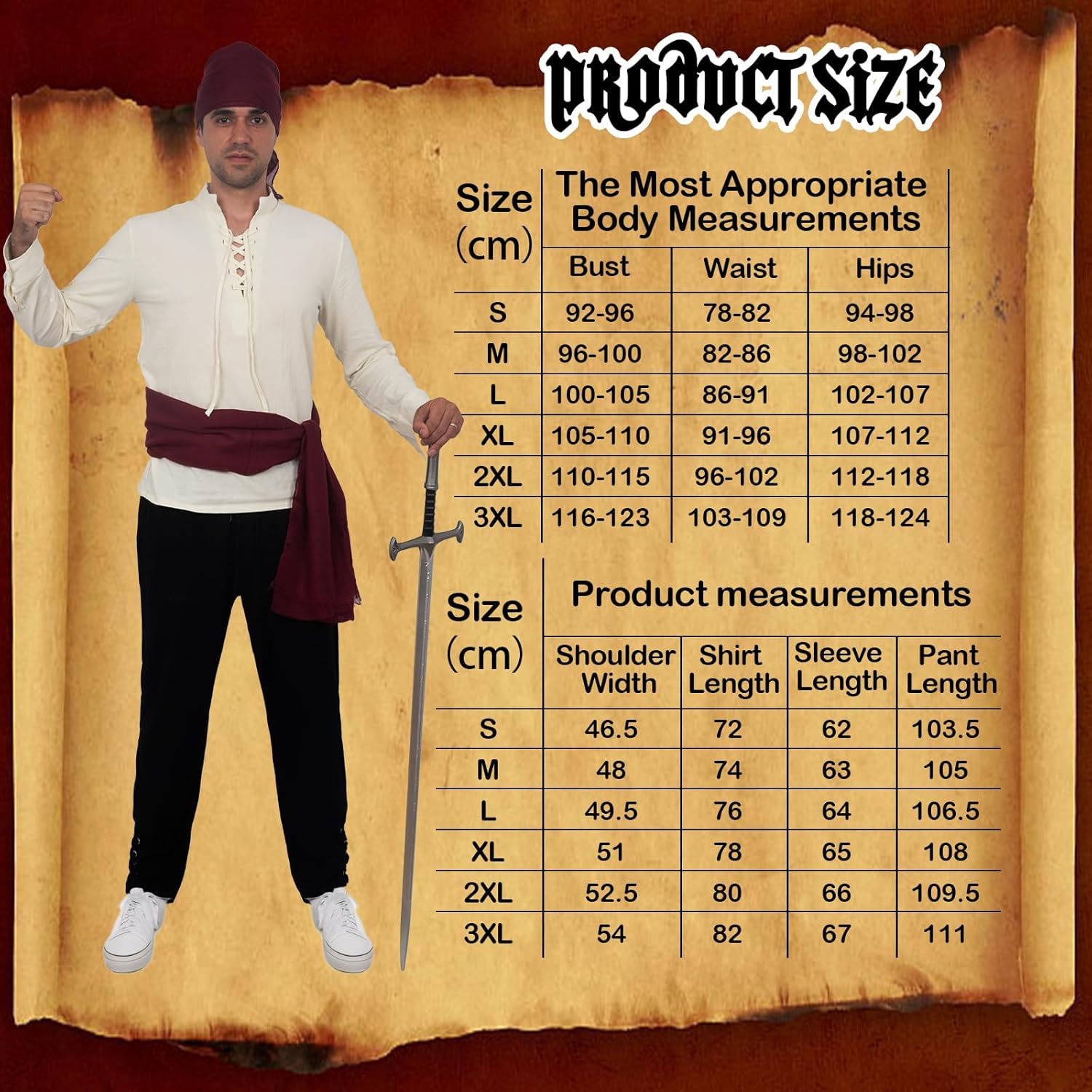 Descrizione prodotto 7 pezzi camicia medievale vichingo costume set rinascimentale vittoriano uomo abbigliamento medievale uomo camicia stringata uomo lungo medievale con pantaloni cintura fascia orecchini accessori Avviso di sicurezza NO
