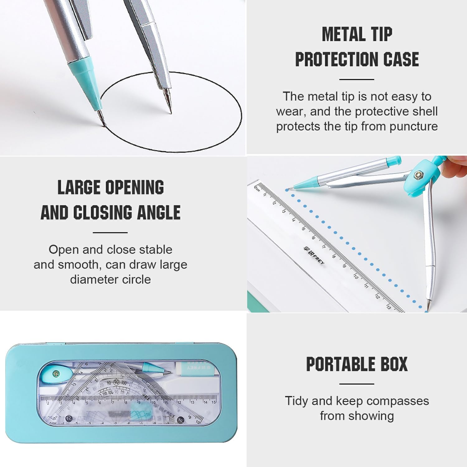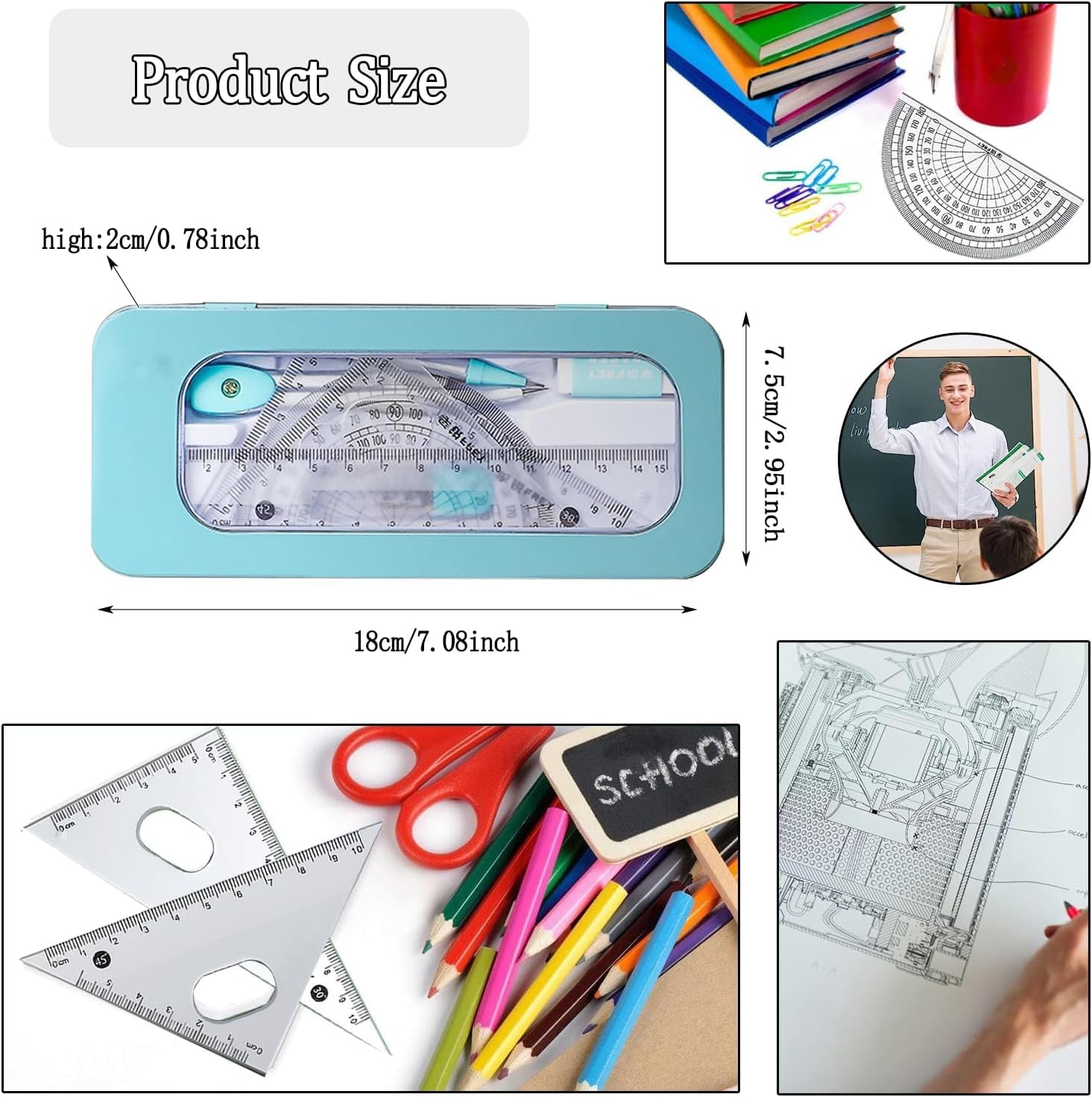 【Materiali di Alta Qualità】Questo compasso scuola media è realizzato in metallo di alta qualità. il materiale è sicuro e inodore, non sbiadisce né arrugginisce, è durevole e resistente alle cadute. ha un'elevata resistenza e può resistere a collisioni e impatti. non devi preoccuparti di danni durante il trasporto o lo stoccaggio. è adatto per un uso a lungo termine. 【Regolazione Rapida】Il Compasso balaustrone può regolare rapidamente il compasso, che può essere regolato facilmente e con precisione per disegnare cerchi di diverse dimensioni. l'ago affilato mantiene il compasso nella posizione corretta, consentendo un disegno preciso e senza vibrazioni. 【Lista di Imballaggio】Riceverai un set completo di scatola di kit goniometro, che contiene sette strumenti: compasso, righello lungo, goniometro, triangolo rettangolo, triangolo equilatero, gomma e mina di matita. la combinazione di un set completo di strumenti può soddisfare le esigenze di disegno e misurazione di diversi gruppi di persone, come studenti, insegnanti, ingegneri, designer e artisti. 【Artigianato Squisito】Dal compasso dal design ergonomico, comodo e facile da impugnare, al righello, al triangolo e al goniometro chiaramente in scala, tutto riflette un'artigianalità squisita. ogni dettaglio è stato attentamente progettato per garantire facilità d'uso e precisione. 【Robusta Conservazione】 Tutti i prodotti del compasso professionale sono conservati in una robusta scatola di metallo. la scatola è di buona qualità, anticaduta e durevole e può preservare bene i componenti del set da eventuali danni. utilizzando questa robusta confezione, puoi conservare tutti i tuoi accessori in modo sicuro e ordinato.