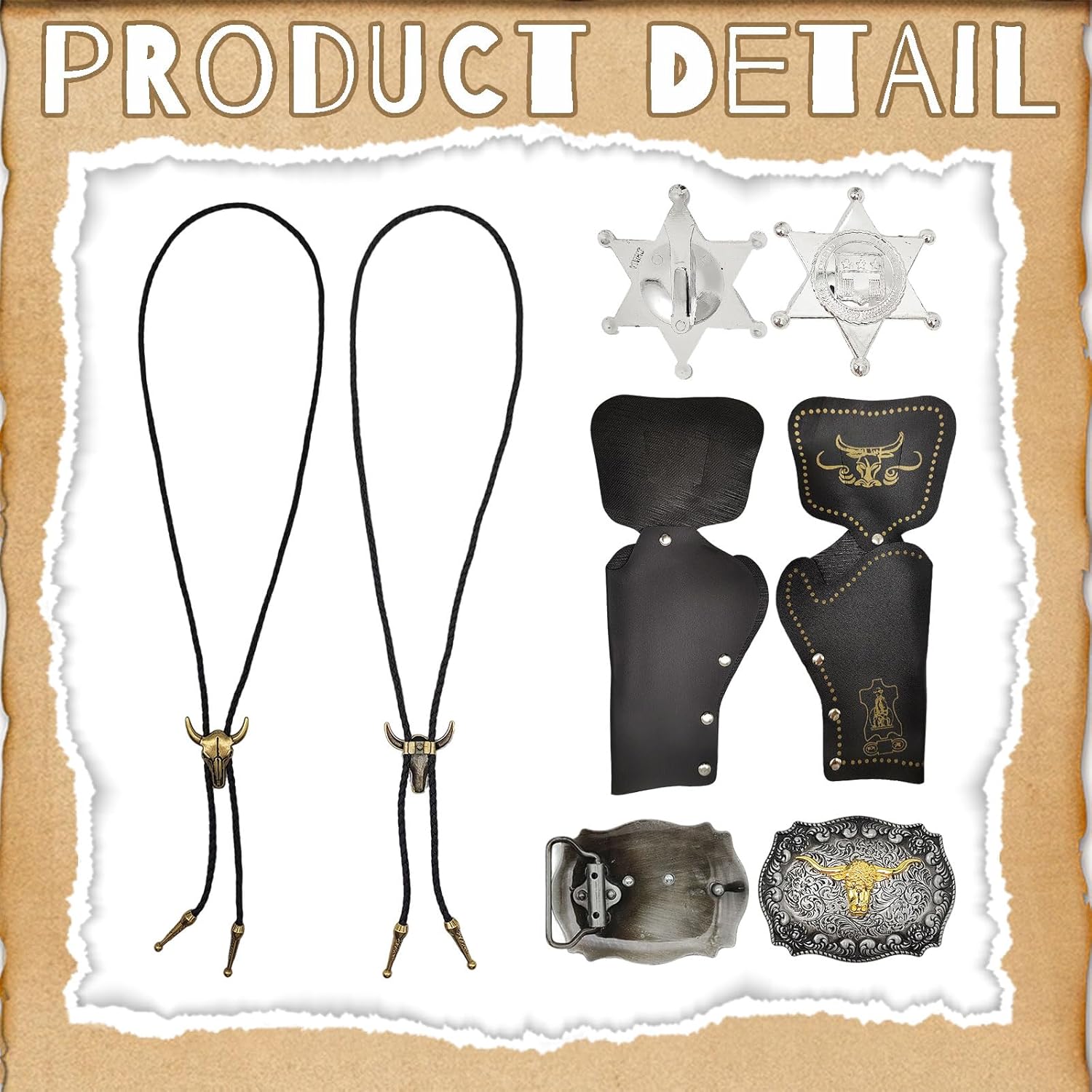 Descrizione prodotto Pacchetto Include:Otterrai 8 pezzi Western Cowboy Fancy Accessory Colore: Nero, Argento Materiale: Lega,plastica, poliestere Occasioni: Nonsolo perfetto per le feste a tema da cowboy, ma anche per una varietà dioccasioni come feste in costume di Halloween, celebrazioni per le vacanze,rodei, cosplay, spettacoli scolastici e concorsi di costumi. Avviso di sicurezza No