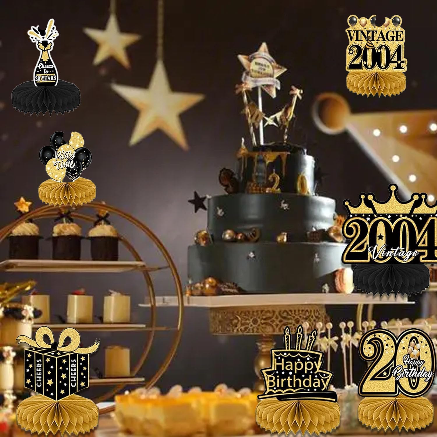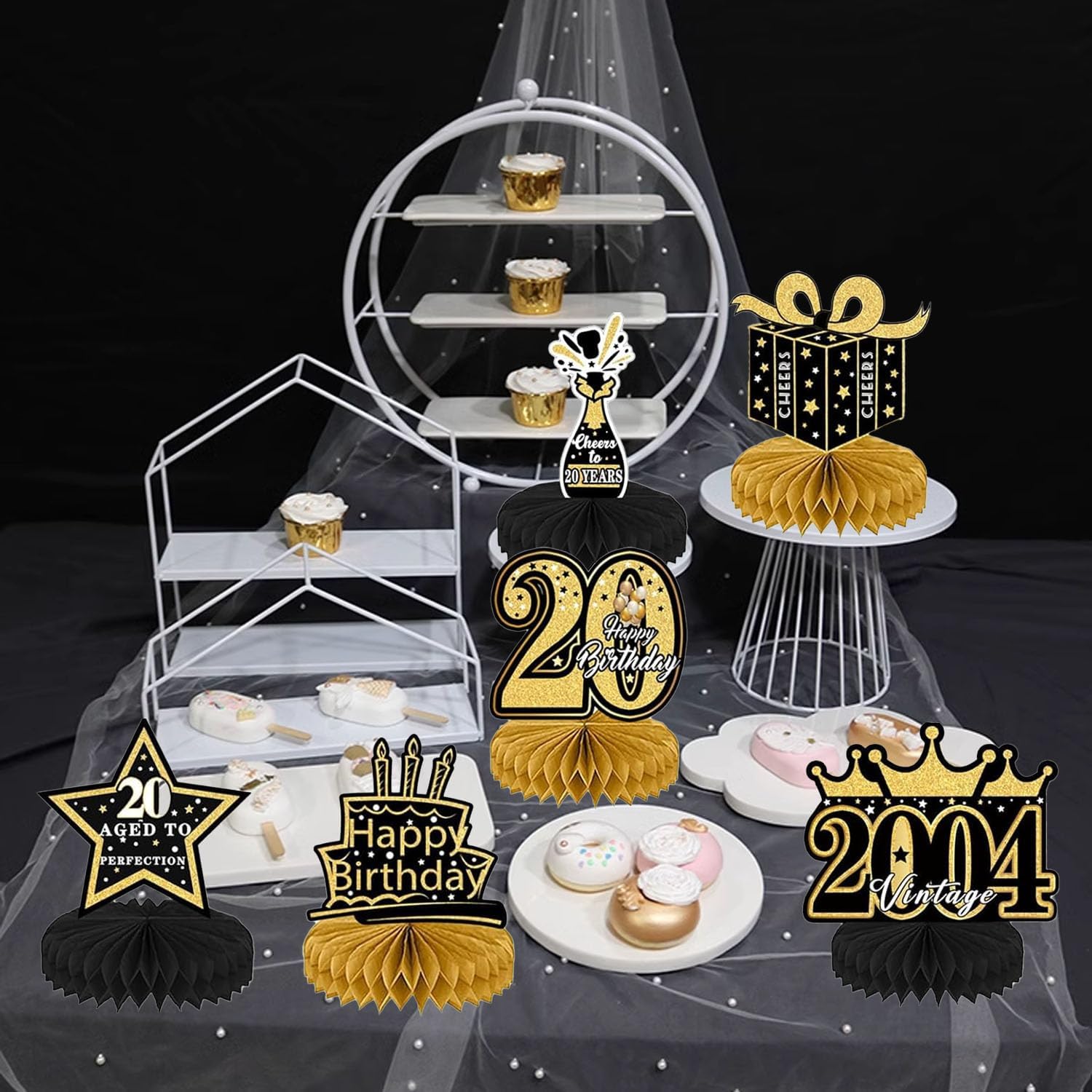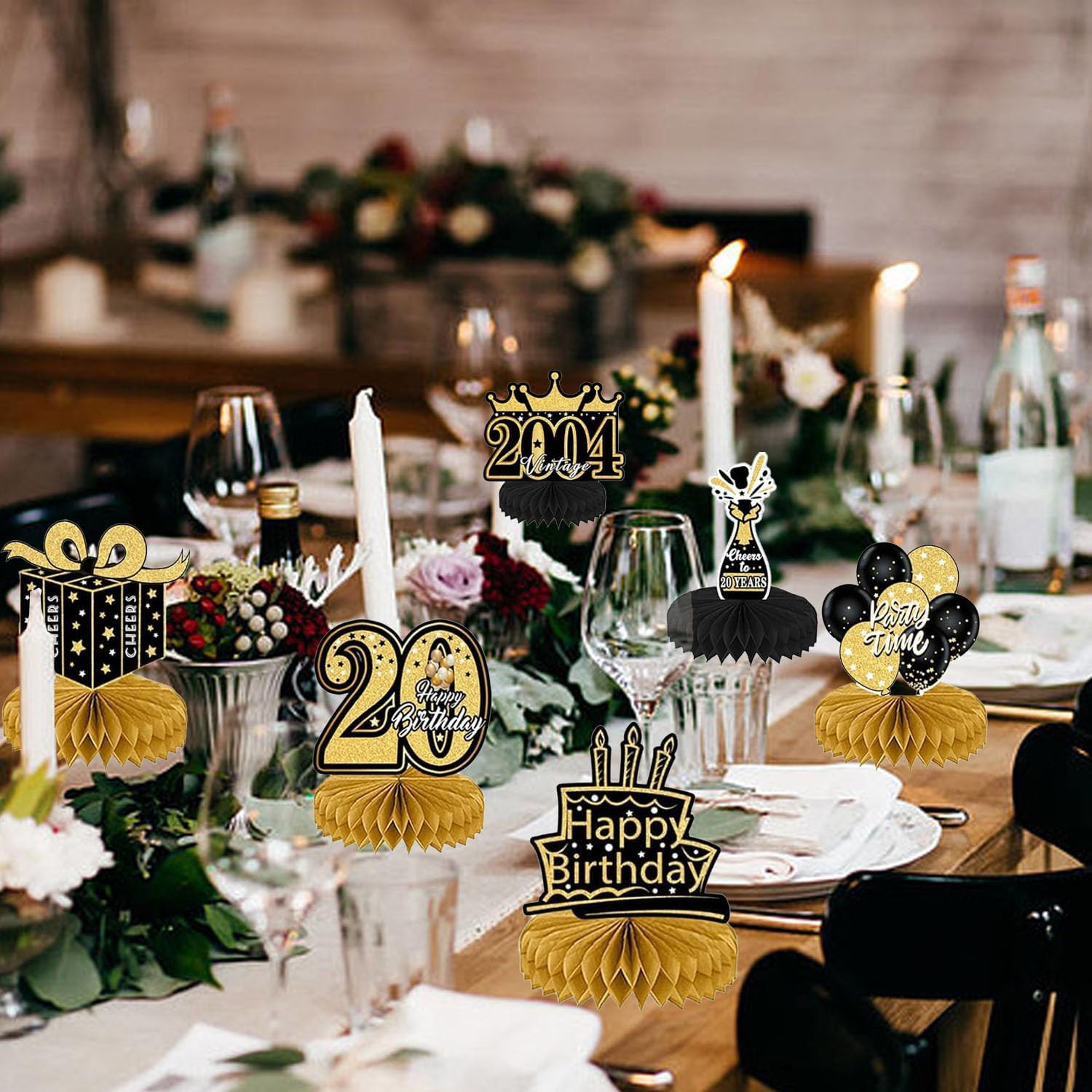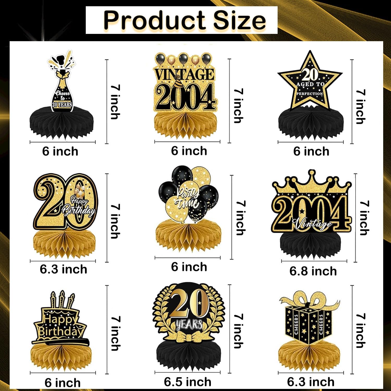 【Cosa riceverai?】 - 7 decorazioni a nido d'ape nere e dorate per il ventesimo compleanno di un uomo (versione inglese). Include 7 decorazioni a nido d'ape (stelle, torta, palloncini, vino, regali e decorazioni per il 20° compleanno). Queste eleganti decorazioni per la tavola del 20° compleanno miglioreranno l'atmosfera di una festa a tema e piaceranno sicuramente ai tuoi ospiti. 【Materiale di alta qualità】 - Le decorazioni per uomo del 20° compleanno sono realizzate in cartone di alta qualità, stampa trasparente, leggera e resistente, non facile da sbiadire, robusta e non tossica, nessun odore, stampata in 3D. Perfetto per decorare la tua festa del ventesimo compleanno. Sarà una decorazione da tavola di lunga durata per la festa di compleanno. 【Facile da installare】 - Le decorazioni per il ventesimo compleanno del ragazzo sono molto facili da installare. Passaggio 1: staccare l'adesivo dalla sfera a nido d'ape; Passaggio 2: incolla la pallina a nido d'ape nella posizione fissa della carta; Passaggio 3: ripetere i passaggi precedenti sull'altro lato della carta; Passaggio 4: posizionare la carta sul tavolo; Passaggio 5: fatto. Bastano solo pochi passaggi e avrai una romantica decorazione per la tavola di compleanno. 【Decorazioni per il 20° Compleanno】 - Queste decorazioni a nido d'ape sono disponibili in 7 diversi stili di forme di compleanno, con motivi vintage neri e dorati stampati sul davanti e sul retro e molti elementi correlati stampati sulla superficie, che sono squisiti e realistici, creando una scena bellissima e sorprendente per aggiungere un'atmosfera romantica al compleanno. 【Perfetto per le decorazioni di compleanno】 - Queste decorazioni creative per feste di compleanno sono adatte per decorazioni per feste a tema del 20° compleanno. Puoi metterli sul tavolo per la decorazione o appenderli con le clip. Crea una festa di buon compleanno per te e rendi la tua festa di compleanno piena di atmosfera. Può anche essere usato come regalo per familiari, amici e colleghi che aspettano con ansia il loro ventesimo compleanno.