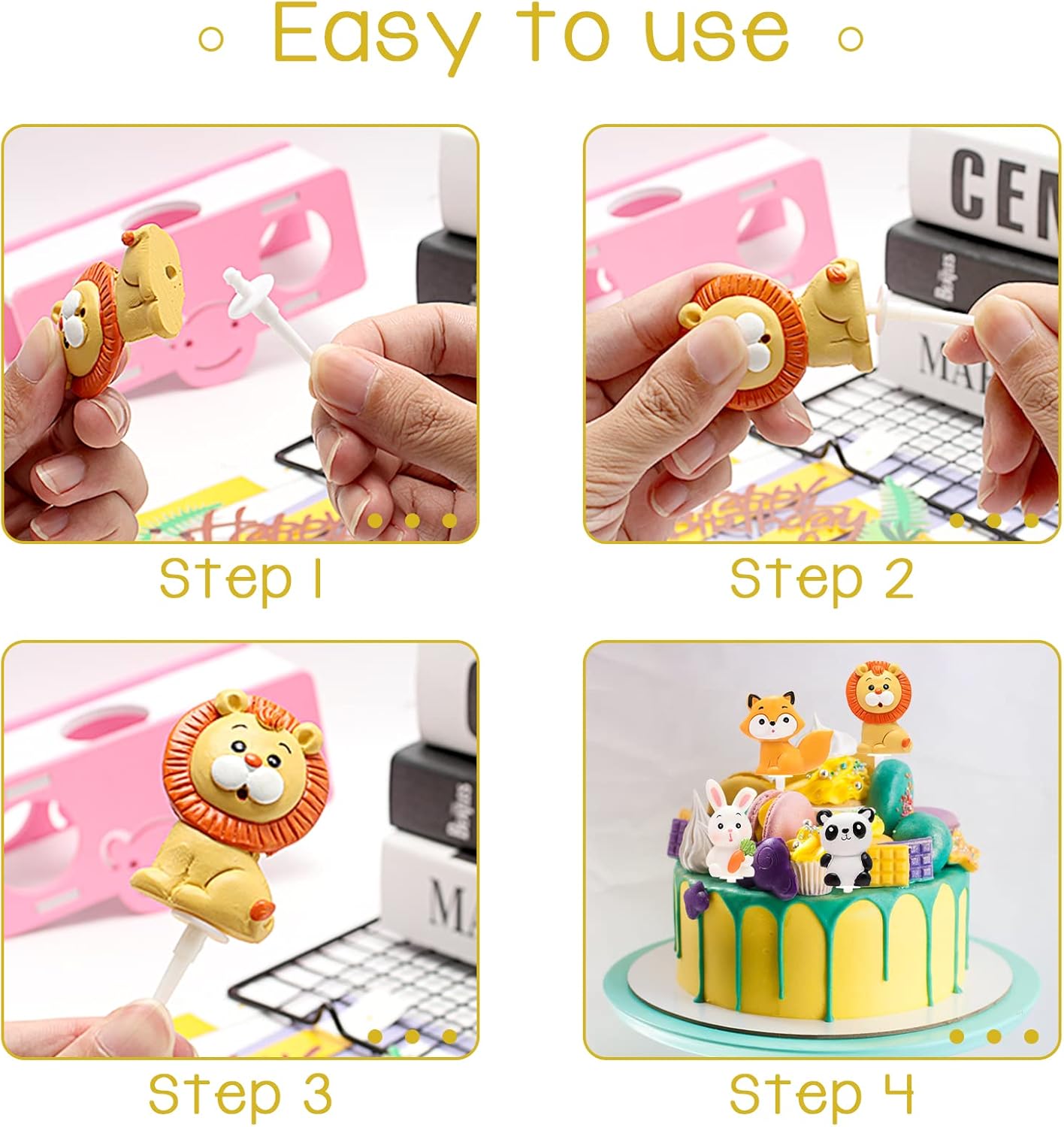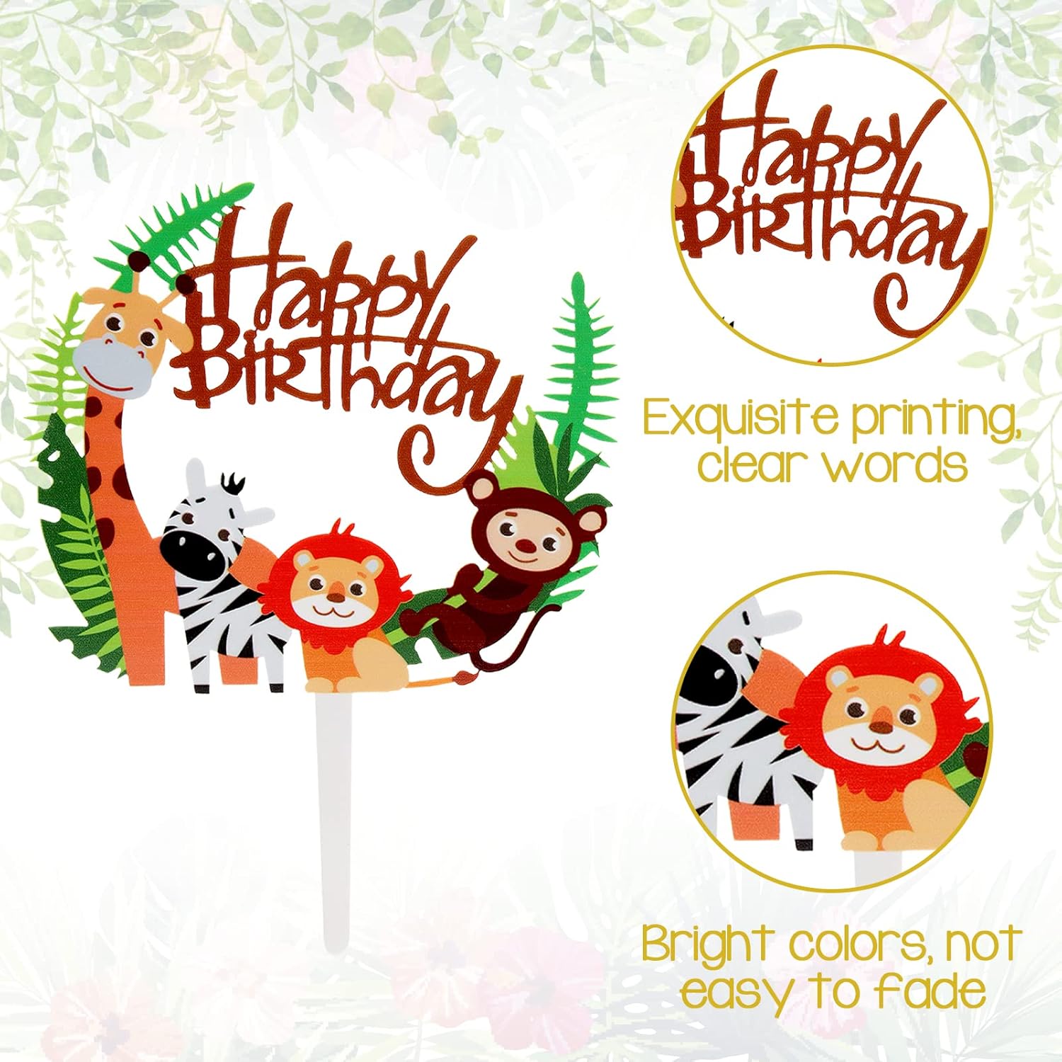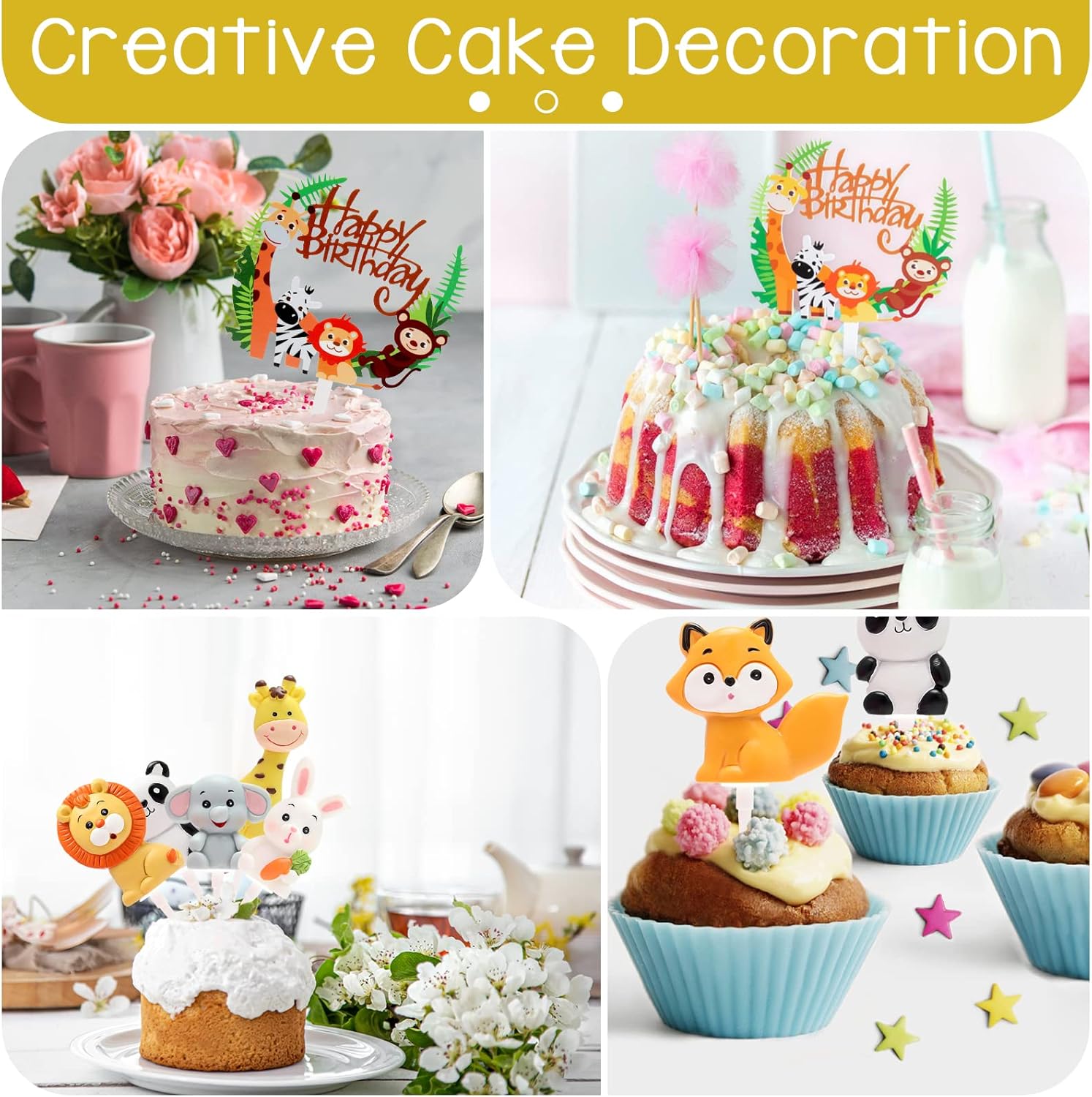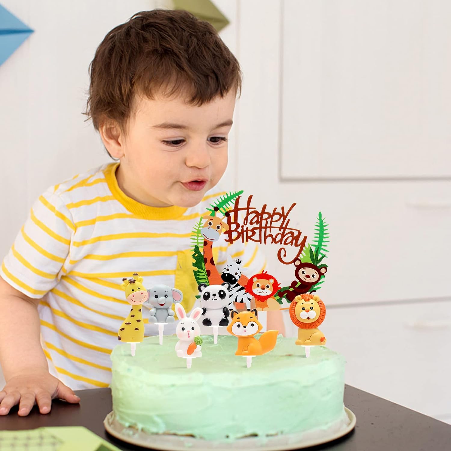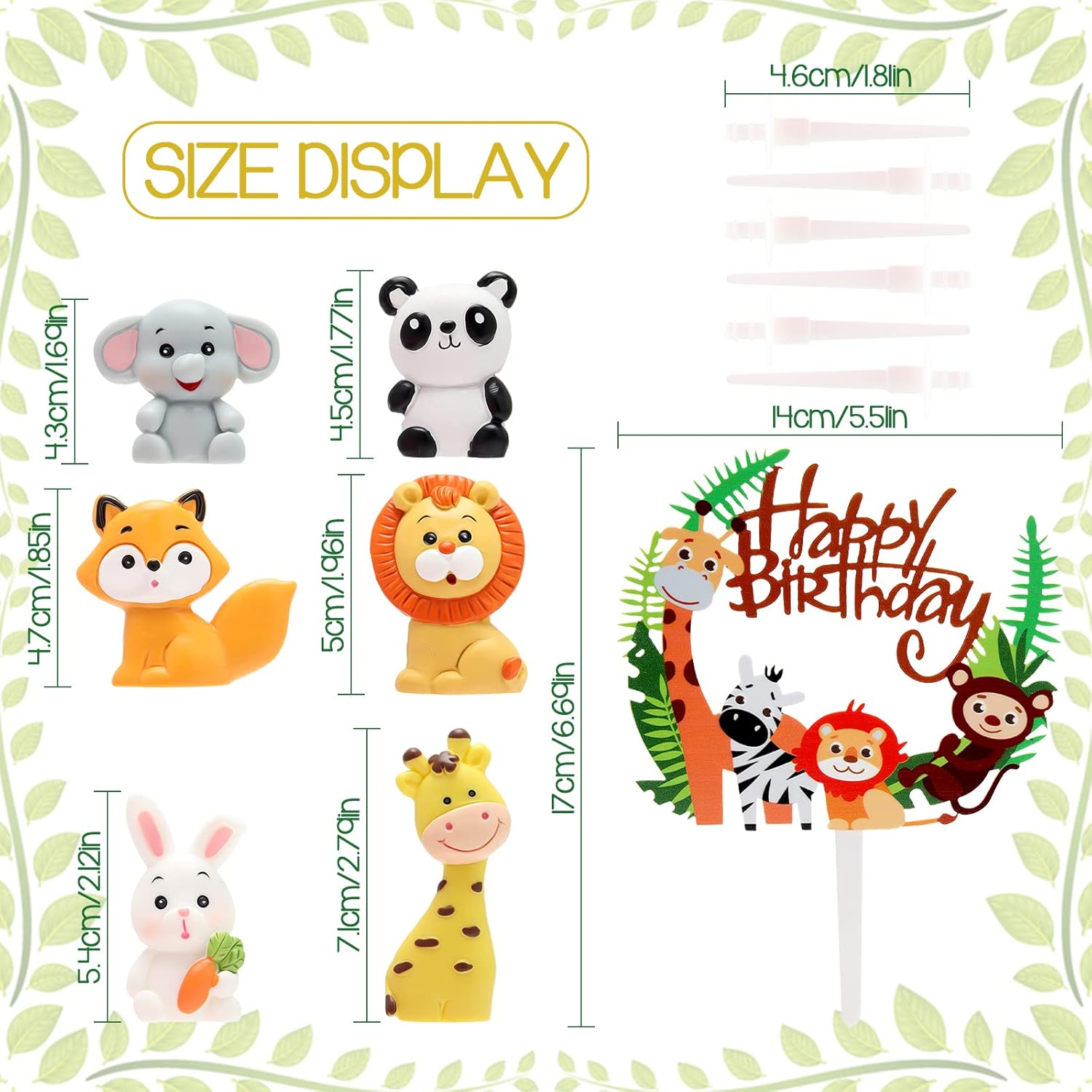 Set perfetto: questi toppers per cupcake a tema giungla includono 1 biglietto d'auguri del mondo animale e toppers per torta 3D con leone, volpe, giraffa, elefante e coniglio, oltre a 6 tubi per torta coordinati, un set completo di 7 per tutte le tue esigenze. Materiale premium: il set di bambole cake topper è realizzato in acrilico e resina di alta qualità, sicuro e affidabile, non tossico e insapore; durevole, non facile da deformare, non facile da rompere; può essere riutilizzato dopo il lavaggio. Adatto a tutti i tipi di decorazioni per torte e vassoi di frutta. Facile da usare: puoi creare la tua torta con questi adorabili toppers per torta con animali. C'è un piccolo foro sul fondo di ogni animale, devi solo allineare e inserire la cannula nel piccolo foro. Oppure senza montaggio, basta posizionare stabilmente le decorazioni dove devono essere decorate. Simpatici animali: set di toppers cupcake safari nella giungla, ognuno è molto realistico, carino e intelligente. Una varietà di diverse forme di animali con graziosi elementi della giungla, ognuno con il suo fascino unico, bello e pratico. Ampio utilizzo: adatto per temi di animali della foresta e feste nella giungla, decorazioni per torte, feste di compleanno, torte di compleanno, decorazioni per feste di caccia o nella giungla, muffin, torte, dolcetti, ecc. Può anche essere utilizzato per decorare le stanze dei bambini, le stanze dei giocattoli, ecc.