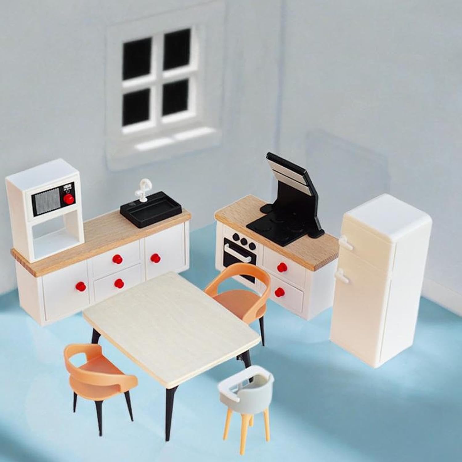 【Materiale】: i giocattoli per mobili in miniatura sono realizzati in robusto PP e legno, con dettagli realistici per un uso a lungo termine 【Uso versatile】: il set di mobili in miniatura per case delle bambole è versatile e adatto per case delle bambole in 1/12 o come oggetto di scena per fotografie in miniatura. 【Set completo compatto】: mobile bianco, due sedie da pranzo europee, tavolo da pranzo, frigorifero, stufa bianca e seggiolone per bambini 【Regalo ideale per le bambine】: la decorazione della casa delle bambole è perfetta per compleanni o occasioni speciali e il gioco di ruolo lo rende un ottimo regalo per qualsiasi bambina che ama giocare a casa con le bambole 【 la creatività e l'interazione genitore-figlio】: il set di mobili per la casa delle bambole è perfetto per il gioco genitore-figlio, consentendo ai bambini di progettare scene e creare storie, stimolando la loro immaginazione e rafforzando il loro pensiero spaziale e le capacità di narrazione