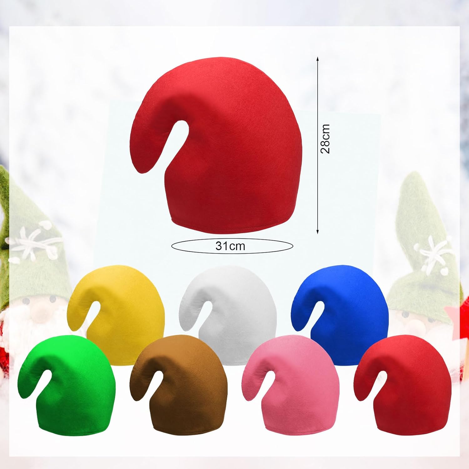Descrizione prodotto Accessori multifunzionali: questi graziosi cappelli nani sono chiamati anche cappelli da gnomo o berretti da elfo e vi offriamo una varietà di varianti di colore adatte a diversi costumi di carnevale. Indipendentemente dal tema delle feste, questi cappelli di carnevale sono un ottimo accessorio per completare il tuo outfit. Adatto per gruppi: questi pagliaccetti sono l'accessorio perfetto per costumi di gruppo e garantiscono un look uniforme, ma comunque divertente e colorato. Con il nostro divertente copricapo potrete creare ricordi indimenticabili e foto divertenti alla vostra prossima festa, in modo che tutti nel vostro gruppo possano divertirsi e godersi la festa. Gioco di ruolo: il divertente müTze è perfetto per gli amanti della storia e per i fan. È possibile utilizzare cappelli nani per giochi di ruolo con gli amici. Un cappello da elfo vi farà risaltare nel vostro cosplay Facile da applicare: grazie al suo design semplice, le nostre cuffie sono facili da indossare e da togliere. Sono regolabili in modo da essere adatti sia per adulti che per adulti. Design unico: il nostro cono in feltro ha un design unico che si distingue per la massima qualità. Con la sua forma conica e i pompon colorati darete un tocco di colore divertente e giocoso a qualsiasi outfit. Avviso di sicurezza nessun