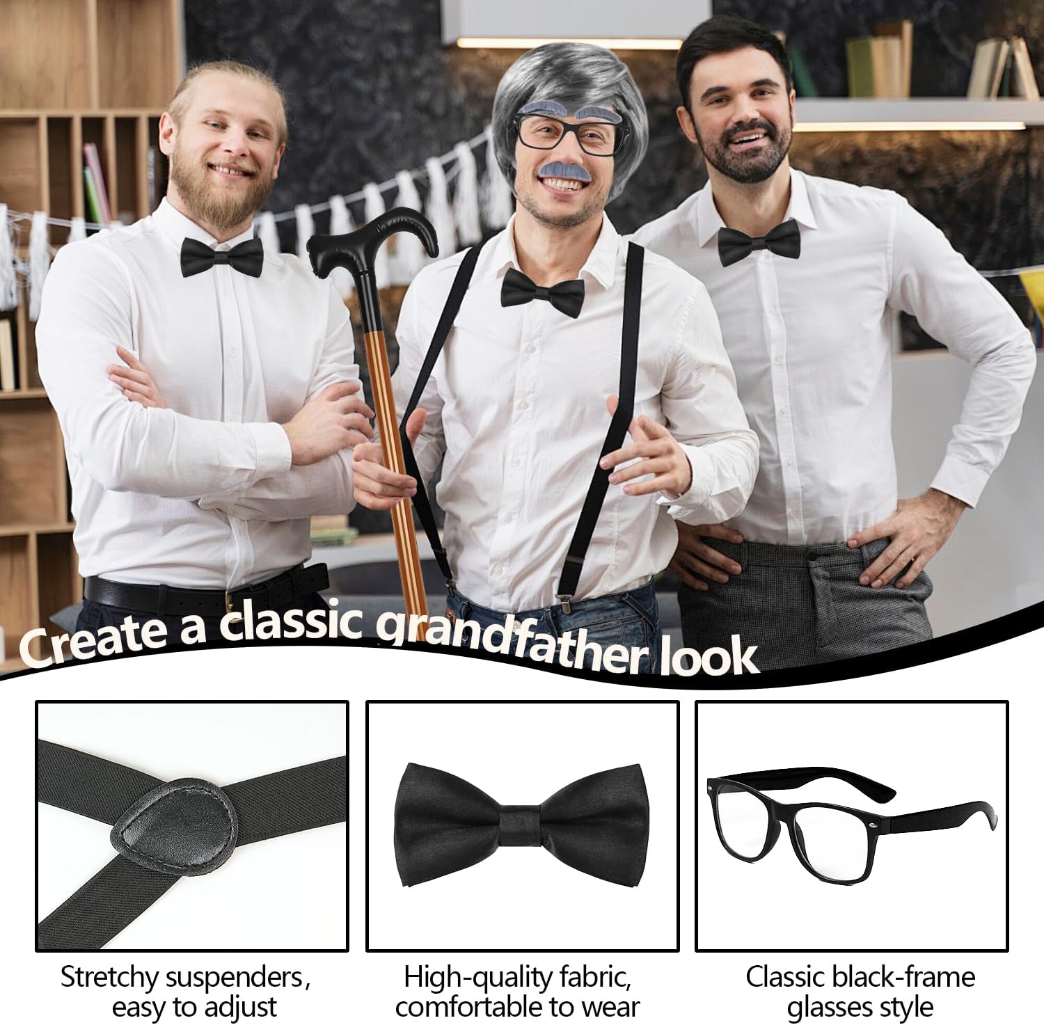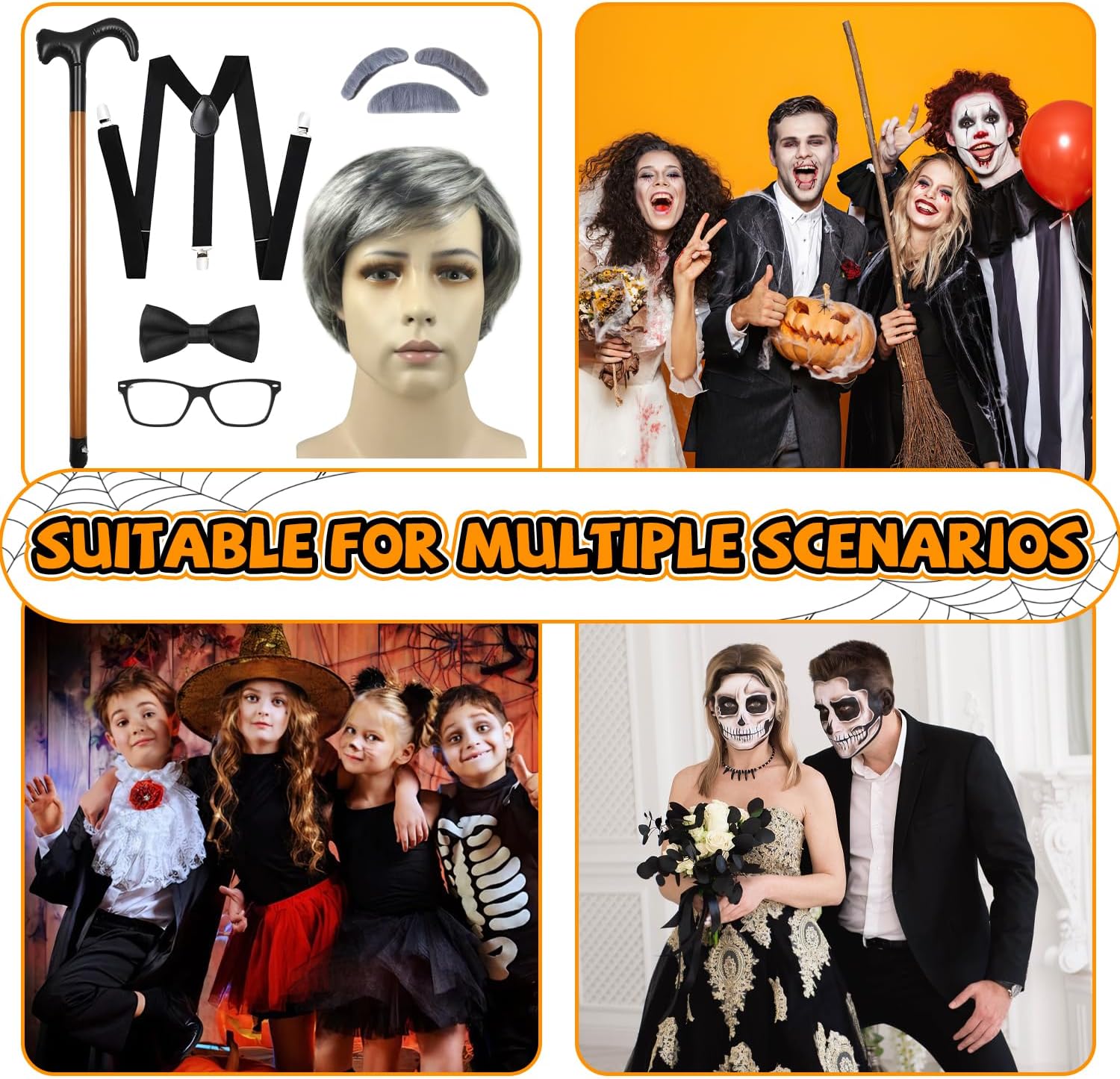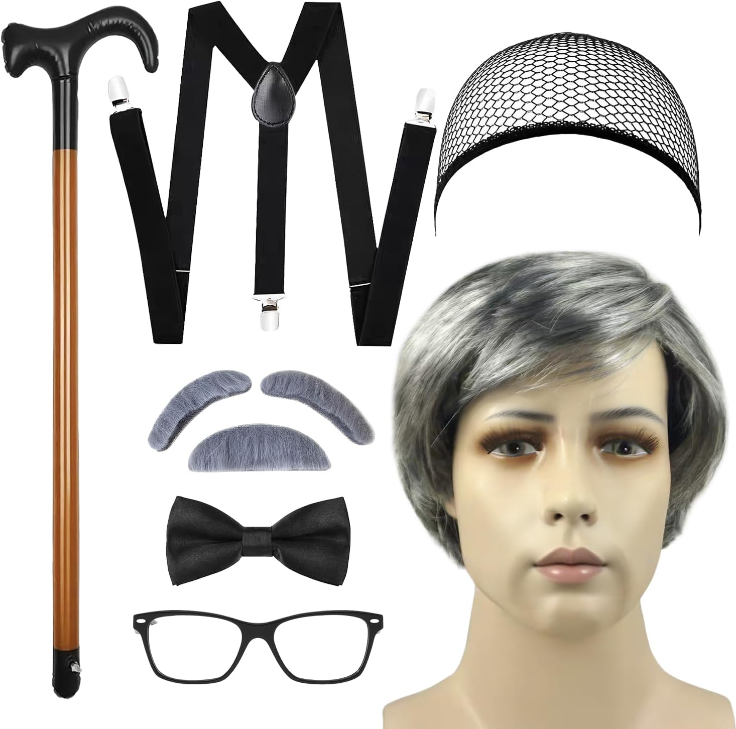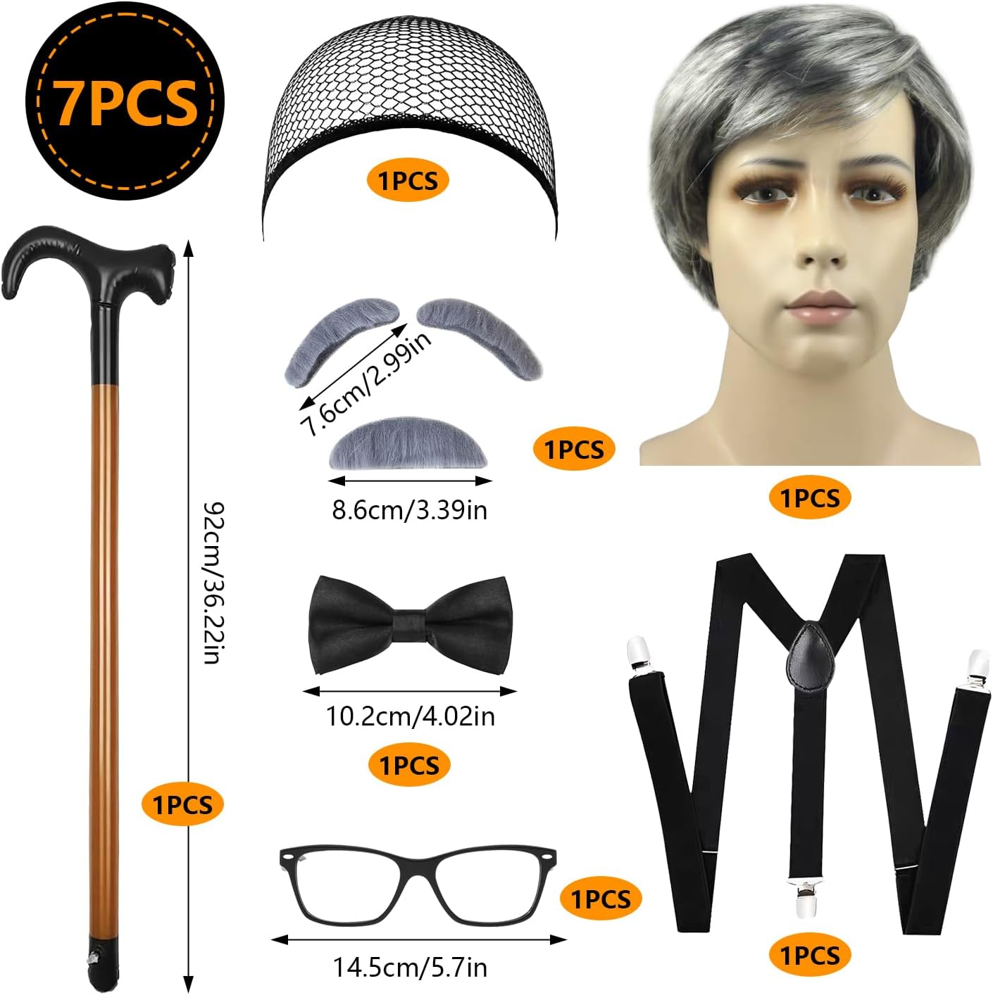 【Set Completo】Set include Parrucca Grigia, occhiali vintage, barba Sopracciglia autocollanti, rete capelli nera, cravatta, Bretella nera Bastone Gonfiabile – senza abbinamenti extra, crea direttamente classico Costume da Pensionato adatto a ogni disguise. 【Materiale】Parrucca da Vecchio Parrucca Sopracciglia realizzate fibra PET, morbide riproducono texture capelli anziano ; Barba Finta aderisce pelle, comfort ; rete capelli regolabile bretella Y adattano taglie testa, pelli-friendly, facile indossare. 【Divertimento nel Disguise】Parrucca Nonno risponde aspetto anziano, occhiali evidenziano saggezza umorismo; Barba Grigia Bastone da Passeggio Gonfiabile rafforzano riconoscibilità, Parrucca mantiene naturalezza – rende ruolo fedele pieno divertimento. 【Adatto a Diverse Occasioni】Adatta a molti scenari : Halloween, Carnevale, festa ragazzi, festa sci tema, attività classe divertenti, ecc. Per festività o attività ricreative, sempre crea Costume da Uomo Anziano che si distingue. 【Facilità di Assemblaggio】Baffi Finti Uomo Sopracciglia autocollanti, pronti all’uso, possono tagliarsi DIY secondo viso, adattarsi a contorni; bretella Y rete capelli regolano la lunghezza – adulti le regolano rapid allo stato optimal.