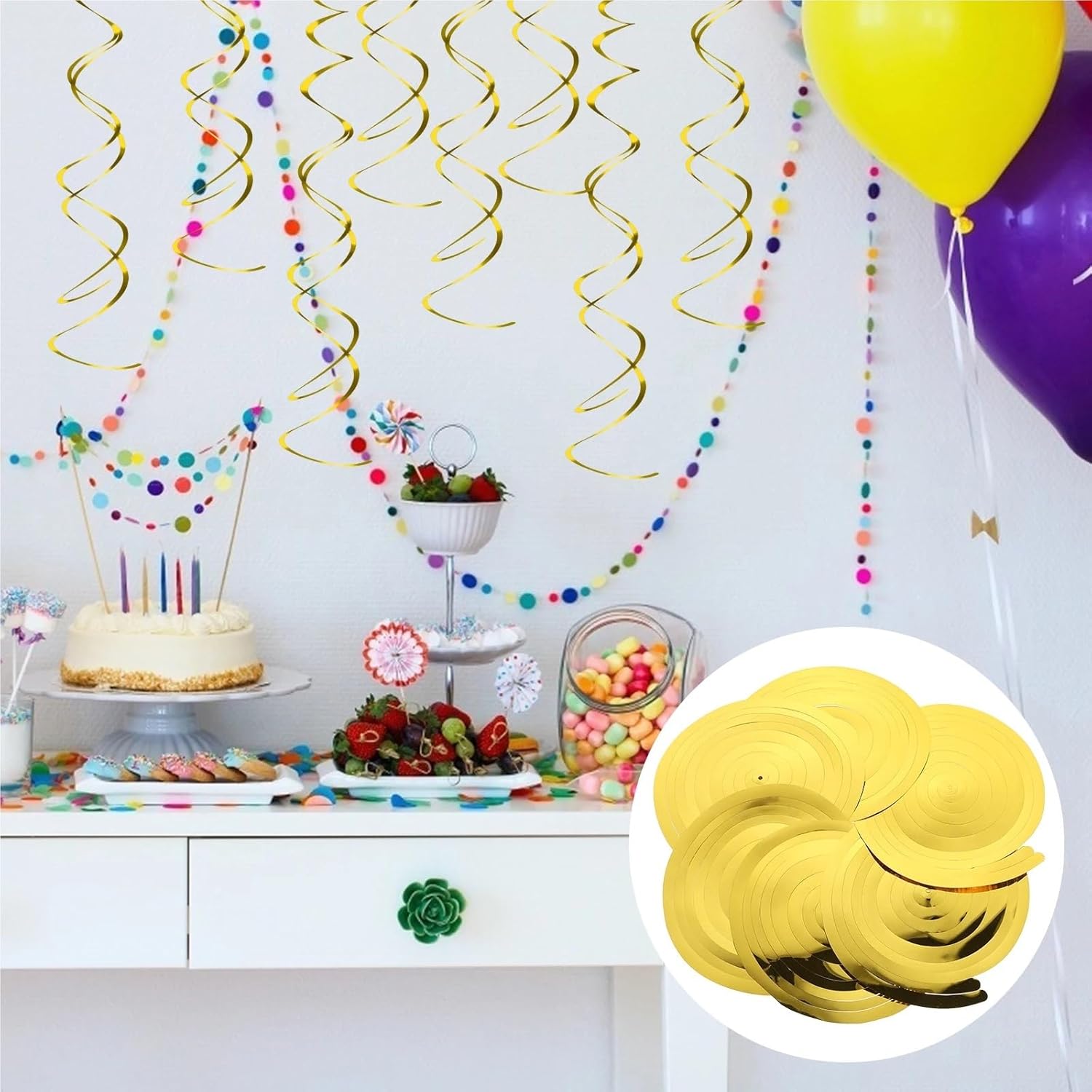 72 Pezzi di Palloncini a Spirale Dorati da soffitto, Decorazioni for Feste di Compleanno, Pendenti Pendenti, centrotavola Festivo, Decorazione for la casa per Matrimoni
