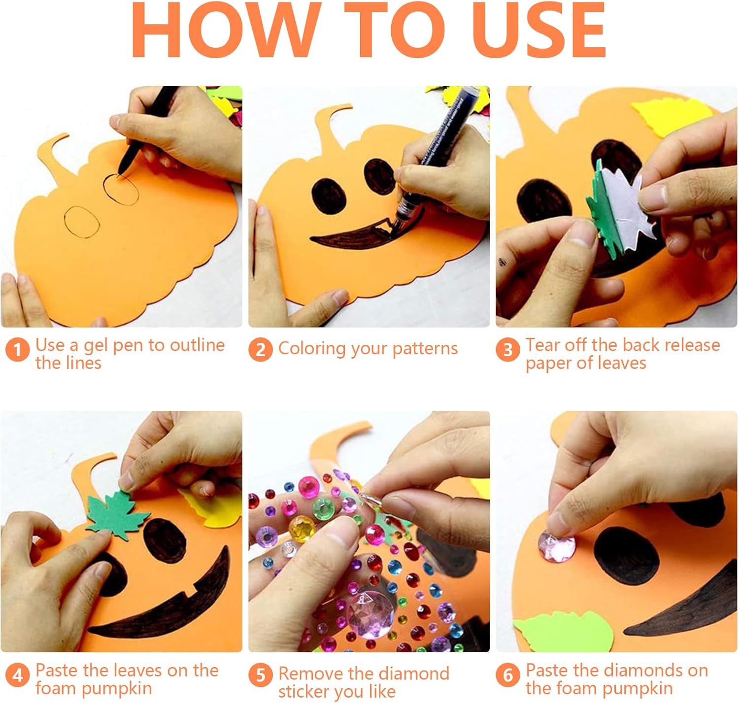 Set fai da te a forma di zucca fai da te: 76 decorazioni in feltro di zucca fai da te. Gli accessori includono 12 zucche in schiuma arancione (6 forme), 50 foglie cadute, circa 220 adesivi autoadesivi con strass e gemme (2 pezzi) e 12 penne colorate (colori assortiti). Design unico: questo set di decorazioni a forma di zucca fai da te è tematicamente decorato con una varietà di zucche arancioni con adesivi a foglia rossa, marrone, arancione e verde e viene fornito anche con adesivi di cristallo colorati, perfetti per i bambini per renderle uniche - Art fatta a mano per Halloween o Ringraziamento! Alta qualità: le foglie di zucca e autunnale sono realizzate in schiuma e il retro delle foglie è appiccicoso per semplificare il processo. Gli strass autoadesivi sono realizzati in acrilico. Facile da usare: questi adesivi sono adesivi sul retro e sono facili da staccare e incollare. Puoi scegliere comodamente adesivi con foglie autunnali e adesivi con strass e incollarli direttamente sulla zucca in schiuma. Ampia applicazione: kit fai da te a zucca per lezioni di arte e artigianato per bambini, Halloween, Ringraziamento. Lascia che i bambini decorino la zucca a loro piacimento. Puoi farlo con i bambini per rafforzare il legame genitore-figlio e allo stesso tempo offrire molto divertimento.
