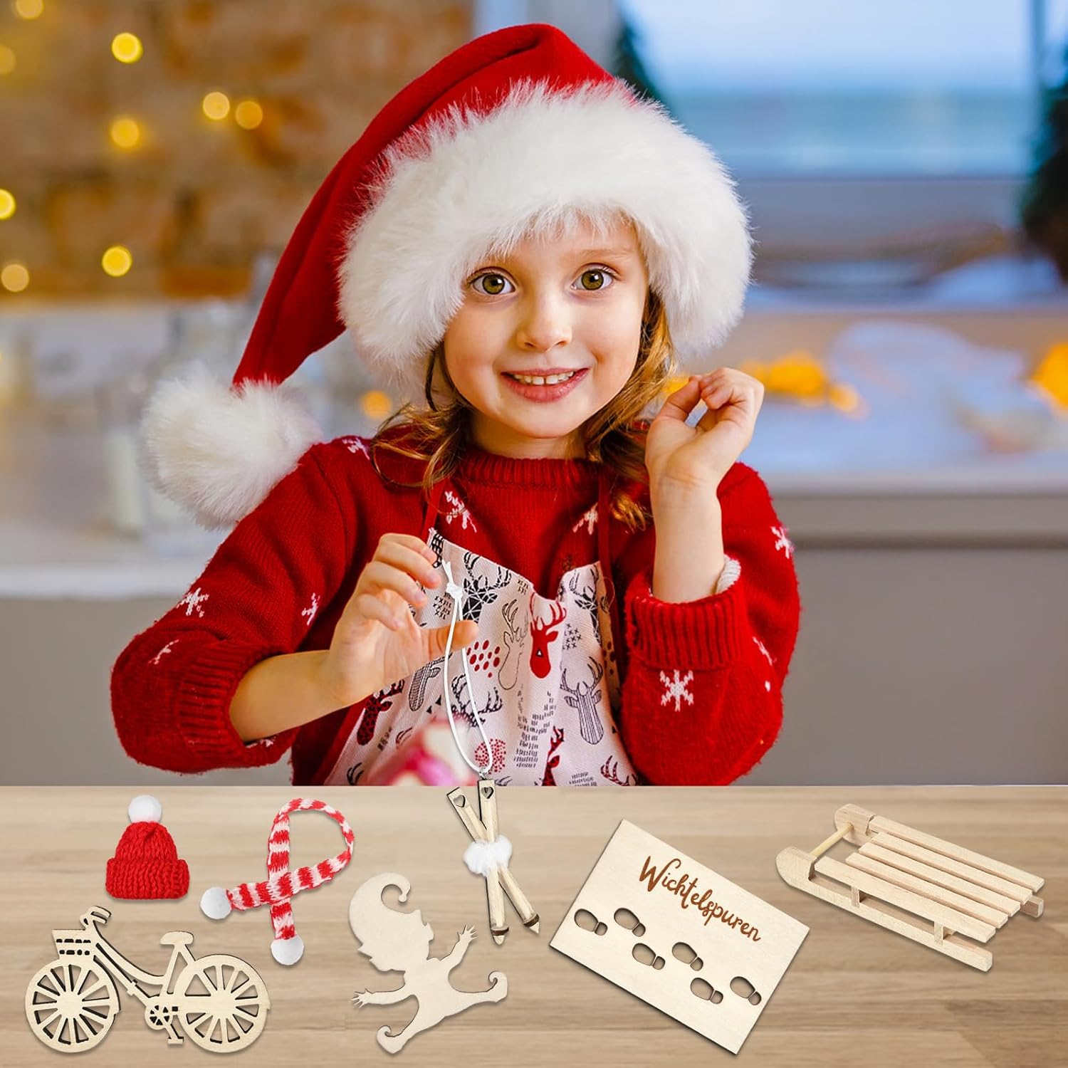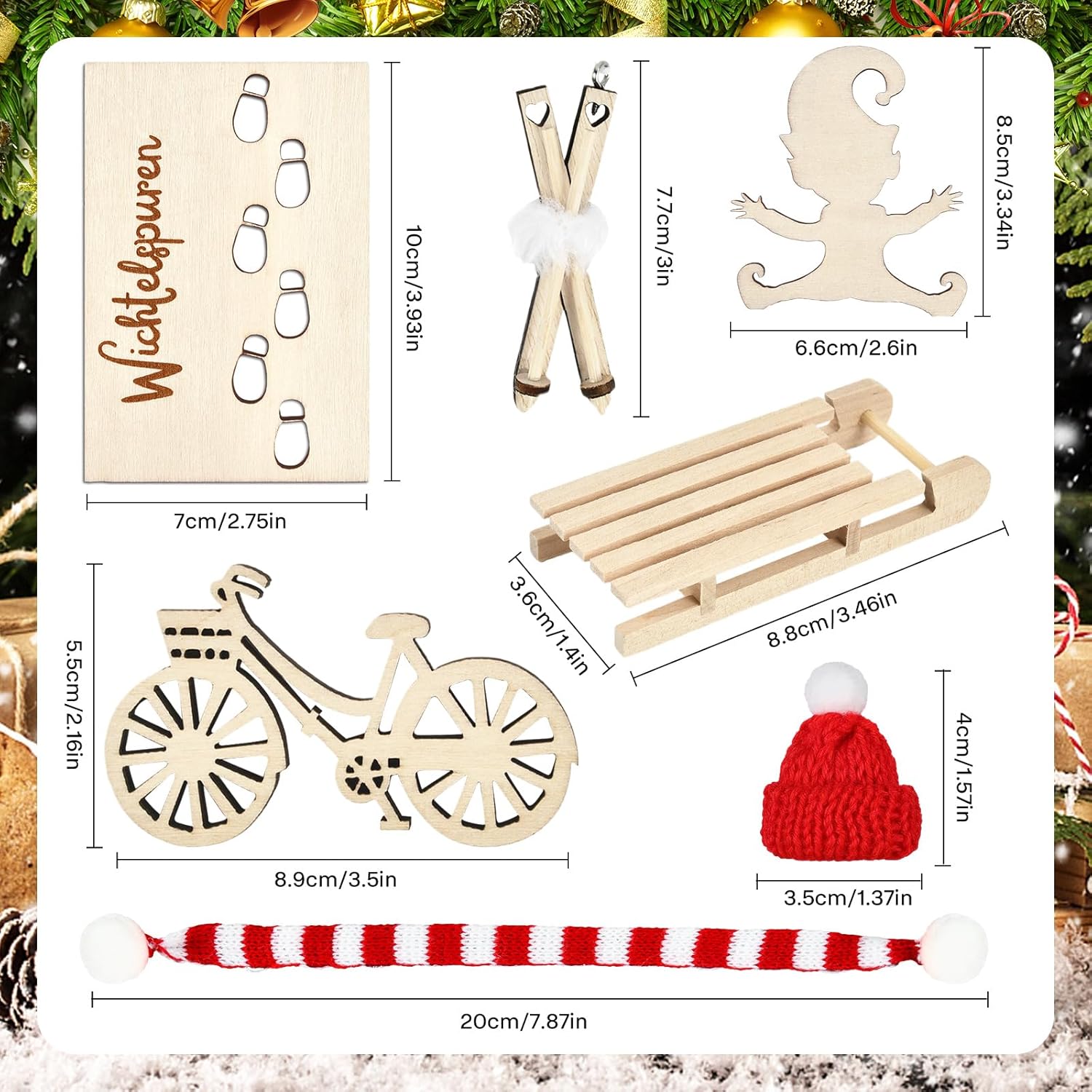 ❤【Riceverai】7 Porta Elfo Natale kit, sono inclusi qui, tra cui 1 slitta, 1 cappello rosso, 1 sciarpa, 1 modello impronta gnomo, 1 modello elfo di Natale, 1 set di sci in miniatura e 1 bicicletta di legno. Questo set di accessori per porta del gnomo è appositamente preparato per il prossimo Natale. Possono lasciare impronte nane per te e rendere il tuo Natale interessante. 📏【Materiali di Alta Qualità】Questi Accessori per Porta del Gnomo sono realizzati principalmente in legno naturale e Polyester di alta qualità, quindi sono sicuri e durevoli, non facili da piegare o danneggiare e possono essere utilizzati a lungo. Ogni accessori di natale per la casa ha un colore libero e una trama chiara, puoi ridisegnarli, come tingerli, dipingerli, ecc. per abbinarli al tuo stile di decorazione. 🎄【Decorazione Multifunzionale】Questa Accessori per Gnomi di Natale è progettata per una casa delle bambole in miniatura 1:12. Sono adatti per decorazioni in miniatura con molti temi diversi. Puoi usarli per decorare la tua casa delle bambole in miniatura per rendere la tua casa delle bambole più vivace. Possono anche essere usati come piccoli oggetti da appendere alle finestre, ai tavoli da pranzo o agli alberi di Natale per rendere la tua casa più raffinata. 🎅【Promuove lo Sviluppo dei Bambini】Questi Decorazioni Natalizie in Miniatura utilizzano la tecnologia di miniaturizzazione per ridurre al minimo gli oggetti effettivi, quindi sono di piccole dimensioni, leggeri e altamente adattabili ai palmi dei bambini. I bambini possono afferrarli facilmente, il che favorisce la promozione della sensibilità fisica dei bambini e lo sviluppo della loro immaginazione e la progettazione di case in miniatura in vari modi. 🎁【Regalo Ideale】Saranno il regalo perfetto per rendere felici i bambini. Puoi darlo ai tuoi bambini e i bambini possono usarli per creare nuove case in miniatura per nani, immaginare di entrare in un bellissimo regno delle fiabe e accogliere bellissimi elfi, nani e Babbo Natale nelle case in miniatura che hanno creato, offrendo un divertimento senza fine.