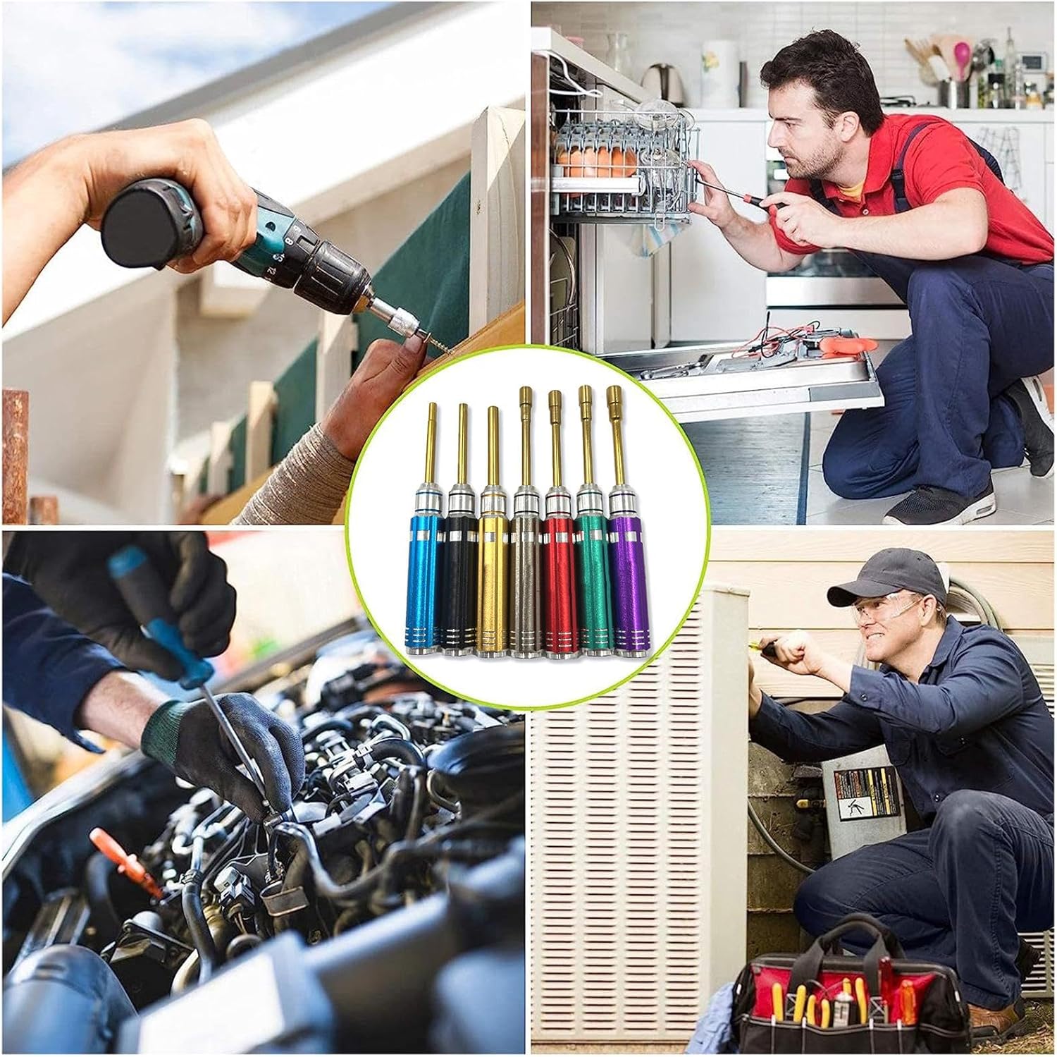 Forma esagonale accurata: il design esagonale esterno garantisce una migliore e minimizza lo slittamento e migliora la precisione del 30% durante le attività di serraggio o allentamento, soprattutto in aree ristrette come le riparazioni di apparecchiature elettroniche. Multifunzionale utilizzato in molteplici applicazioni: adatto per una varietà di attività di riparazione nel settore automobilistico, elettrodomestici ed elettronica. Uno strumento pratico per appassionati e tecnici esperti. Rivestimento rinforzato per una maggiore resistenza: i componenti in acciaio rivestito migliorano la resistenza all'usura e garantiscono un utilizzo più lungo anche in varie condizioni, ideale per esperti e hobbisti. Codifica colore per una facile identificazione: il set è composto da sette impugnature di colore diverso, ciascuna corrispondente a una dimensione diversa (da 2 mm a 5 mm), rendendo la selezione dell'utensile rapida ed efficiente Perfetto per riparazioni e progetti domestici.