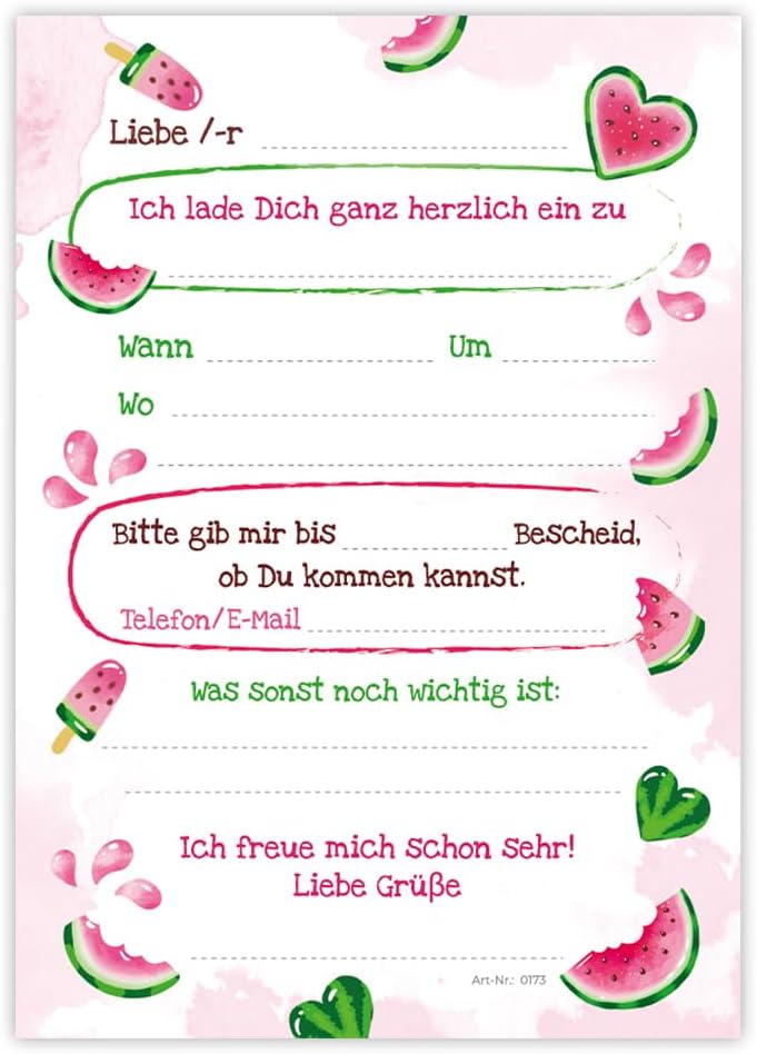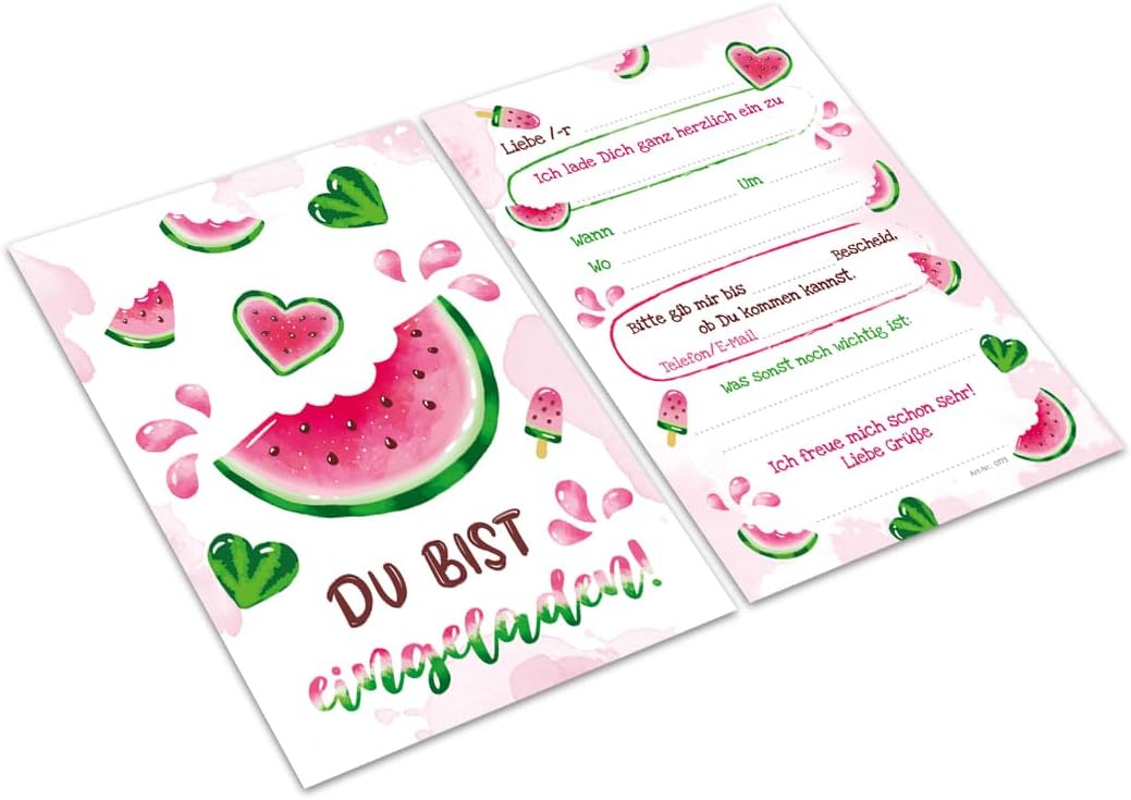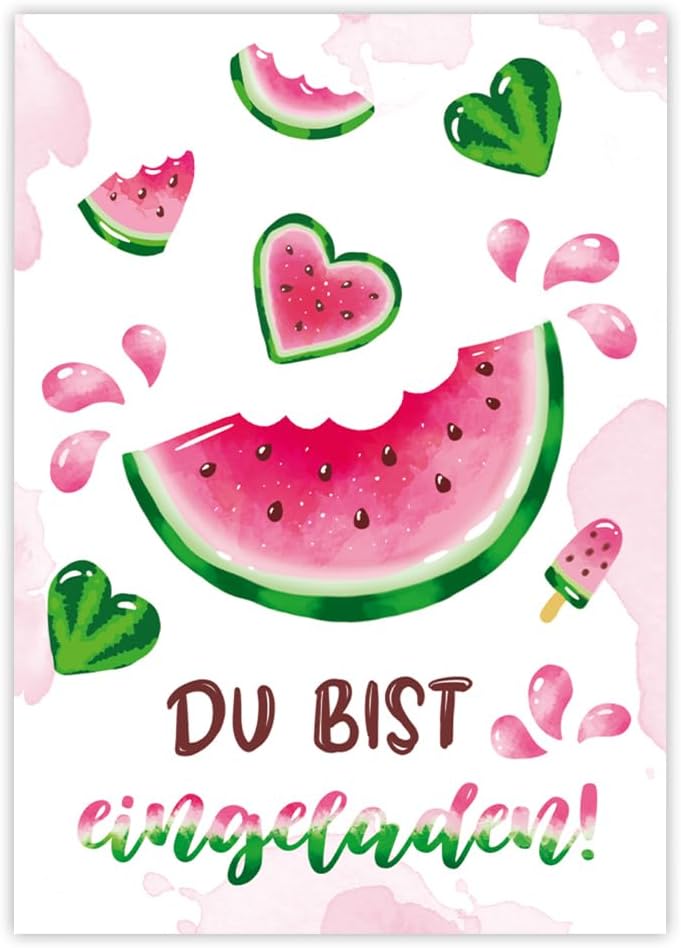 Contenuto: 8 biglietti d'invito + 8 buste Pratico: gli inviti sono moderni e progettati con molti dettagli. Sul retro troverete i campi prestampati da compilare. Biglietti: i biglietti d'invito sono molto robusti, hanno formato A6 (10,50 cm x 14,80 cm), stampa di alta qualità 300 g/m e sono rivestiti con vernice UV per la finitura. Buste autoadesive: la busta ha una dimensione di 11,40 cm x 16,20 cm, stampa da 80 g/m ed è adesiva (con striscia adesiva). Occasioni: i biglietti di invito sono molto adatti per una festa di compleanno o una festa di compleanno. È possibile utilizzare questi biglietti anche come inviti per battesimi, feste a tema, feste al cinema o feste in piscina. HAI BISOGNO DI UN ALTRO NUMERO? : da noi troverete anche biglietti e buste in set da 6, 10 o 12 pezzi. Altri motivi: nel nostro negozio troverete anche molti altri motivi di inviti, come lama, sirena, calcio, cinema, piscina, bowling. Prodotto in Germania: i biglietti e le buste sono stati prodotti in una tipografia tedesca.