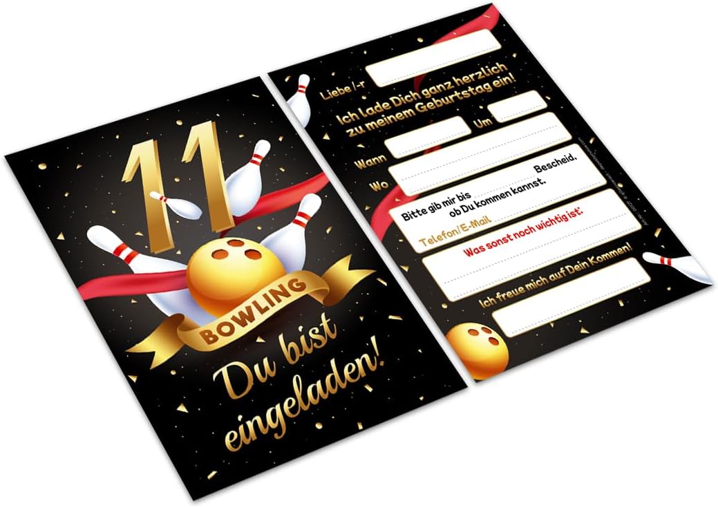 Contenuto: 8 biglietti d'invito + 8 buste Pratico: gli inviti sono moderni e progettati con molti dettagli. Sul retro troverete i campi prestampati da compilare. Biglietti: i biglietti d'invito sono molto robusti, hanno formato A6 (10,50 cm x 14,80 cm), stampa di alta qualità 300 g/m e sono rivestiti con vernice UV per la finitura. Buste autoadesive: la busta ha una dimensione di 11,40 cm x 16,20 cm, stampa da 80 g/m ed è adesiva (con striscia adesiva). Occasioni: i biglietti di invito sono molto adatti per una festa di compleanno o una festa di compleanno. È possibile utilizzare questi biglietti anche come inviti per battesimi, feste a tema, feste al cinema o feste in piscina. HAI BISOGNO DI UN ALTRO NUMERO? : da noi troverete anche biglietti e buste in set da 6, 10 o 12 pezzi. Altri motivi: nel nostro negozio troverete anche molti altri motivi di inviti, come lama, sirena, calcio, cinema, piscina, bowling. Prodotto in Germania: i biglietti e le buste sono stati prodotti in una tipografia tedesca.