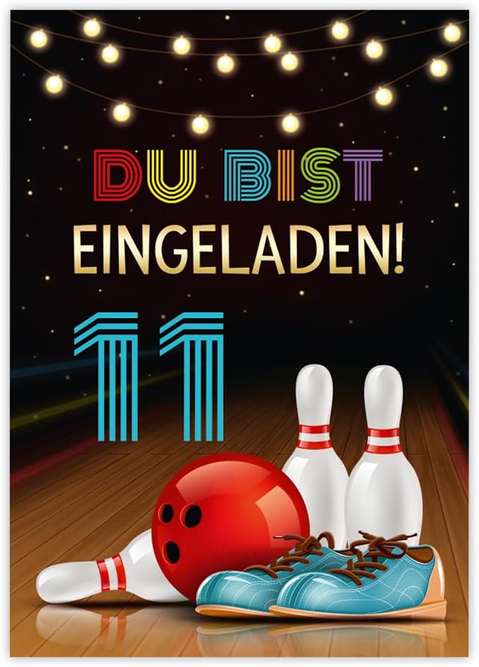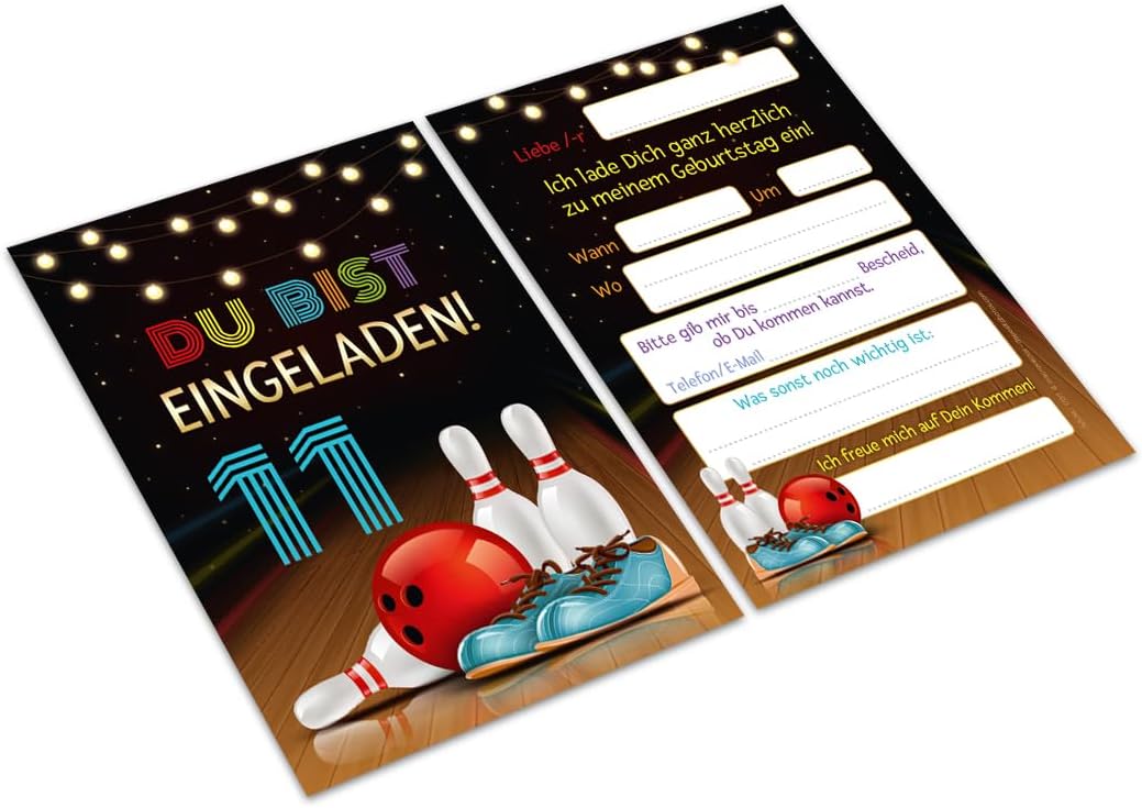 8 biglietti d'invito con 8 buste per il 11° compleanno per bambini, coni, bowling, ragazze, ragazzi, inviti, undicesimo compleanno per bambini