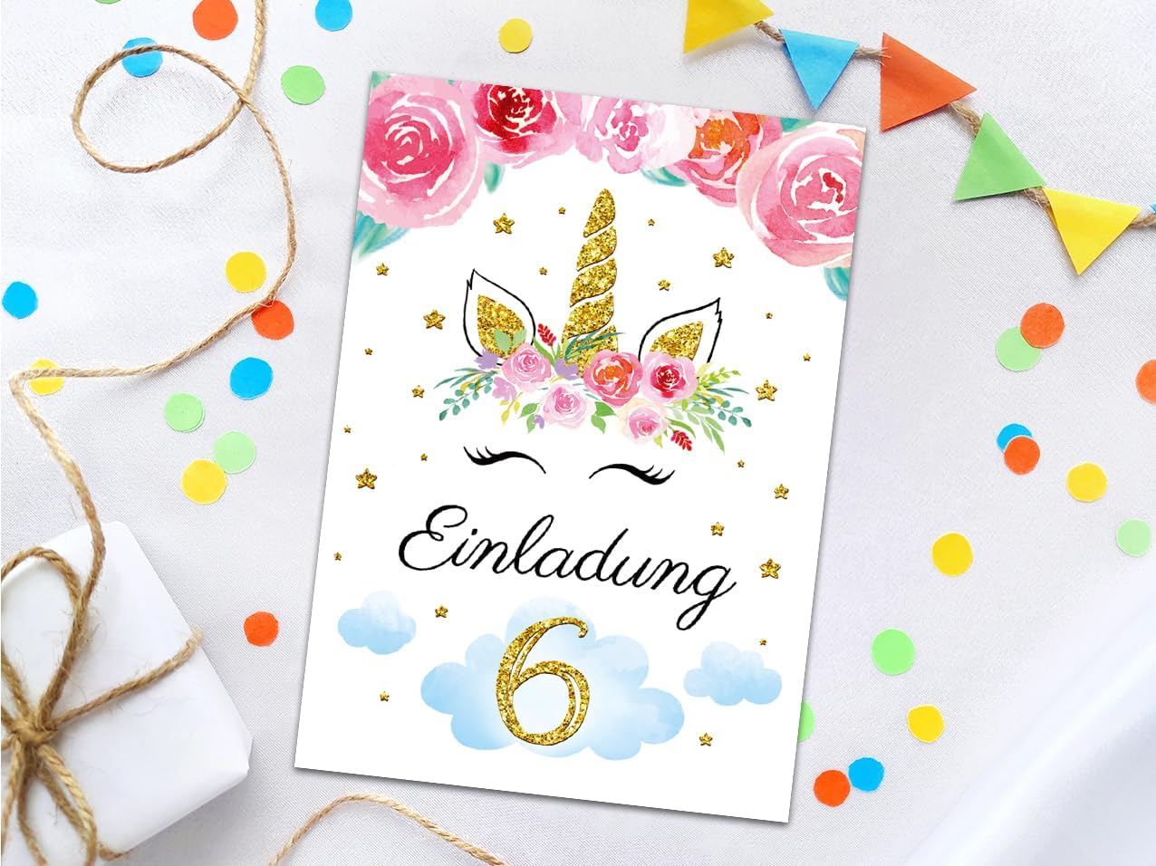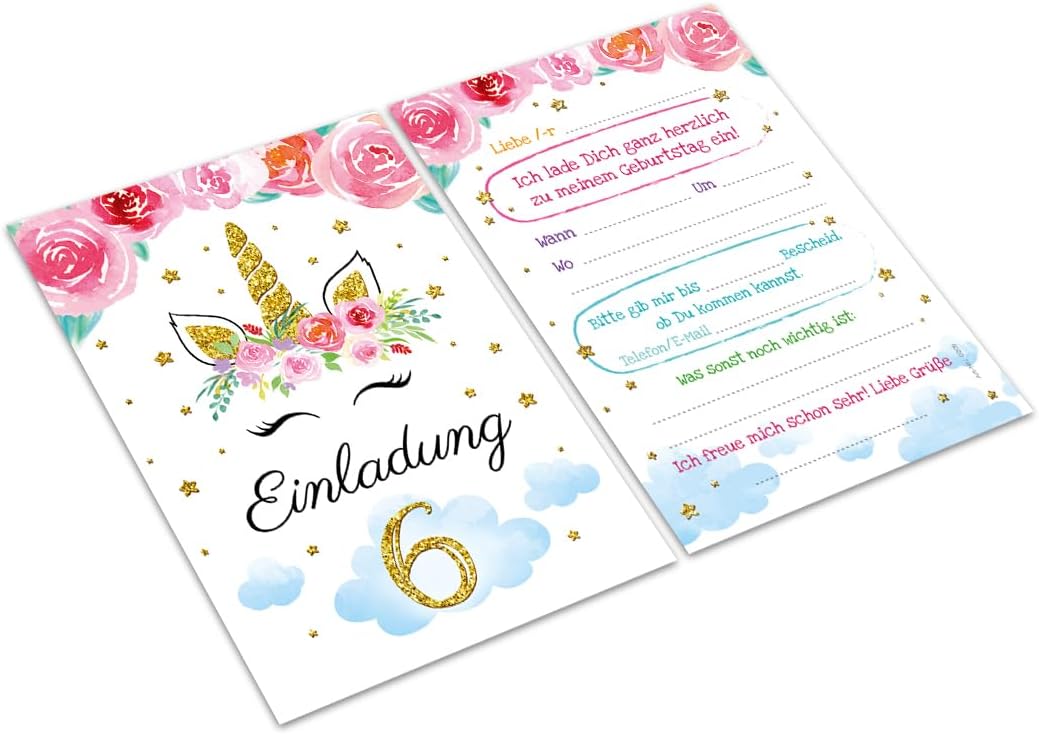Contenuto: 8 biglietti d'invito + 8 buste Pratico: gli inviti sono moderni e progettati con molti dettagli. Sul retro troverete i campi prestampati da compilare. Biglietti: i biglietti d'invito sono molto robusti, hanno formato A6 (10,50 cm x 14,80 cm), stampa di alta qualità 300 g/m e sono rivestiti con vernice UV per la finitura. Buste autoadesive: la busta ha una dimensione di 11,40 cm x 16,20 cm, stampa da 80 g/m ed è adesiva (con striscia adesiva). Occasioni: i biglietti di invito sono molto adatti per una festa di compleanno o una festa di compleanno. È possibile utilizzare questi biglietti anche come inviti per battesimi, feste a tema, feste al cinema o feste in piscina. HAI BISOGNO DI UN ALTRO NUMERO? : da noi troverete anche biglietti e buste in set da 6, 10 o 12 pezzi. Altri motivi: nel nostro negozio troverete anche molti altri motivi di inviti, come lama, sirena, calcio, cinema, piscina, bowling. Prodotto in Germania: i biglietti e le buste sono stati prodotti in una tipografia tedesca.