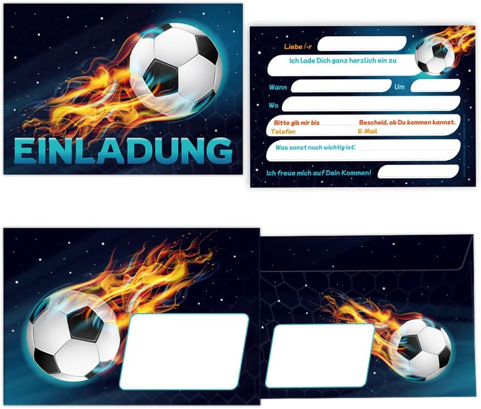 CONTENUTO: 8 biglietti d'invito + 8 buste + 8 sacchetti regalo/naturali + 8 adesivi PRATICO: con questo set avrai non solo inviti con buste abbinate, ma anche sacchetti regalo per bomboniere e fantastici adesivi regalo da etichettare. CARTE: gli inviti sono moderni e curati nei dettagli. Sul retro troverai i campi prestampati da compilare. I biglietti d'invito sono molto stabili, hanno formato A6 (10,50 cm x 14,80 cm), stampa di immagini di alta qualità da 300 g/m² e sono rivestiti con vernice UV per la finitura. BUSTE AUTOADESIVE: la busta ha una dimensione di 11,40 cm x 16,20 cm, stampa 80 g/m ed è autoadesiva (con strisce staccabili). BUSTE REGALO: le buste in carta hanno una dimensione di 14 x 22 x 5 cm. I sacchetti per feste (sacchetti con fondo incrociato) sono molto adatti per confezionare piccole bomboniere o dolci per gli ospiti. ADESIVI: gli adesivi misurano 5,2 x 14,8 cm. Tu o tuo figlio potete scrivere "Grazie" e "Piacere che tu fossi lì!" sugli adesivi. oppure scrivi il nome dell'ospite. OCCASIONE: il set da festa è molto adatto per una festa di compleanno o una festa di compleanno. Puoi utilizzare questi biglietti anche come inviti a battesimi, feste notturne, feste a tema, cinema o feste in piscina.