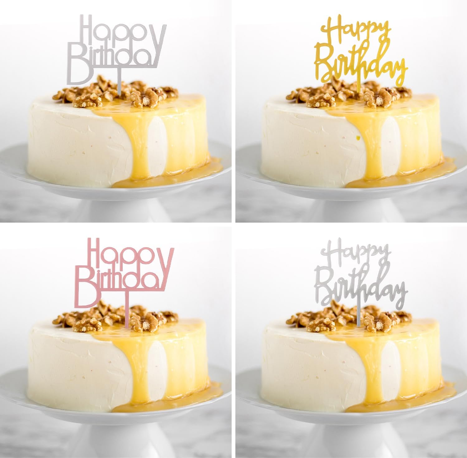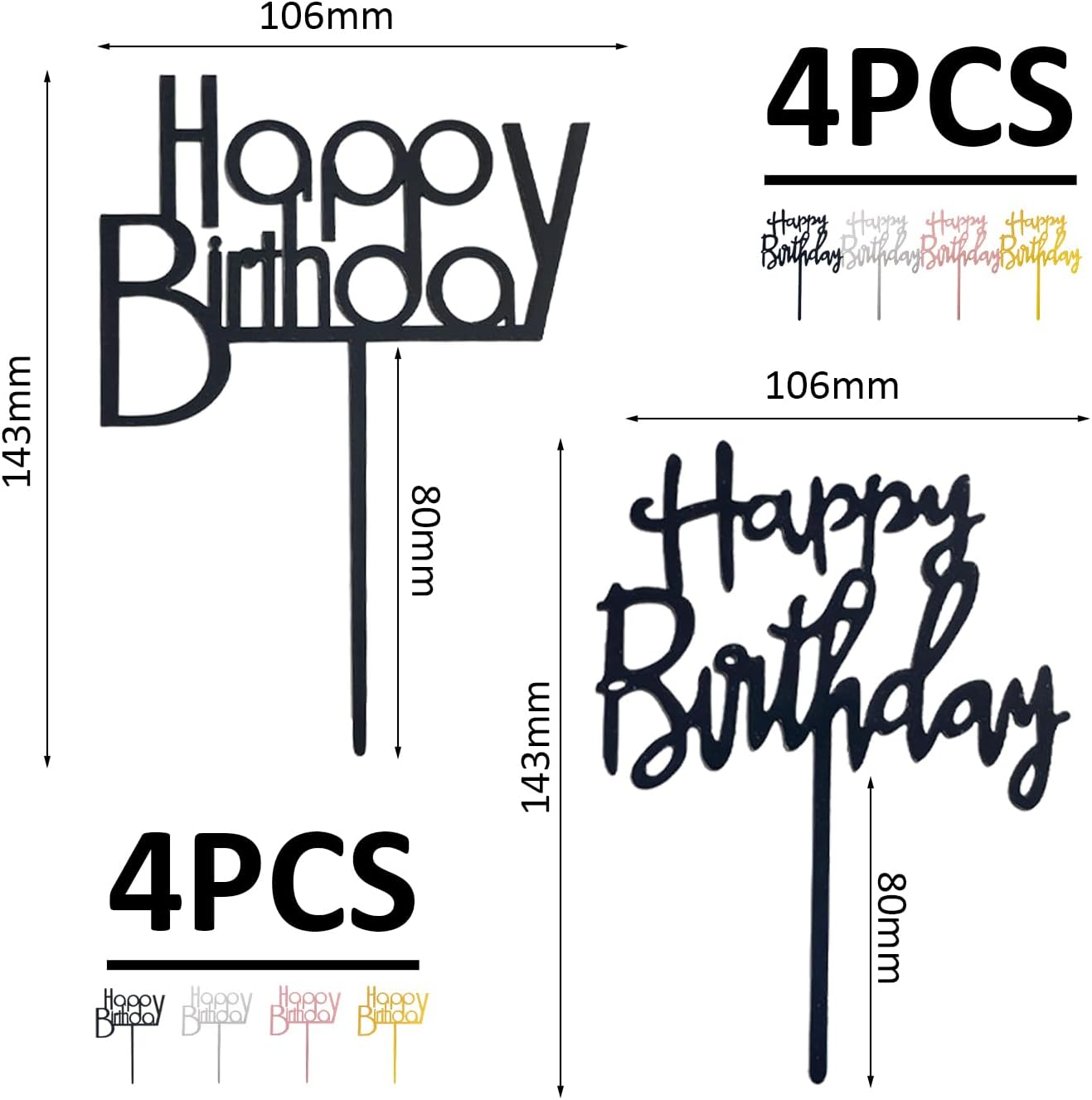 [Contenuto del prodotto]: riceverai 8 biglietti di buon compleanno, inclusi quattro colori oro, rosa, argento e nero, 2 pezzi per ogni colore, dimensioni rispettivamente 10,6 x 14,3 cm e 10,3 x 14 cm. [Materiale del prodotto]: questi inserti sono realizzati in materiale acrilico, robusto e durevole, con superficie liscia e colore brillante. Mantiene la sua lucentezza a lungo e assicura che la decorazione della tua torta diventi più luminosa e straordinaria. [Design alla moda]: il design della carta è semplice ed elegante, la forma della lettera è liscia e bella e sono disponibili quattro colori, abbinati a diversi tipi di torte di compleanno e temi di festa, aggiungendo un'atmosfera festosa alle feste di compleanno. [Facile da usare]: il design dell'inserto è leggero e facile da inserire in torte e cupcake senza ribaltarsi o cadere. Può essere facilmente lavato e riutilizzato dopo l'uso, offrendo maggiore comodità per le decorazioni della tua festa di compleanno. [Ampia applicazione]: adatto per feste di compleanno, vacanze, anniversari e altre occasioni. Che si tratti di una riunione di famiglia o di una festa aziendale, può aggiungere più gioia e bellezza alla tua torta.