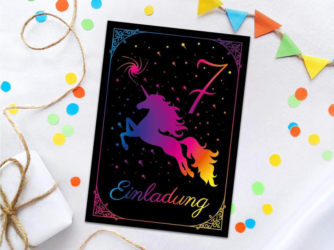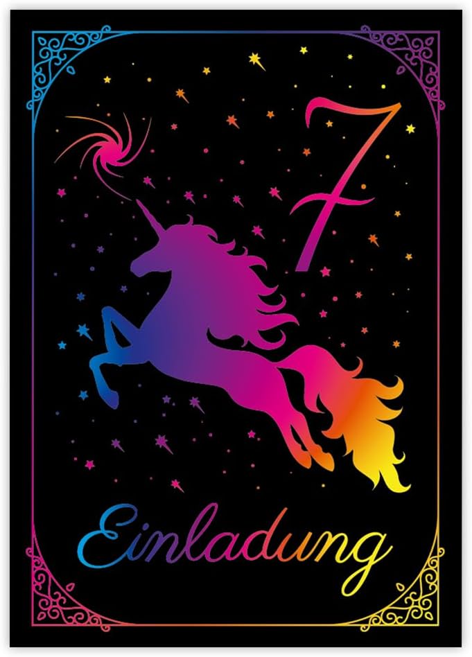 Contenuto: 8 biglietti d'invito + 8 buste Pratico: gli inviti sono moderni e progettati con molti dettagli. Sul retro troverete i campi prestampati da compilare. Biglietti: i biglietti d'invito sono molto robusti, hanno formato A6 (10,50 cm x 14,80 cm), stampa di alta qualità 300 g/m e sono rivestiti con vernice UV per la finitura. Buste autoadesive: la busta ha una dimensione di 11,40 cm x 16,20 cm, stampa da 80 g/m ed è adesiva (con striscia adesiva). Occasioni: i biglietti di invito sono molto adatti per una festa di compleanno o una festa di compleanno. È possibile utilizzare questi biglietti anche come inviti per battesimi, feste a tema, feste al cinema o feste in piscina. HAI BISOGNO DI UN ALTRO NUMERO? : da noi troverete anche biglietti e buste in set da 6, 10 o 12 pezzi. Altri motivi: nel nostro negozio troverete anche molti altri motivi di inviti, come lama, sirena, calcio, cinema, piscina, bowling. Prodotto in Germania: i biglietti e le buste sono stati prodotti in una tipografia tedesca.