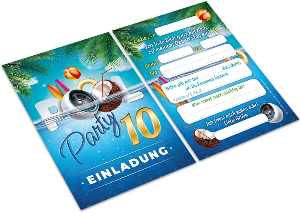 Contenuto: 8 biglietti d'invito + 8 buste Pratico: gli inviti sono moderni e progettati con molti dettagli. Sul retro troverete i campi prestampati da compilare. Biglietti: i biglietti d'invito sono molto robusti, hanno formato A6 (10,50 cm x 14,80 cm), stampa di alta qualità 300 g/m e sono rivestiti con vernice UV per la finitura. Buste autoadesive: la busta ha una dimensione di 11,40 cm x 16,20 cm, stampa da 80 g/m ed è adesiva (con striscia adesiva). Occasioni: i biglietti di invito sono molto adatti per una festa di compleanno o una festa di compleanno. È possibile utilizzare questi biglietti anche come inviti per battesimi, feste a tema, feste al cinema o feste in piscina. HAI BISOGNO DI UN ALTRO NUMERO? : da noi troverete anche biglietti e buste in set da 6, 10 o 12 pezzi. Altri motivi: nel nostro negozio troverete anche molti altri motivi di inviti, come lama, sirena, calcio, cinema, piscina, bowling. Prodotto in Germania: i biglietti e le buste sono stati prodotti in una tipografia tedesca.