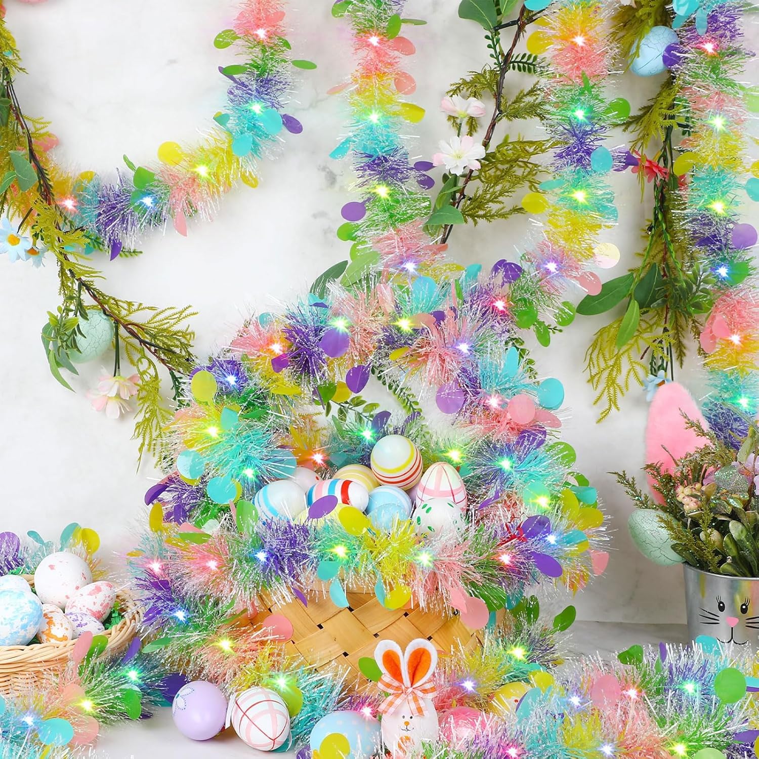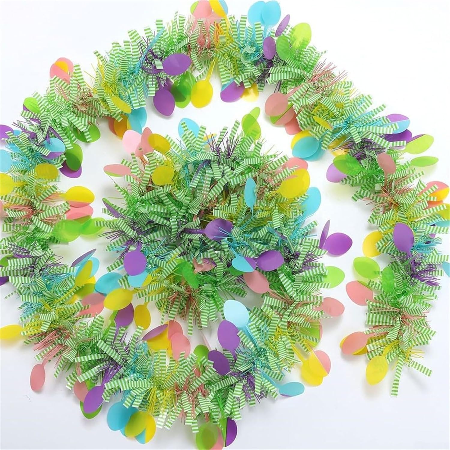 Molto adatto per casalinghe, insegnanti, appassionati di artigianato. Migliora la decorazione delle feste con un tocco di fascino Realizzato in polipropilene, questo tinsel colorato è progettato per un uso prolungato e una facile integrazione con altre decorazioni Migliora la tua celebrazione del festival con questi ornamenti colorati da appendere, caratterizzati da colori vivaci che portano un tocco festivo a qualsiasi ambiente Ampiamente usato per decorare camera da letto, soggiorno, cucina, porta, parete, camino, finestra, corridoio, veranda, casa, ristorante, interni ed esterni, aggiungendo fascino unico a qualsiasi spazio durante la celebrazione del festival Con i suoi disegni unici a righe e vari colori vivaci, questo tinsel twist primaverile non è solo un ornamento, ma anche un'aggiunta essenziale per varie feste