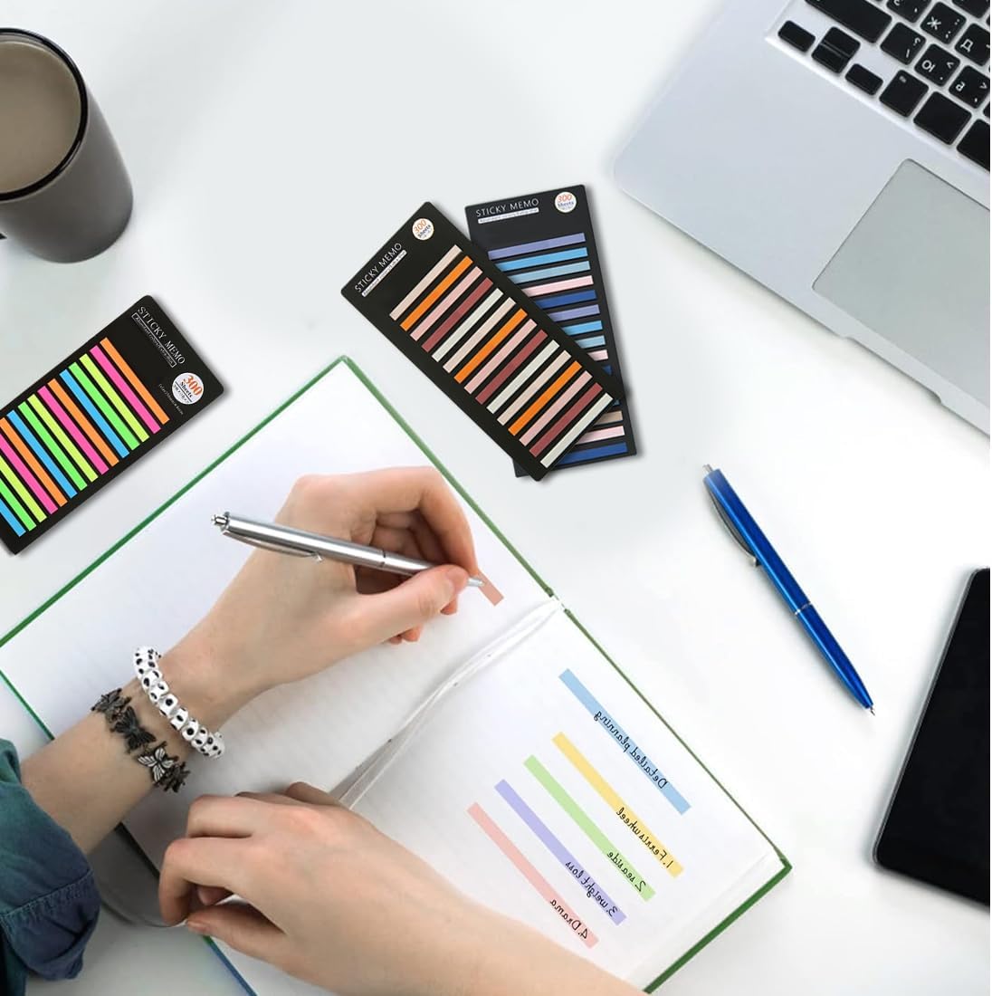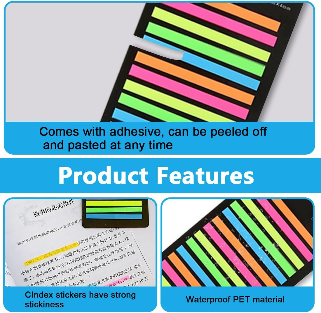 Set completo: 8 blocchi da 20 fogli ciascuno, per un totale di 2400 foglietti adesivi colorati. Perfetto per organizzare e annotare i tuoi documenti quotidianamente. Materiale di qualità: realizzati in PET trasparente, robusto e resistente all'acqua, questi segnalibri adesivi garantiscono una forte adesione. Facili da rimuovere, non lasciano residui sulle superfici Riutilizzabili e pratici: questi mini foglietti adesivi possono essere attaccati e rimossi più volte senza danneggiare la carta o le pagine. Ideale per adattarsi alle mutevoli esigenze con flessibilità Design trasparente e chiaro: grazie al materiale sottile e traslucido, testi e immagini rimangono perfettamente visibili. Questi foglietti adesivi trasparenti sono perfetti per contrassegnare informazioni importanti senza nasconderle. Utilizzo versatile: ideale per la scuola, l'ufficio o la casa. Usali come segnalibri, schede di lettura, indici o promemoria adesivi. Uno strumento pratico per organizzare il lavoro e gli studi