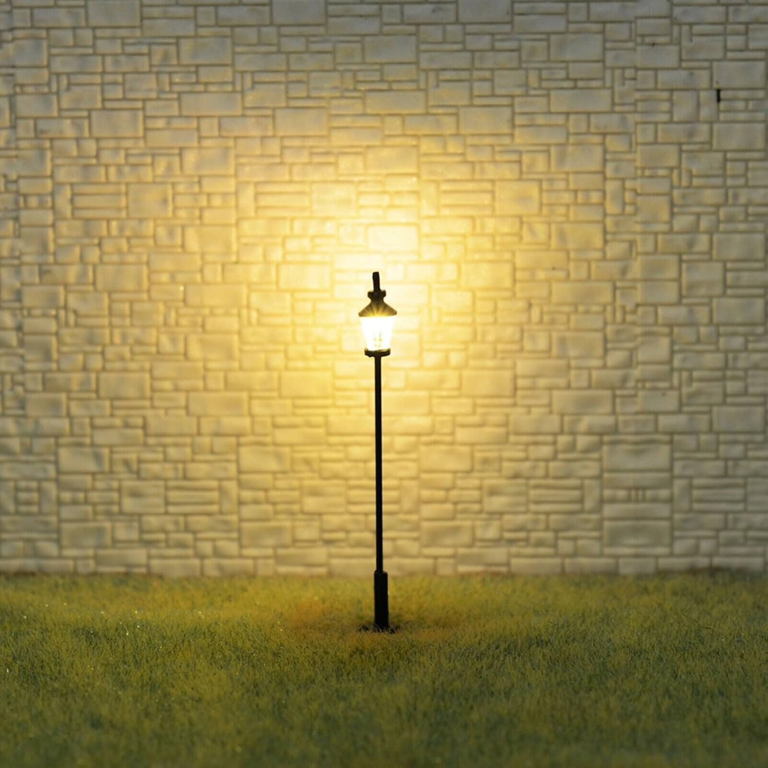 Set completo: questo pacchetto include 8 lampioni antichi verniciati con fili precollegati e LED pronti per l'installazione, oltre a 8 resistori compatibili da 620 ohm 1/4W per un facile collegamento al tuo alimentatore ferroviario da 12 V o 16 V. Design autentico: ogni lampione meticolosamente realizzato presenta uno stile vintage che aggiunge un fascino realistico al tuo modello in scala OO o HO, layout ferroviari, diorami o scene di villaggio in miniatura, migliorando il fascino visivo generale. Pronto all'uso: questi lampioni funzionano a 3 V DC con un consumo di corrente di 20 mA e sono dotati di resistori appropriati, consentendo una semplice installazione plug-and-play senza richiedere componenti elettrici aggiuntivi o modifiche. Applicazione versatile: aggiungi l'illuminazione atmosferica a varie aree della tua ferrovia modello, tra cui piazze della città, piattaforme della stazione, strade residenziali o percorsi del parco per creare una scena notturna realistica che dia vita al tuo mondo in miniatura. Scala appropriata: dimensioni precise per layout in scala OO e HO (circa scala 1:87), questi lampioni mantengono proporzioni adeguate per un'integrazione realistica con il tuo scenario, edifici e accessori ferroviari esistenti.