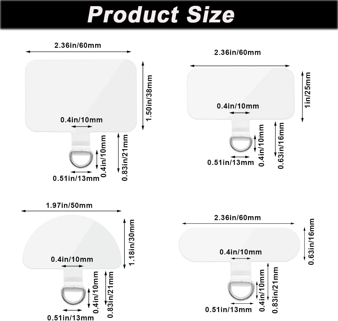 Ampia applicazione: le schede del telefono sono progettate per funzionare con la maggior parte delle combinazioni di telefoni e custodie consentendo al contempo la possibilità di cambiare le custodie e utilizzare ancora il sistema. Forte anti-stress e nessun design adesivo, nessuna colla rimane dopo la rimozione. Cooperare con cordino potrebbe proteggere il telefono da cadute di incidenti. L'anello in metallo potrebbe migliorare la sicurezza del dispositivo e anche essere utilizzato per fissare chiavi, portafogli, ecc. 4 dimensioni: piccolo e leggero, si adatta facilmente alla custodia del tuo telefono; con elasticità affidabile, patch universale per tutti gli smartphone con una custodia a copertura completa da 4 a 6,7 pollici in modo sicuro. Nota: non supporta la custodia a mezza copertura. Comodo da usare: potrebbe scivolare nei fori di ricarica della custodia, non bloccare il foro di ricarica e non interferire con la ricarica wireless. Quando viene utilizzato con cordino per il collo del telefono o corde da polso, è possibile togliere direttamente il telefono in qualsiasi momento e non è necessario rimuovere il cordino, comodo e veloce. Materiale di alta qualità: il tappetino non adesivo per cellulare è realizzato in materiale TPU, sicuro e affidabile, non facile da rompere, leggero; non aggiungerà troppo carico al telefono o causerà troppi problemi per l'uso quotidiano. Contenuto della confezione: 8 linguette in tela con anello in metallo, 4 misure, trasparente. Quantità sufficienti potrebbero soddisfare il tuo uso quotidiano e potresti condividerle con i tuoi familiari o amici.