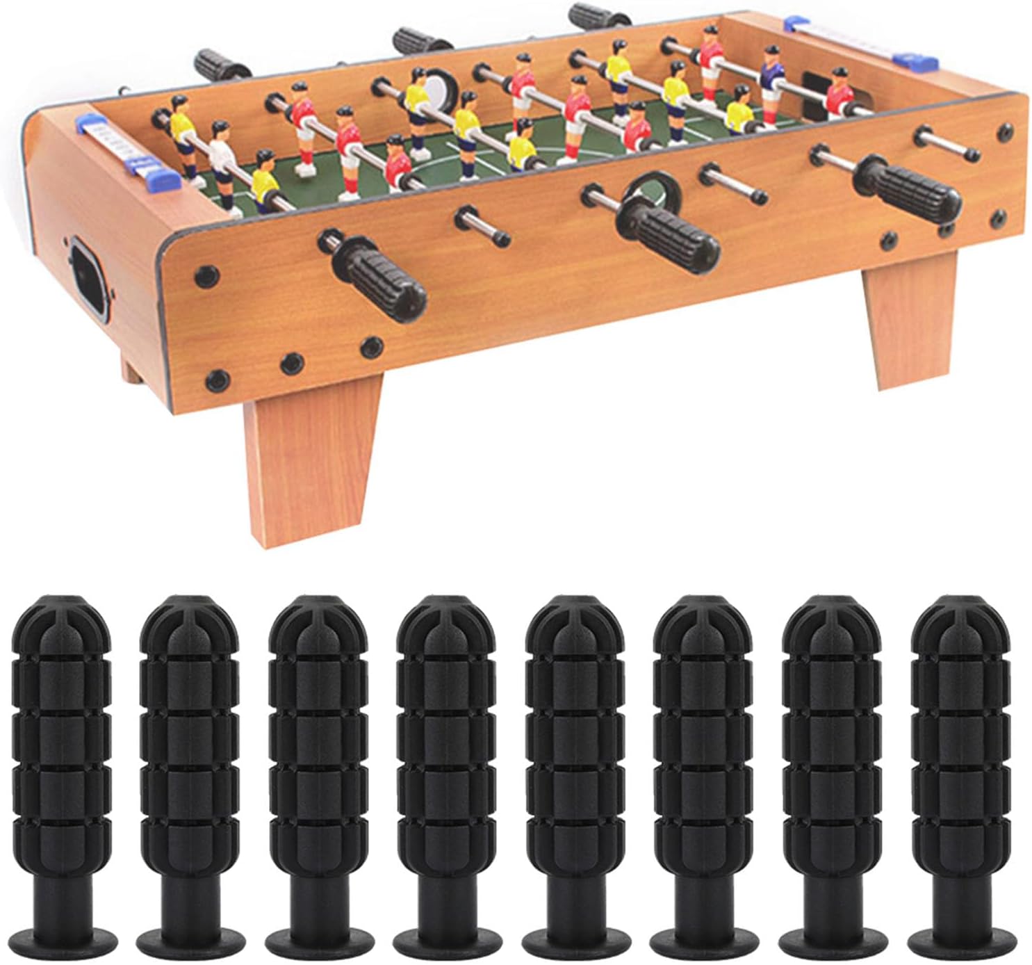 Questa è una maniglia per calcio balilla in plastica. Resistente e durevole. Non si deforma facilmente. Design dentale, non lascia labbra, facile da usare. Per gli amanti del calcio balilla e uso. 8 pezzi in 1 confezione, abbastanza per un lungo periodo di tempo.