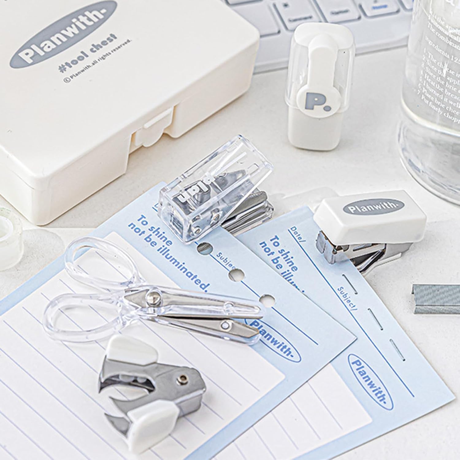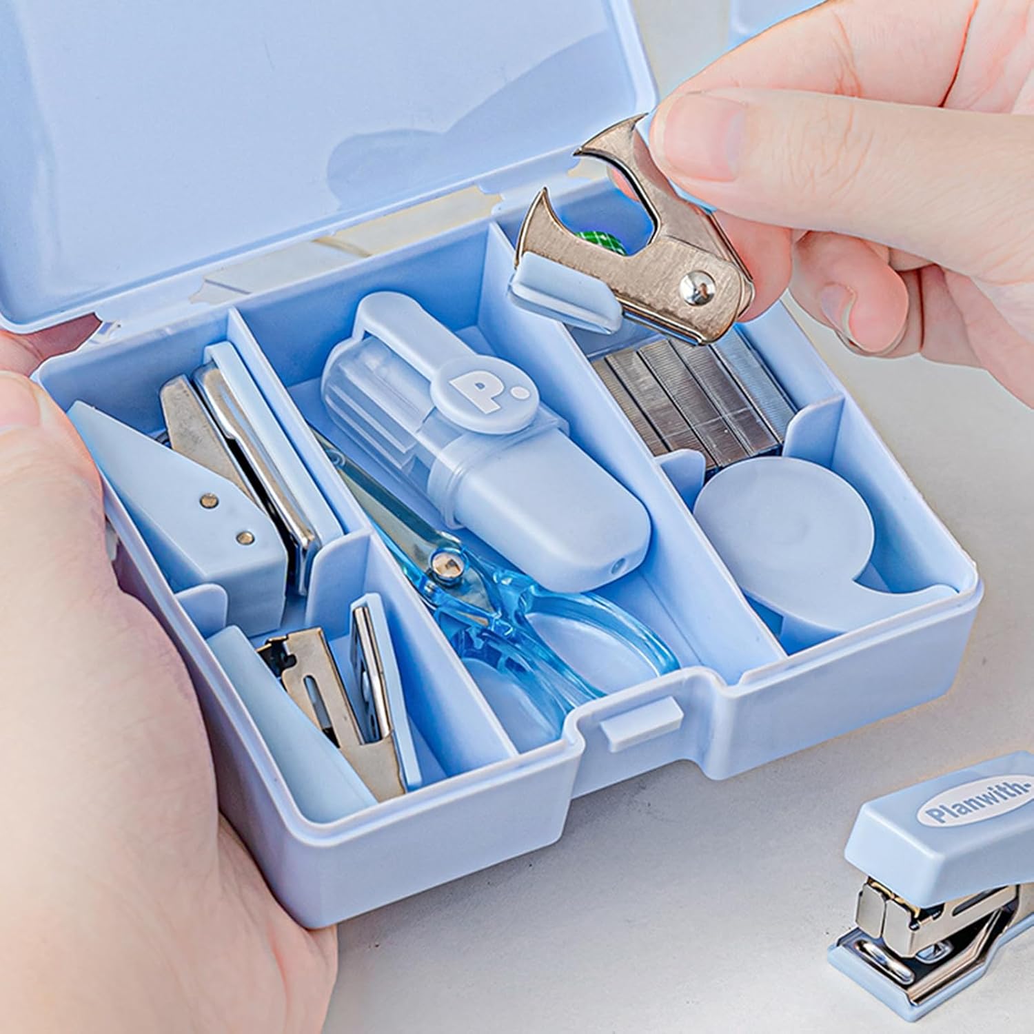 Adatto a studenti, insegnanti, professionisti ufficio e appassionati artigianato che necessitano forniture per uffici multifunzionali per documenti, organizzazioni per la scheda organizzazione o progetto journaling e scrapbooking creativo I suoi progetti compatti sono dotati scomparti organizzati per l'archiviazione degli strumenti, con punzatore che gestisce 10 fogli e pinzatrice che protegge 12 pagine senza sforzo utilizzando la base standard La confezione include perforatori, cucitrice, levapunti, pinzatrice, forbici, pennarello e nastro adesivo, realizzata in plastica e metallo lunga durata per uso in ufficio o a scuola Questo set multifunzionale migliora l'efficienza del lavoro con strumenti dai colori coordinati progettati per attività quotidiane ergonomiche Ampiamente utilizzato per mantenere ordinata l'area lavoro in uffici, aule e stanze domestiche o artigianali mentre organizzano in modo sicuro documenti, foto o pagine album