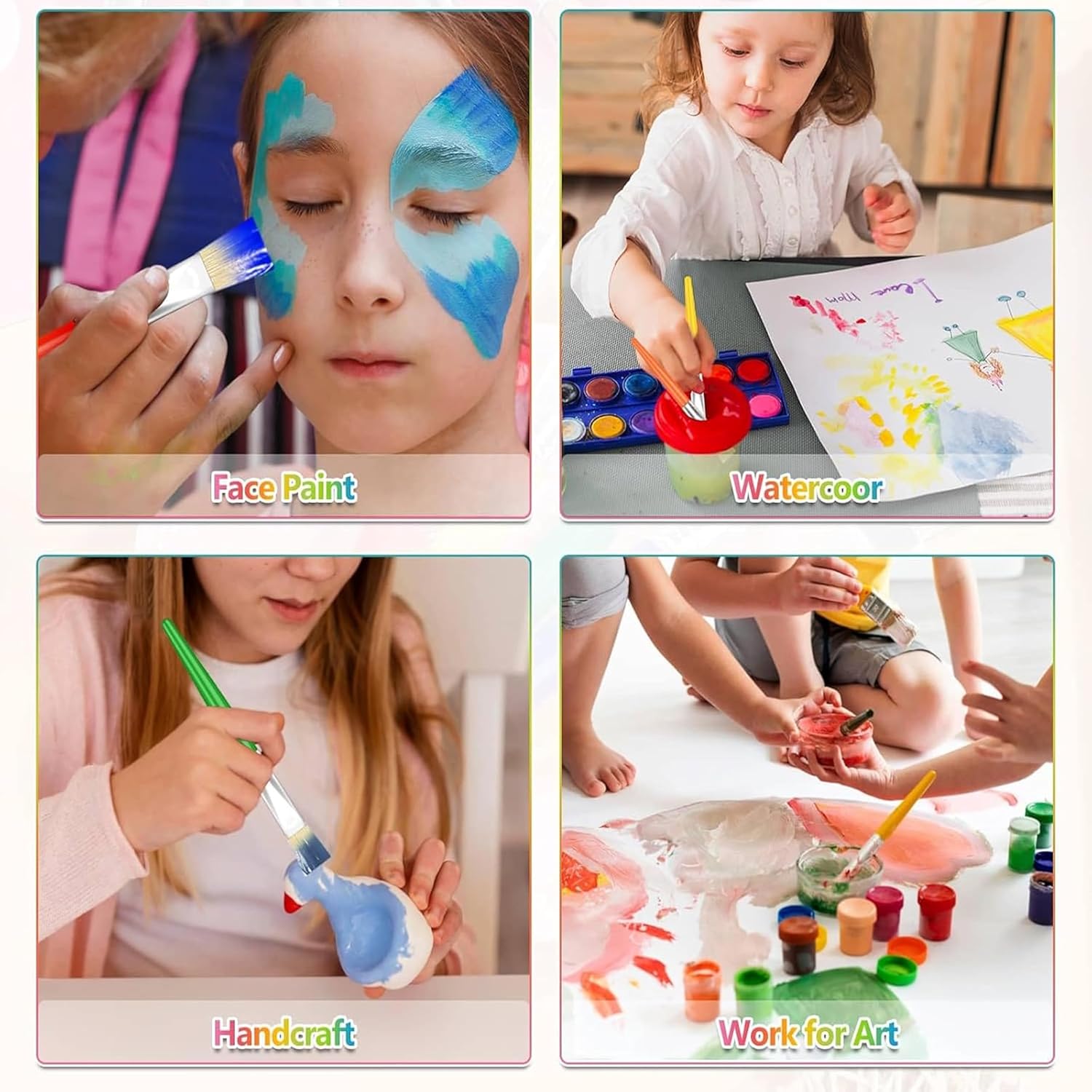 perfetto per studenti, adolescenti, bambini, bambini e pittori di tutti i livelli. Meravigliosa idea regalo per ragazze, ragazzi e bambini che amano dipingere. Questi pennelli multiuso per bambini sono ideali per progetti scolastici per bambini, feste di compleanno, feste di pittura, feste artistiche, forniture per il rientro a scuola, decorazioni in classe e molto altro ancora. i pennelli Anezus per bambini sono dotati di pennelli rotondi e piatti con manici colorati, ideali per i giovani artisti per esplorare la loro creatività nella pittura e nell'artigianato questi pennelli per bambini sono realizzati in morbide setole di maiale, manici dai colori vivaci e ghiere antiruggine. Le setole sono saldamente fissate nei pennelli per bambini e non cadono. Ogni pennello per bambini misura di lunghezza e ghiere di diametro, abbastanza grande per la piccola mano da afferrare e controllare con la combinazione di pennelli rotondi e piatti per bambini, funzionano alla grande con vernice lavabile, vernice a tempera e vernice acrilica. Ideale per arti e mestieri, roccia, pelle, gesso e ceramica, o pittura per corpo, unghie e viso. dopo aver usato pennelli per pittura acrilica, ad olio o ad acquerello, è molto comodo pulirli con acqua tiepida e sapone e rimodellare le punte dei pennelli. Mantenete questi pennelli puliti e durano a lungo.