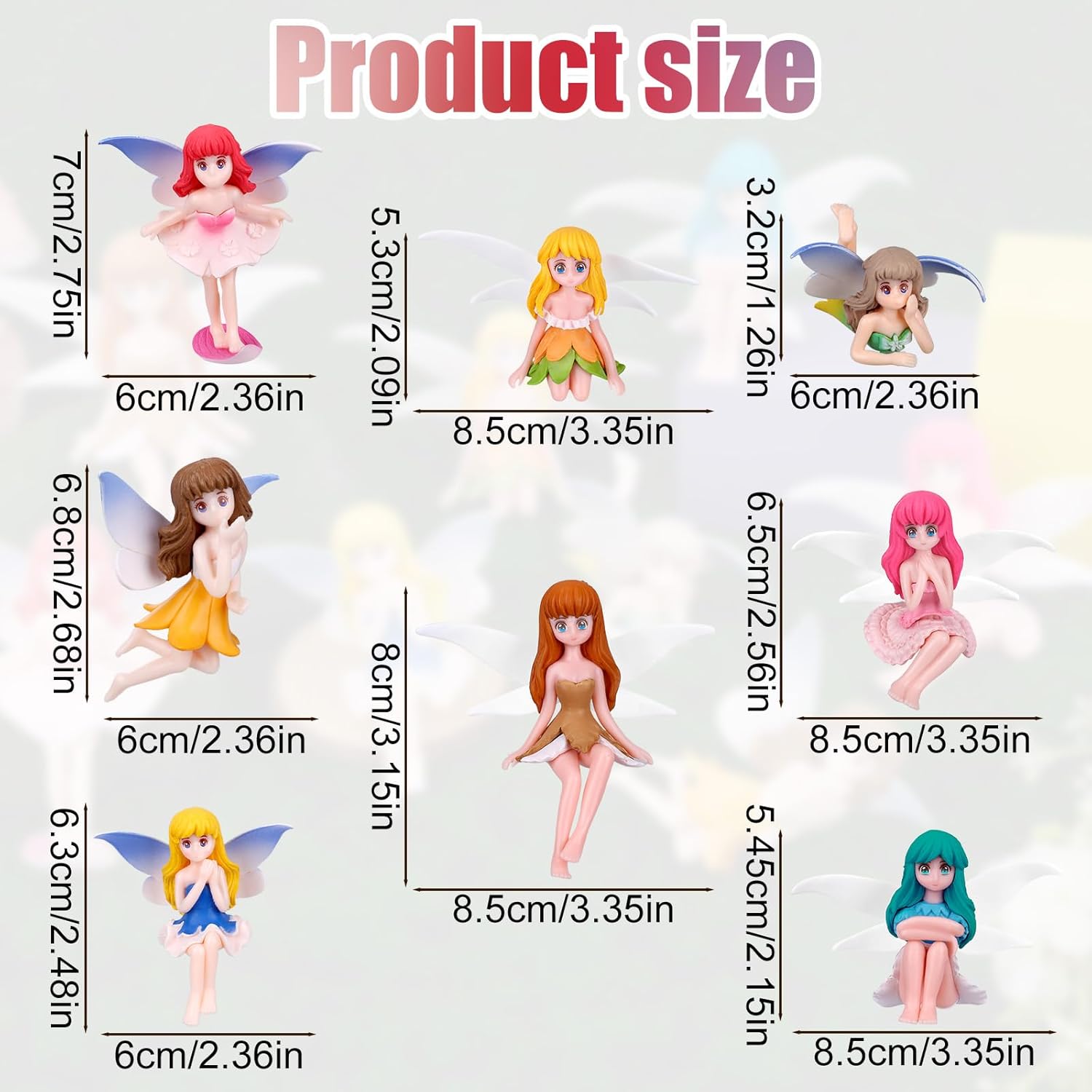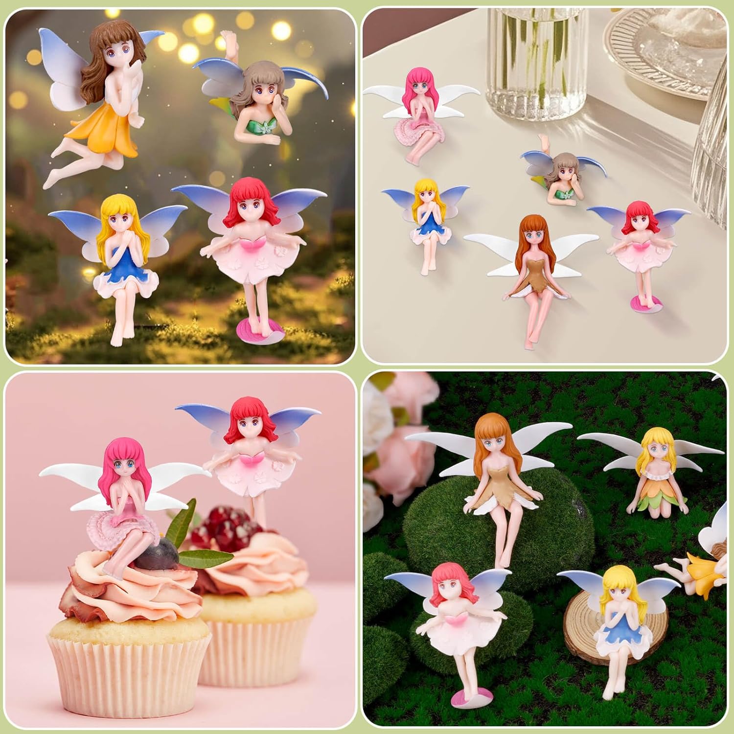 Contenuto del prodotto: riceverai 8 pezzi di accessori per giardini fati in miniatura.Diverse azioni e colori possono arricchire la tua decorazione. Materiale premium: i nostri ornamenti per le fate dei fiori sono realizzate in materiale in resina premium, che consente l'eccezionale durata e robustezza dei prodotti e i loro colori non svaniranno facilmente. Dimensione del prodotto: una delle sculture da fata in miniatura è di dimensioni di 8,5x8 cm.Ogni scultura mostra un design unico e ha una dimensione compatta. Gift Idea: questi ornamenti adorabili e caratteristici sono regali eccellenti per amici o familiari.Esprimi il tuo amore per la tua famiglia con questo meraviglioso set di decorazioni che porteranno gioia e calore in qualsiasi spazio. Ampia applicazione: questi deliziosi ornamenti da giardino in miniatura offrono infinite possibilità;Usali per adornare il tuo giardino, abbellire i tuoi tavoli, aggiungere capriccioso alle torte, ispirare progetti fai -da -te, decorare la tua casa o le feste di accessoria.