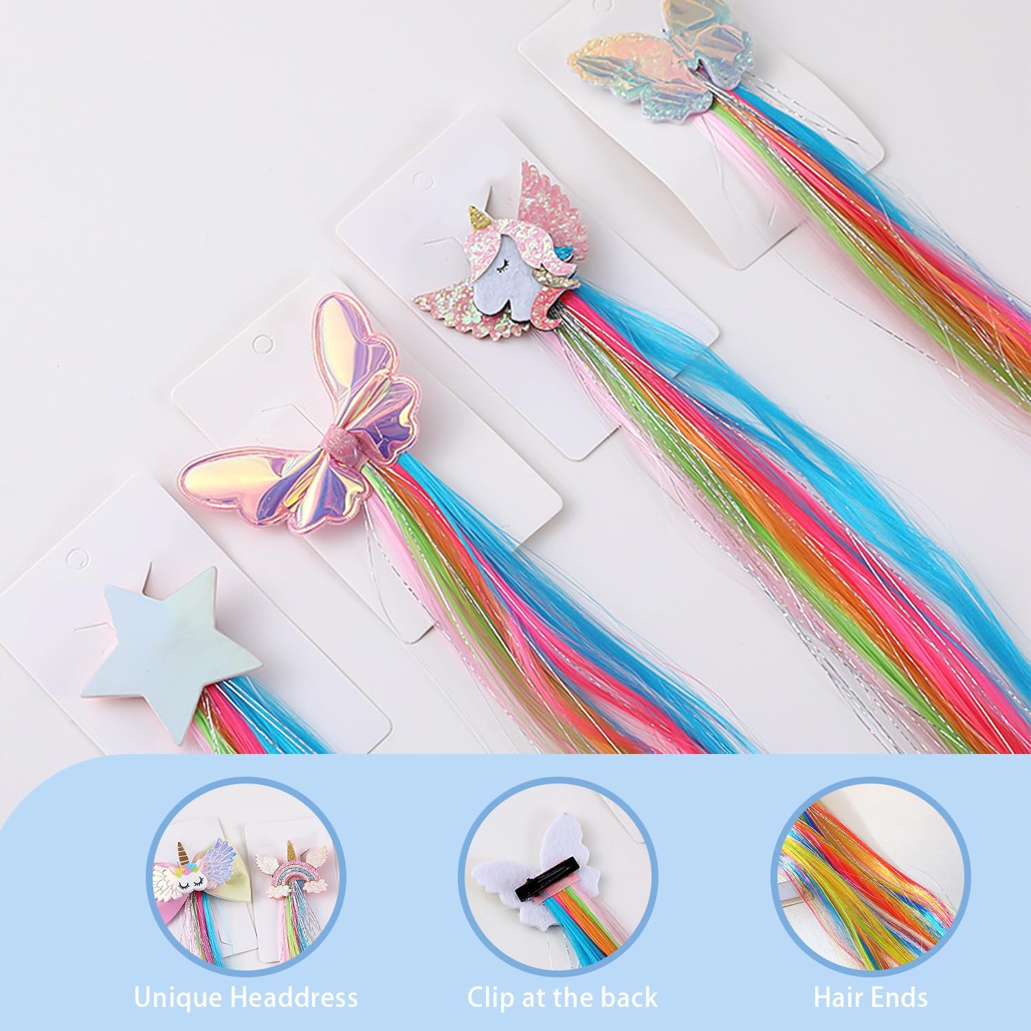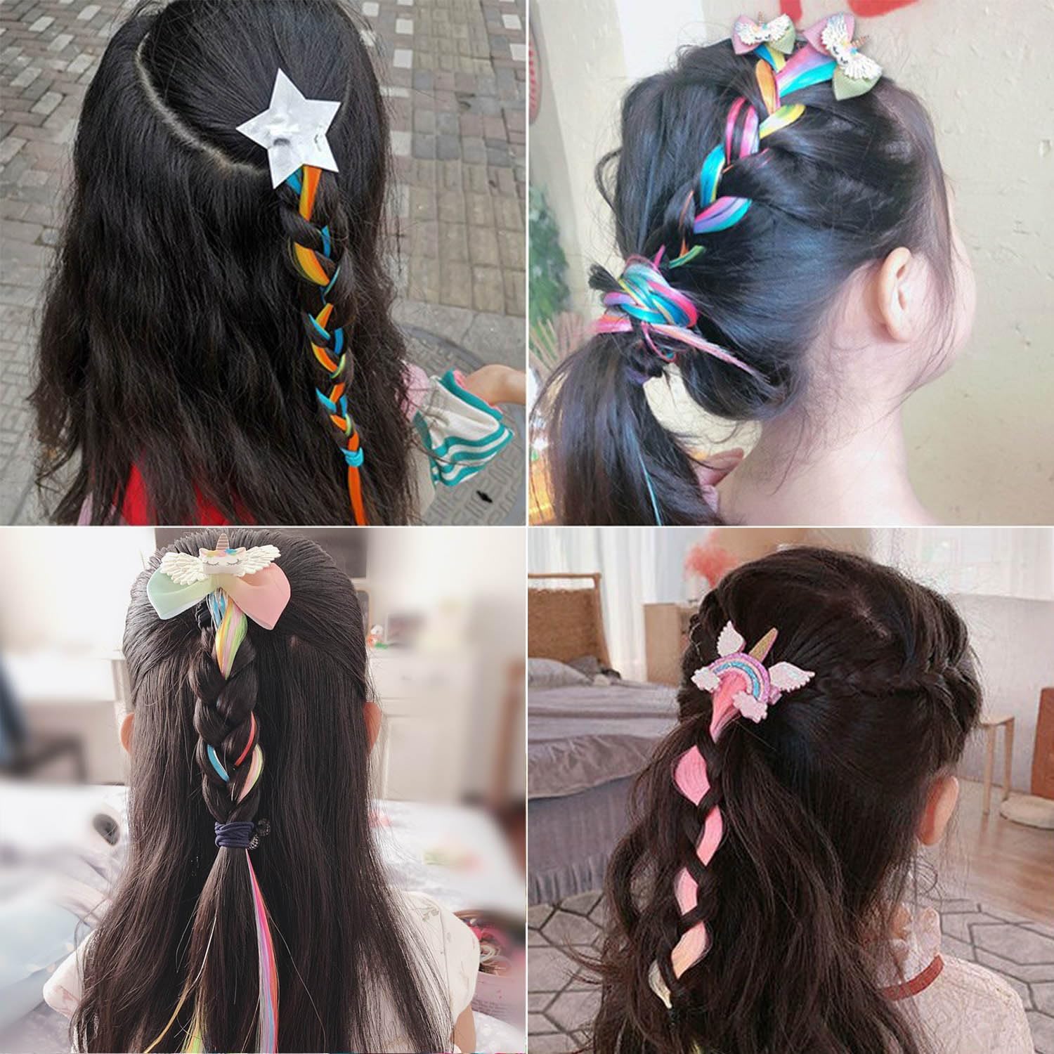 Contenuto del set: acquista il nostro set di accessori colorati per parrucca, riceverai 8 accessori colorati per parrucche che possono essere utilizzati per decorare la tua ragazza e ottenere diverse acconciature per soddisfare il suo desiderio di diventare bella. Materiali selezionati: gli accessori colorati per parrucca sono composti da fermagli per capelli, decorazioni e trecce colorate, le trecce sono realizzate in fibre sintetiche di alta qualità e morbidi elastici, non producono odori sgradevoli, la superficie è liscia e resistente, i colori chiari e belli sono molto attraenti, rendono la tua bambina carina e alla moda. Facile da usare: la clip per parrucca ha una piccola clip sulla punta per mantenere i capelli in posizione, perfetta per decorare i capelli. La parrucca può essere intrecciata con i propri capelli o tagliata alla lunghezza desiderata. Bel regalo: questo accessorio per capelli colorato è decorativo e può aggiungere carinezza e personalità all'acconciatura di una ragazza. Con 8 stili in un set, è molto accattivante da indossare, che è un regalo ideale per le ragazze. Ampiamente usato: questo accessorio per capelli è adatto per bambini e adulti, adatto per compleanni, feste, balli, parchi di divertimento, festival, ecc., per scattare foto è molto fuori dall'immagine.