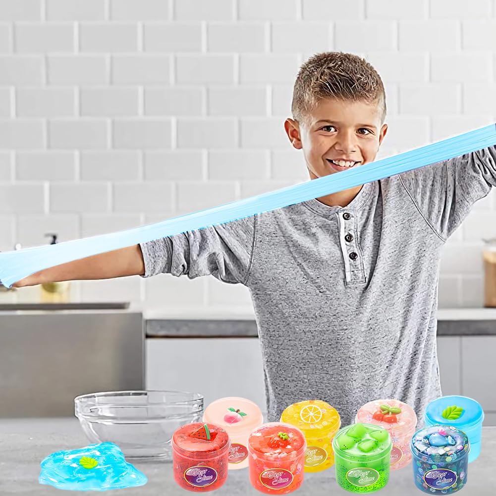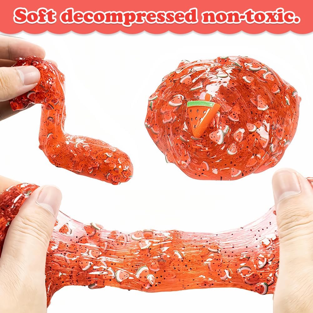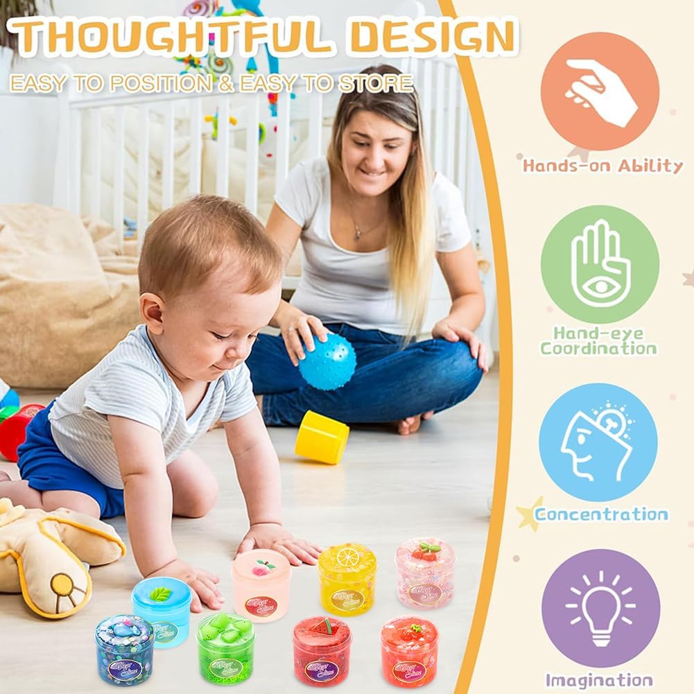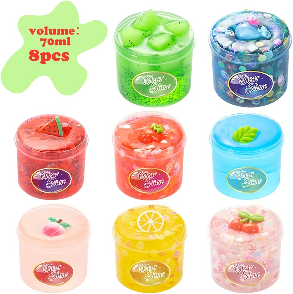 【Slime di Frutta】Il set di slime di cristallo di frutta include 8 slime colorate diverse e molti accessori di slime carini, tra cui fragole, angurie, foglie verdi, cervi, limoni, cocco, ciliegie, pesche e una varietà di slime per portare divertimento fai da te agli appassionati di fango. 【Materiali di Alta Qualità】Il slime Argilla cristallino trasparente della frutta è fatto di materiali resina di alta qualità. Morbido e non grasso, cristallino, con una leggera fragranza. Super elastico e non toccante, facile da strofinare, tirare, arrotolare, spremere e applicare, creando forme diverse. 【Riutilizzabile】Il slime clay della gelatina di frutta può essere riutilizzato a lungo. Ogni tipo di clay viene fornito con un contenitore di stoccaggio, e quando non è in uso, è sufficiente rimettere il clay cristallino trasparente della frutta nel contenitore. La prossima volta che giochi, scoprirai che il muco è tornato al suo stato originale. 【Puzzle Toys】Il slime mud trasparente di cristallo della frutta incoraggia i bambini a creare e progettare liberamente, che possono stimolare la loro creatività e immaginazione, aiutarli a sviluppare abilità motorie, migliorare la coordinazione delle mani e godere del divertimento dei giochi sensoriali. Nel frattempo, i colori brillanti possono coltivare le capacità cognitive dei bambini. 【Regalo Ideale】Il slime di cristallo trasparente è il miglior regalo per i compleanni dei bambini, Natale e altre attività di vacanza. Possono essere utilizzati per creare stampi in argilla unici e progetti artistici, rendendoli piacevoli per i bambini.
