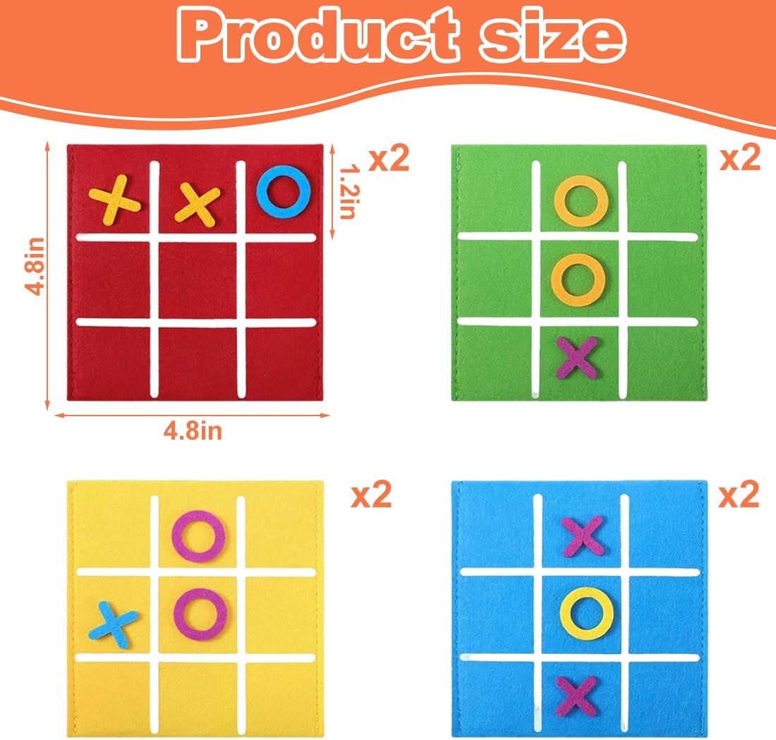 Set colorato di Tic Tac Toe: Include 8 giochi Tic Tac Toe in rosso, giallo, blu e verde, 2 pezzi per colore. Le tonalità vivaci e la quantità generosa garantiscono ore di divertimento e soddisfano le preferenze dei bambini. Ideale come regalo per feste di compleanno o per momenti di gioco condivisi Divertimento creativo: Questo gioco da tavolo in feltro offre diverse modalità di gioco. I bambini possono vincere tracciando una linea con 'X' e 'O' o inventare varianti personalizzate. Stimola la creatività e offre intrattenimento vario per feste di compleanno e attività di gruppo Sviluppo di abilità: Il gioco Tic Tac Toe favorisce la coordinazione occhio-mano, il pensiero logico, la memoria e la percezione spaziale. Rafforza l'interazione genitore-figlio ed è uno strumento educativo e di intrattenimento ideale per bambini di tutte le età Materiale di alta qualità: Realizzato in feltro resistente con bordi lisci, questo gioco è sicuro per i bambini. Ogni set è dotato di una confezione dedicata per conservare 'X' e 'O' in sicurezza. Facile da trasportare, perfetto come regalo per feste di compleanno o per attività fuori casa Versatile e pratico: Questo adorabile gioco da tavolo in feltro è un regalo ideale per compleanni, Natale o altre occasioni speciali. Perfetto per l'uso a casa, a scuola, alle feste o durante attività all'aperto. Una scelta eccellente per piccoli regali e gadget per bambini