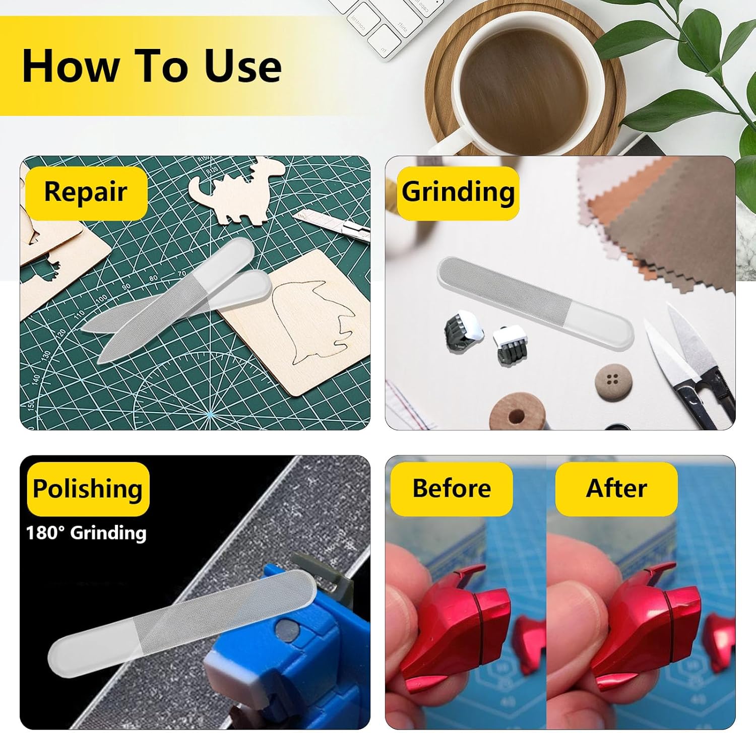 【Materiali】: gli Modeler Basic Tools sono realizzati in materiale nano-vetro di alta qualità e le particelle superficiali della lima di vetro sono estremamente fini, garantendo durata e lunga durata, e non è facile da indossare o rompere 【Elenco prodotti】: il set Strumenti Per Modellismo Hobbistico contiene 8 lime in nano-vetro in 3 stili, 4 pezzi quadrati, 2 angoli acuti, 2 angoli arrotondati, 8 scatole. Le dimensioni di un singolo prodotto sono circa 9 cm * 1,4 cm * 0,3 cm 【Facile da pulire】: Strumenti per lucidatura Modello Gundam Basta sciacquare con acqua o pulire con una spazzola per la pulizia per pulirlo facilmente e mantenerlo igienico. Ogni lima è dotata di una scatola separata per una facile protezione, una facile manutenzione e un trasporto sicuro 【Uso multifunzionale】: il design ergonomico dell'impugnatura offre un'esperienza di presa confortevole. Non è adatto solo per la rettifica di modelli quotidiani, ma ha anche sviluppato una varietà di forme diverse per la rettifica delle forme di parti diverse 【Ampia gamma di applicazioni】: Modeler Basic Tools adatte per utensili per modellismo hobby, Gundam, militari, legno, parti in plastica, parti in resina 3D, PLA e possono anche essere utilizzate per la rettifica di chiodi per soddisfare le esigenze personalizzate di persone diverse