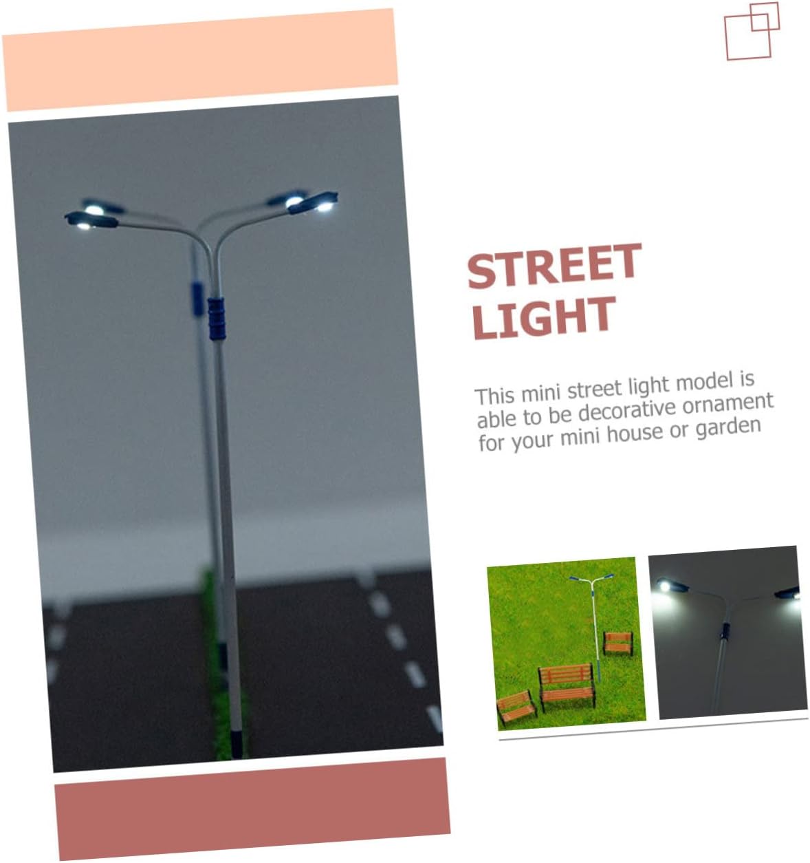 Ornamento da tavolo in sabbia: la pregevole fattura garantisce dettagli e aspetto realistici, lampione a LED facile da usare Modello di lampada: questo mini modello di lampione può essere un ornamento decorativo per la tua mini casa o giardino, un ornamento paesaggistico in miniatura Lampione stradale micro paesaggistico: con un design unico e chic, la tua casa in miniatura sembra più calda e alla moda, lampada a lanterna stradale Piccolo arredamento da giardino: il modello di lampada da giardino è dotato di fondo piatto, che garantisce stabilità sulla scrivania e sul pavimento, lampione del villaggio Lampada da esterno: generalmente utilizzata per la decorazione della scena, per aumentare l'effetto del livello della scena del tavolo di sabbia, per l'arredamento esterno