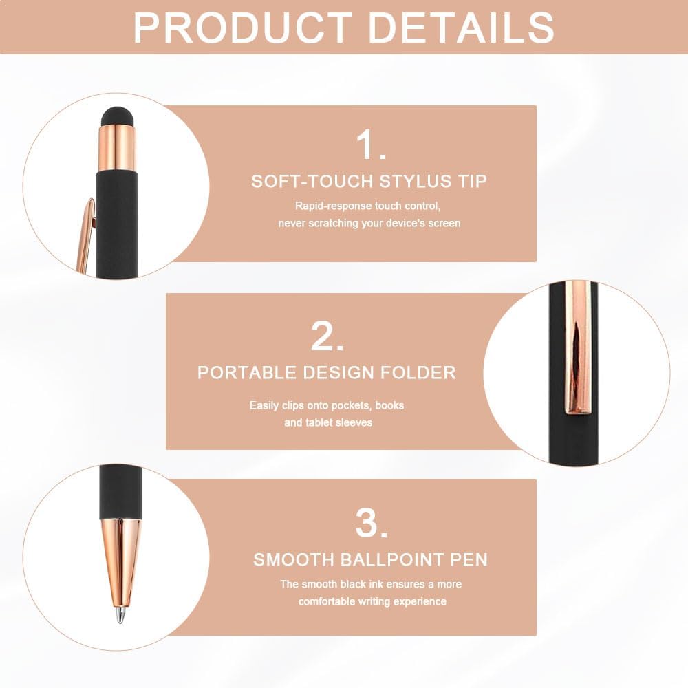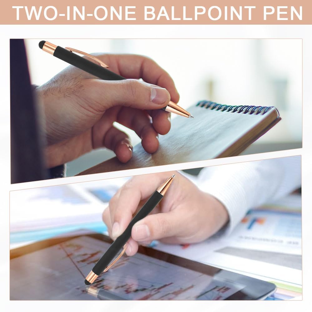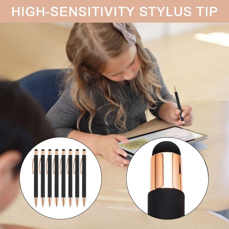 Materiali di alta qualità: la penna è realizzata in metallo di alta qualità e gomma morbida, durevole e durevole. La penna per pad dispone di punte morbide, non solo proteggono il touchscreen dai graffi, ma aumentano anche la sensibilità. Per una presa confortevole, con una punta liscia e setosa e inchiostro trasparente. Design unico: il design 2 in 1 conferisce a questa penna più funzioni; è possibile utilizzarlo non solo per appunti su carta, ma anche sullo schermo del telefono o tablet. Lo stilo è compatibile con qualsiasi dispositivo touch screen, tra cui smartphone, tablet e laptop, rendendolo uno strumento versatile per il lavoro o l'uso quotidiano. Scrittura delicata: le penne a sfera offrono un flusso d'inchiostro uniforme per una sensazione di scrittura fluida. Set di scrittura di alta qualità per ufficio, studio, scuola, casa o matrimonio. Penna a sfera di alta qualità L'inchiostro nero è facile da asciugare, non facile da sbavare e sbavare. Sostituzione rapida: la mina da 1,0 mm è supportata a molla e può essere sostituita rapidamente con una leggera pressione. L'inchiostro nero è facile da asciugare, non facile da macchiare e spalmare;la punta fornisce una linea spessa, solida e non troppo spessa. Facile da trasportare: queste penne a sfera in metallo sono retrattili e dispongono di una clip da tasca, possono essere fissate alla camicia, al libro o al blocco e sono quindi sempre a portata di mano. Adatto per studenti, insegnanti, chef, dipendenti come regalo per il loro compleanno, Natale, ritorno a scuola, promozione dei dipendenti.