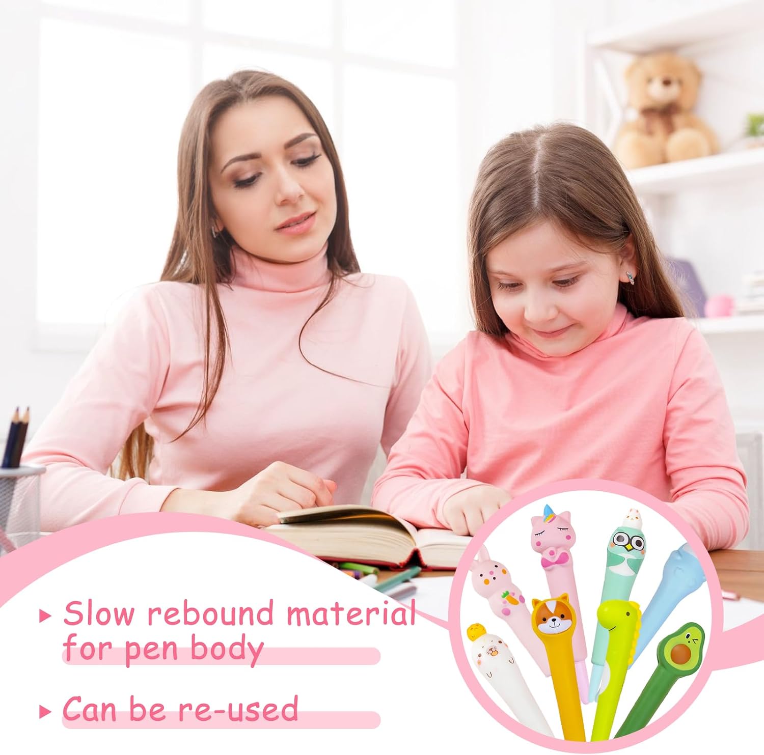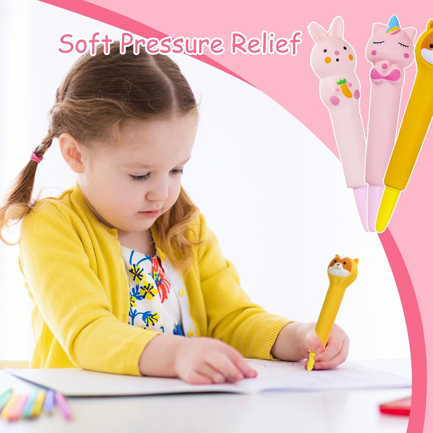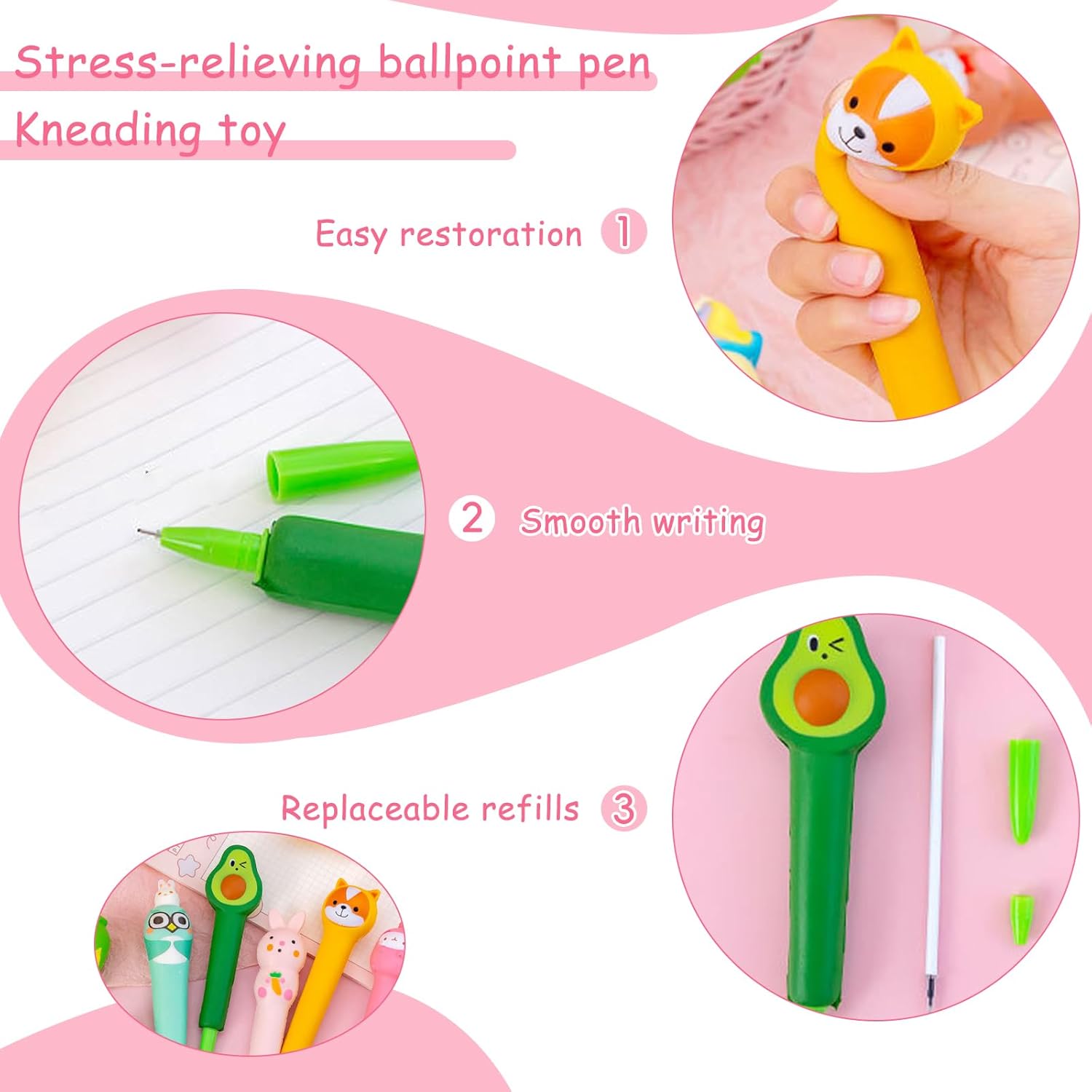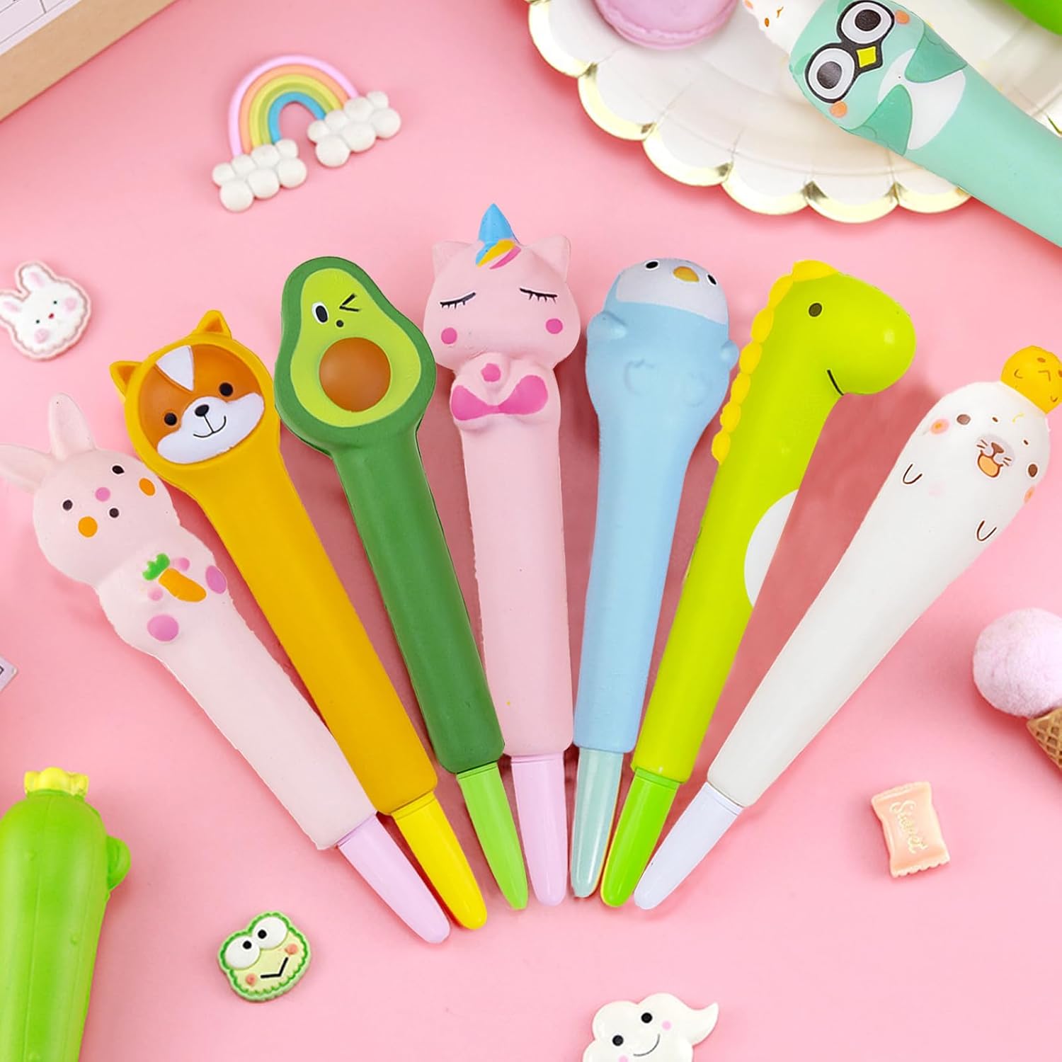 Materiale Sicuro: L'involucro del penne carine squishy è realizzato in PP espanso, atossico e insapore, resistente alla corrosione chimica, debolmente resistente agli acidi e agli alcali, l'inchiostro non perde facilmente, adatto agli studenti per scrivere a lungo Design Creativo: Penna gel antistress squeezies comprende otto stili di penne neutre, come animali, frutta, ecc., con colori brillanti e forme vivaci, che possono essere utilizzate per scrivere e per alleviare lo stress Pratico e Conveniente: Scrittura penne antistress adorabili può sostituire la ricarica, è riciclabile, il materiale complessivo è leggero, morbido e confortevole al tatto, l'inchiostro scorrevole, facile da scrivere, riduce l'onere Pratico e Conveniente: Scrittura penne antistress adorabili può sostituire la ricarica, è riciclabile, il materiale complessivo è leggero, morbido e confortevole al tatto, l'inchiostro scorrevole, facile da scrivere, riduce l'onere Ampia Gamma di Usi: Squeezies anti stress penne non è solo adatto a studenti e lavoratori d'ufficio, ma anche molto adatto per l'uso a casa, in ufficio o a scuola, oltre a scrivere, tutti i giorni può essere utilizzato anche come giocattoli pizzico
