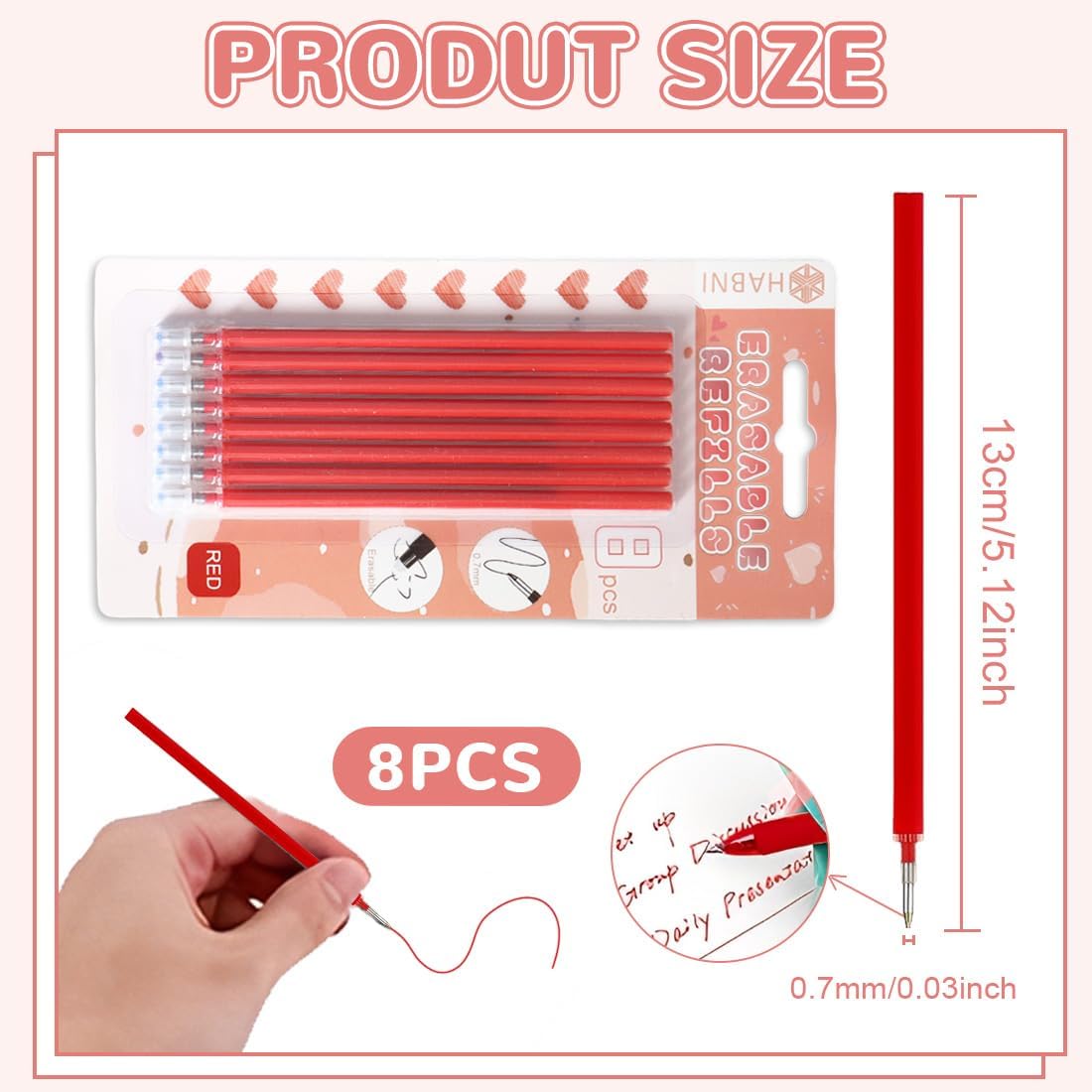 1,✍【Minerale di alta qualità e cancellabili】: La nostra confezione da 8 ricariche per penne utilizza inchiostro termosensibile di alta qualità che offre colori vivaci e una cancellazione facile. La scrittura è fluida e senza sforzo, lasciando un'esperienza di scrittura piacevole e pulita. Queste ricariche sono ideali per appunti, disegni e progetti creativi. 2,✏【Inchiostro cancellabile di alta qualità per una scrittura fluida】: Le ricariche HABNI sono riempite con inchiostro termocromatico di alta qualità di colore rosso, che consente una scrittura fluida e uniforme. L'inchiostro è facilmente cancellabile, ideale per correzioni senza lasciare tracce – perfetto per l'uso quotidiano a scuola, in ufficio o a casa. 3,🖋【Durabilità e ottima performance】: Ogni ricarica è stata sottoposta a test rigorosi e offre una portata di scrittura superiore a 200 metri. L'inchiostro rimane vivace e chiaro per lungo tempo, garantendo risultati affidabili anche con un uso frequente.Ogni mina ha una punta fine di 0,7 mm e una lunghezza di 13 cm.Queste ricariche sono progettate per una lunga durata e una performance costante. 4,🔥【Consigli importanti per l'utilizzo】: Poiché l'inchiostro è termosensibile, è consigliabile tenere le ricariche lontane dalle fonti di calore dirette per evitare sbiadimenti o cambiamenti di colore. Ideali per la scrittura e il disegno, ma non adatte per documenti ufficiali. La loro versatilità si esprime al meglio in progetti creativi e artistici. 5,🎁【Regalo perfetto per ogni occasione】: Le ricariche sono confezionate in un pratico blister, rendendole un regalo ideale per bambini, studenti, insegnanti e amici. Sono perfette per compleanni, festività, inizio dell'anno scolastico o per qualsiasi altra occasione speciale.
