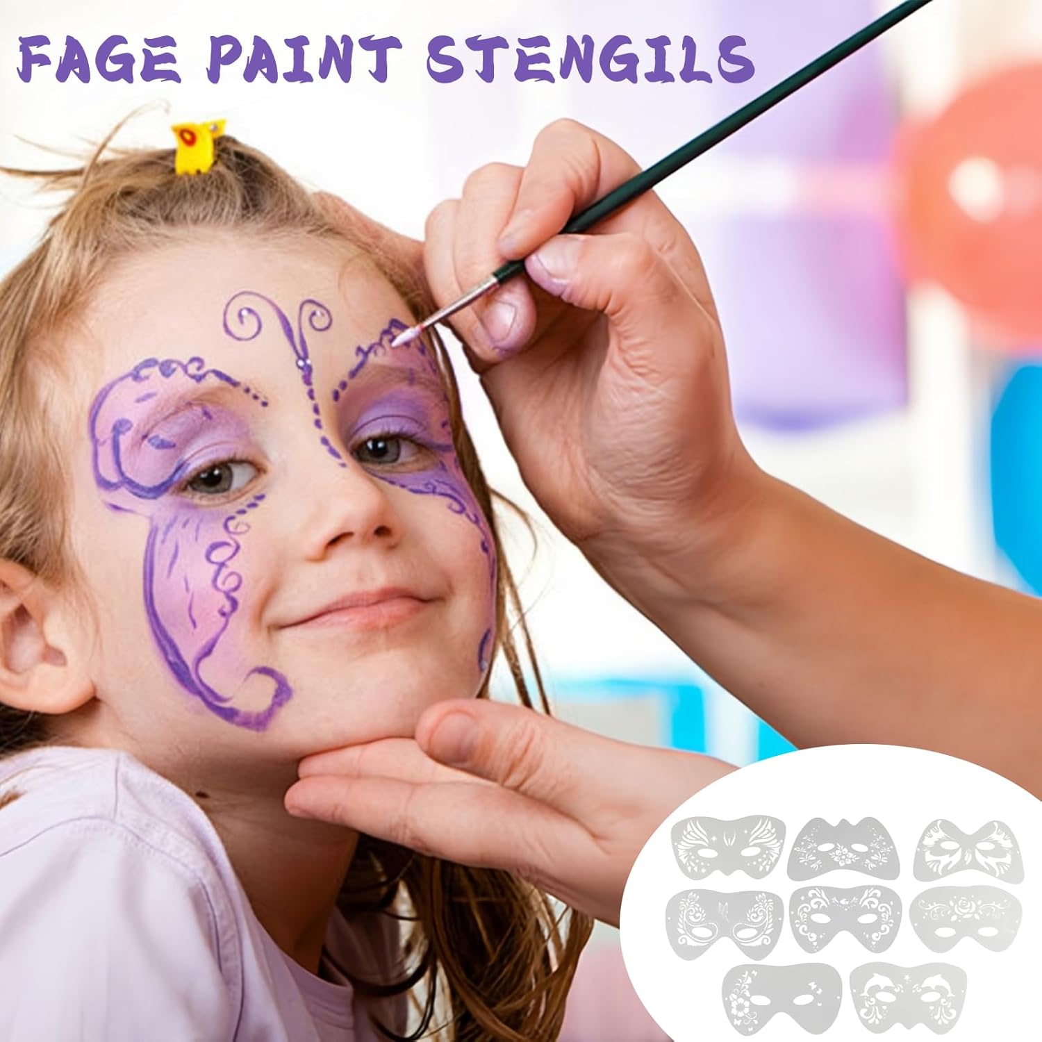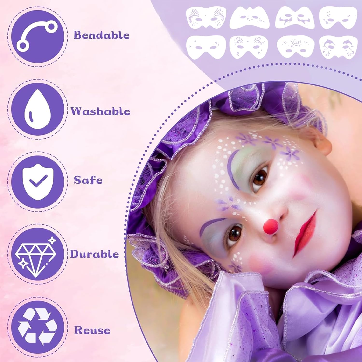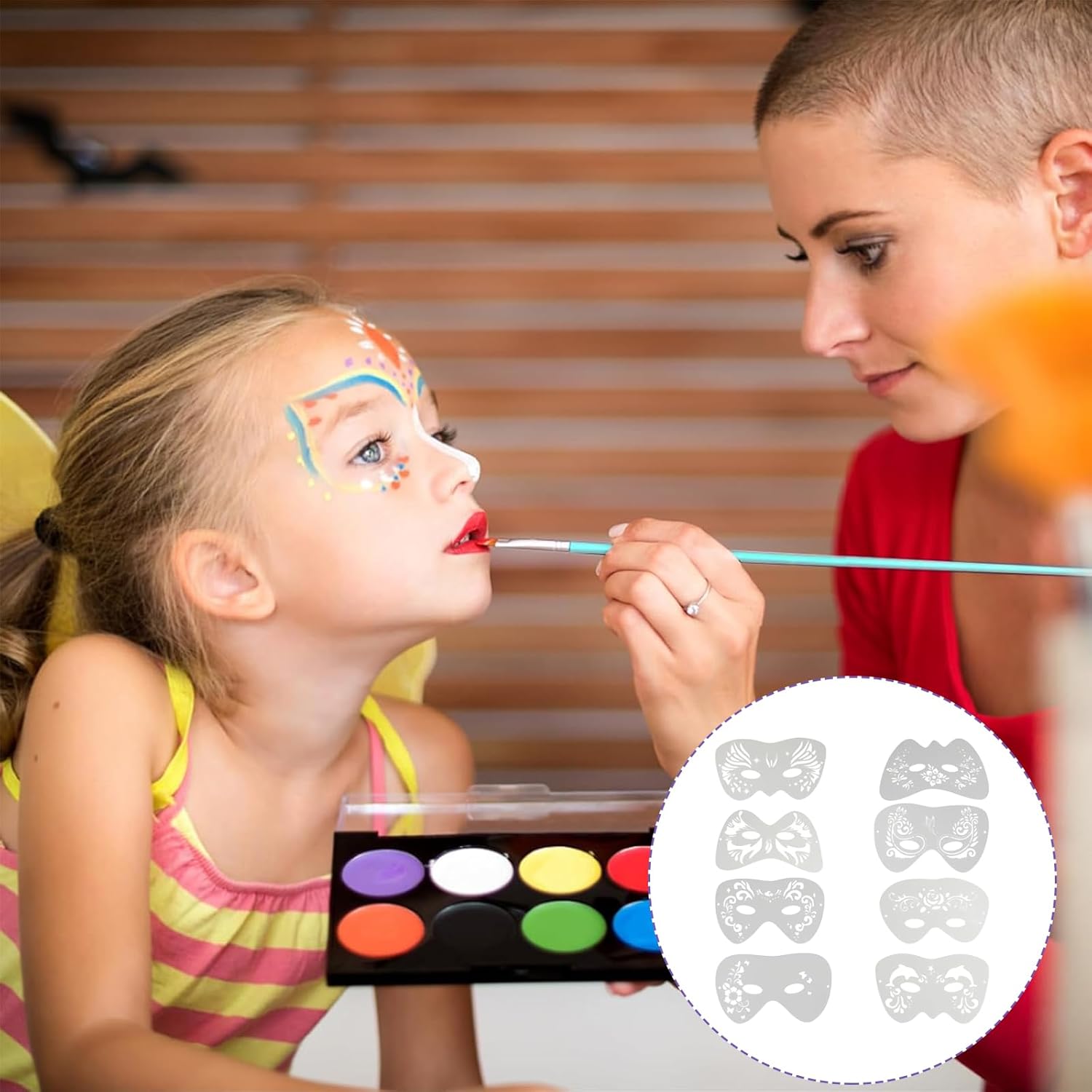 Caratteristiche del Prodotto: Questo set contiene 8 modelli unici di pittura del viso con stili diversi, sufficienti per soddisfare le tue esigenze quotidiane di fai da te. Ciascuno stencil per la pittura del viso misura 20x12,5 cm, perfetto per la pittura del viso e del corpo della maggior parte delle persone. Puoi scegliere il tuo motivo preferito da dipingere sul tuo viso durante feste o festival, che ti porterà più gioia e felicità! Diversi Design: Il nostro Stencil di Pittura del Viso ha una varietà di design, con motivi vivaci e belli. Include stampe di animali (delfini, libellule, farfalle), forme (fiori, stelle, cuori, maschere), nonché elementi decorativi per i bordi. Perfetto per migliorare qualsiasi attività di pittura del viso. Offri una meravigliosa esperienza visiva e attira l'attenzione della gente. Facile da Usare: Stencil truccabimbi Facile da usare. Basta far aderire lo stencil alla pelle, distribuire uniformemente la vernice con una spugna o un pennello, quindi rimuovere lo stencil per rivelare il tuo lavoro. Dopo ogni utilizzo, puliscili semplicemente con acqua tiepida e sapone e saranno pronti per la tua prossima sessione creativa. Materiale di Alta Qualità: Trucco del Viso Riutilizzabile Stencil Realizzato in materiale plastico PET di alta qualità, pieghevole ed elastico, con superfici e bordi lisci e arrotondati, non graffierà la pelle delicata durante l'uso, garantendo un utilizzo sicuro. Sono lavabili e possono essere lavati, conservati e riutilizzati nel tempo. Scene Applicabili: Queste Stencil Riutilizzabile per Pittura per il Viso sono ampiamente utilizzate e possono essere utilizzate su viso, corpo, pareti, tela e altre superfici lisce. Sono perfetti per feste di compleanno, balli, feste scolastiche, Halloween, feste in maschera, Natale, sfilate e carnevali, esaltando l'atmosfera festosa di ogni evento.