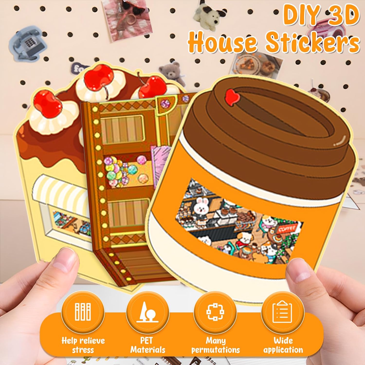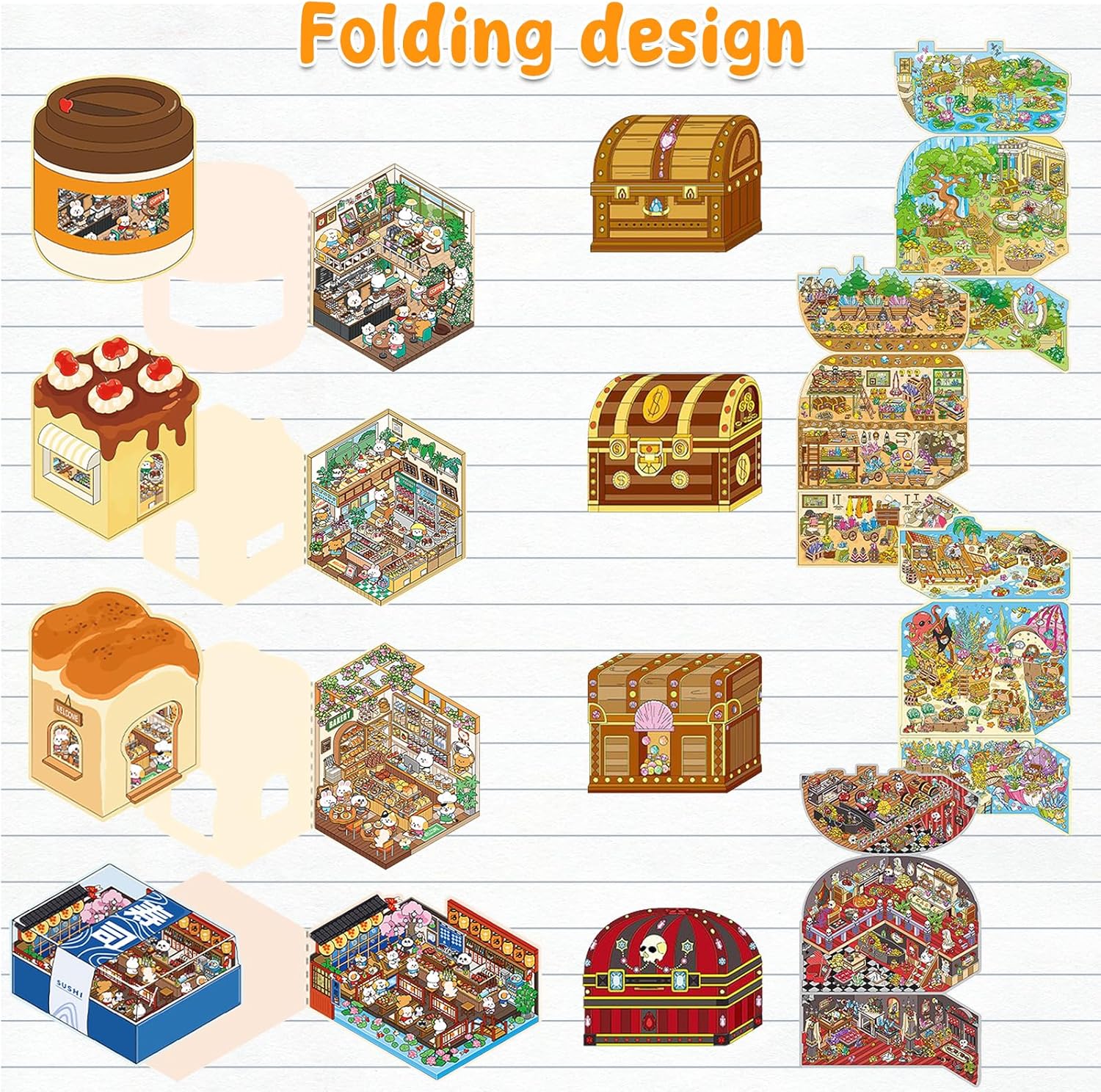 Adesivi riutilizzabili: il materiale di base consente molteplici applicazioni, permettendoti di personalizzarle e modificarle mentre costruisci le tue scene domestiche. L'adesivo offre un modo divertente per rilassarsi e immergersi nella progettazione della propria scena/casa. Buona decorazione: gli adesivi possono essere applicati su qualsiasi superficie piana, comprese custodie per telefoni, laptop e album di ritagli, e possono essere utilizzati come decorazione per custodie di telefoni, quaderni, album di ritagli, diari, ecc. 8 adesivi a tema: il pacchetto contiene 8 temi, che possono creare scene affascinanti come Good Morning Cafe, Happy Bakery, Lucky Sushi Shop, Happy Dessert House, Underground Treasure Hunt, Castle Treasure, Valley Hide and Search, Crab Treasure Chest, ecc. Viene fornito con 2 pinzette per una facile manipolazione. Materiale PET di alta qualità: i nostri simpatici adesivi sono realizzati in materiale PET, sicuro e durevole. La stampa 3D ad alta definizione viene utilizzata per ottenere effetti visivi sorprendenti e la superficie è rivestita e non facile da rompere. Adesivo scena fai-da-te: il nostro adesivo offre un mondo di immaginazione, con più temi tra cui scegliere. Progetta la scena per il cottage/castello/negozio/segreto secondo la tua fantasia, arreda la casa, crea la minizona dei tuoi sogni.