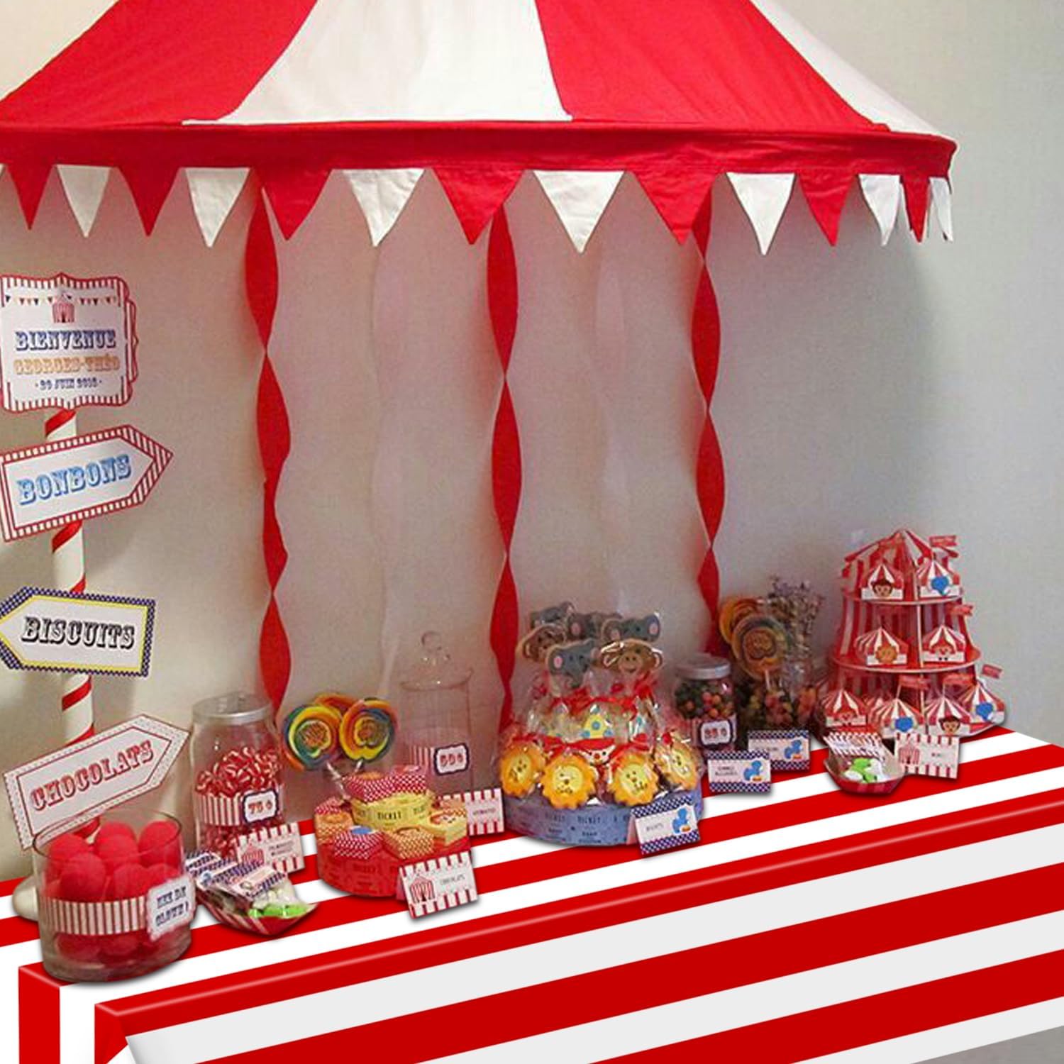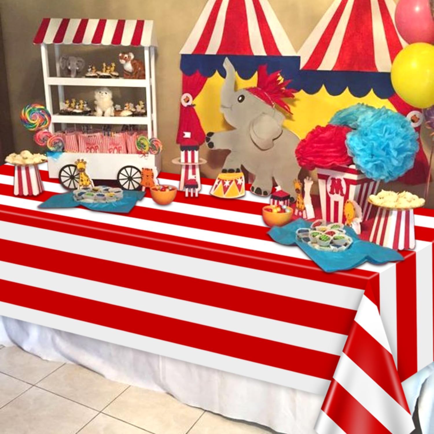 Confezione e dimensioni: riceverai 8 tovaglie a strisce verticali rosse e bianche, delle dimensioni di circa 130 x 220 cm. Questa confezione di tovaglie a tema circo è sufficiente per soddisfare le tue esigenze di decorazione della tavola per una festa a tema circo. Ampio utilizzo: queste decorazioni di carnevale sono popolari tra bambini e adulti, con questa attraente tovaglia di carnevale per circo, cene di Natale, festival, picnic, matrimoni, compleanni, attività all'aperto, cene quotidiane, riunioni di amici, sfondo di carnevale, decorazioni per baby shower, eventi al chiuso e all'aperto, ecc. Design classico a strisce: la classica combinazione di strisce rosse e bianche è intramontabile e alla moda, rendendola l'aggiunta perfetta al tema della vostra festa di carnevale e facile da creare un'atmosfera festosa e allegra. Risparmiate tempo: potete usare un panno umido o un fazzoletto per rimuovere facilmente la polvere o le macchie rimaste sulla tovaglia rossa e bianca durante la festa o semplicemente gettare la tovaglia usa e getta dopo la festa, risparmiando così molto tempo nella pulizia. Materiale di qualità: questa tovaglia a strisce rosse e bianche è realizzata in plastica PE di qualità, impermeabile, resistente e durevole, la superficie liscia la rende molto facile da pulire. Proteggerà bene il tuo tavolo.