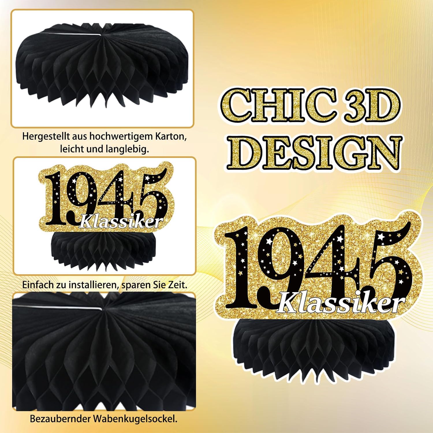 Centrotavola Da Uomo Per 80° Compleanno, 9 Pezzi, A Nido D'Ape, Nero Dorato, Decorazioni Per L'80° Compleanno, Per Donne E Uomini, Regali Di Compleanno (Tedesco)