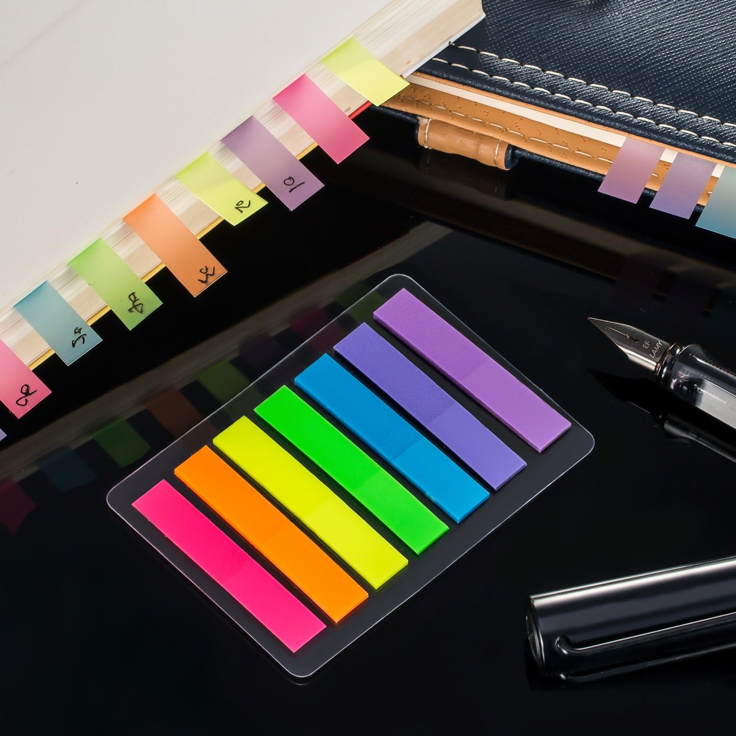 La confezione include: 6 set di foglietti adesivi; Ogni set: 140 fogli, 7 colori, ogni colore 20 fogli; Totalmente 840 fogli in 6 set 7 colori vivaci: rosa rossa, arancione, giallo, verde, blu, viola chiaro e viola; Le strisce colorate assortite funzionano come note codificate a colori. Le bandiere colorate facilitano il ritorno indietro e il recupero delle informazioni di riferimento Adesivo traslucido e rimovibile: viti sottili attraverso strisce, la parte trasparente non copre le informazioni; Adesivo rimovibile per un facile riposizionamento e consente ai tuoi libri di lasciare segni Linguette adesive accattivanti: ottime per contrassegnare le pagine dei libri o evidenziare informazioni importanti su una pagina, facendoti tornare indietro e indicizzare facilmente le informazioni necessarie; Adatto per marcature di libri, segni di lettura, appunti e così via Dimensioni piccole e adatte: linguette rettangolari da 8 mm di larghezza x 45 mm di lunghezza, ideali per l'uso in libri, riviste, cartelle, organizzatori, riviste, cataloghi e raccoglitori