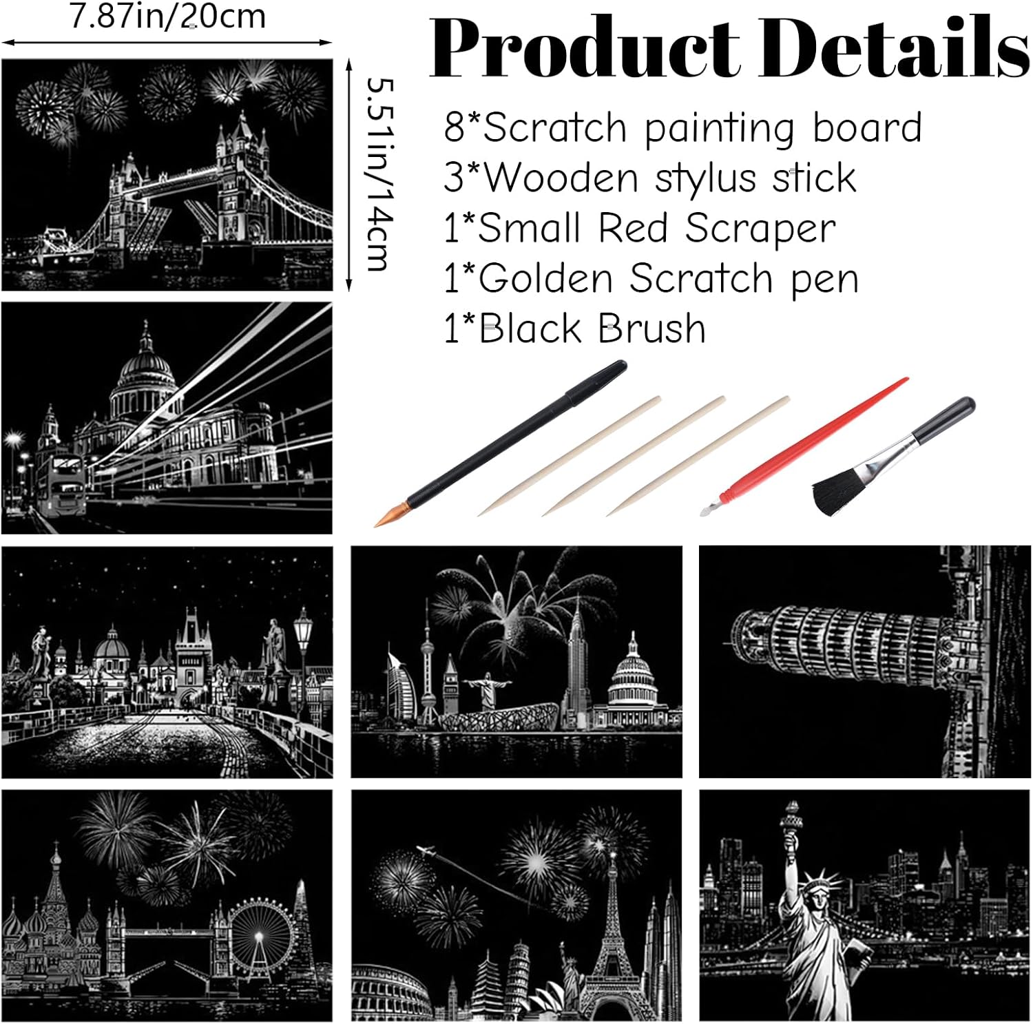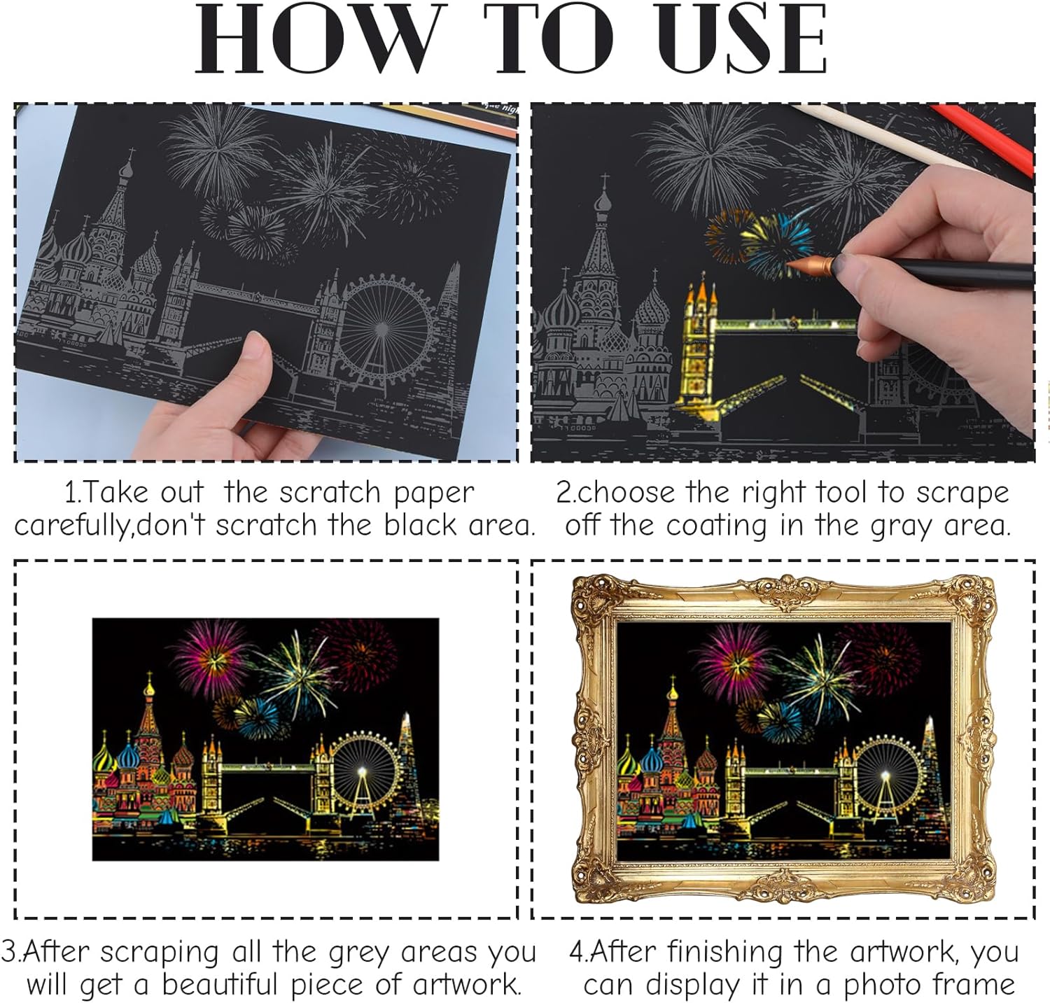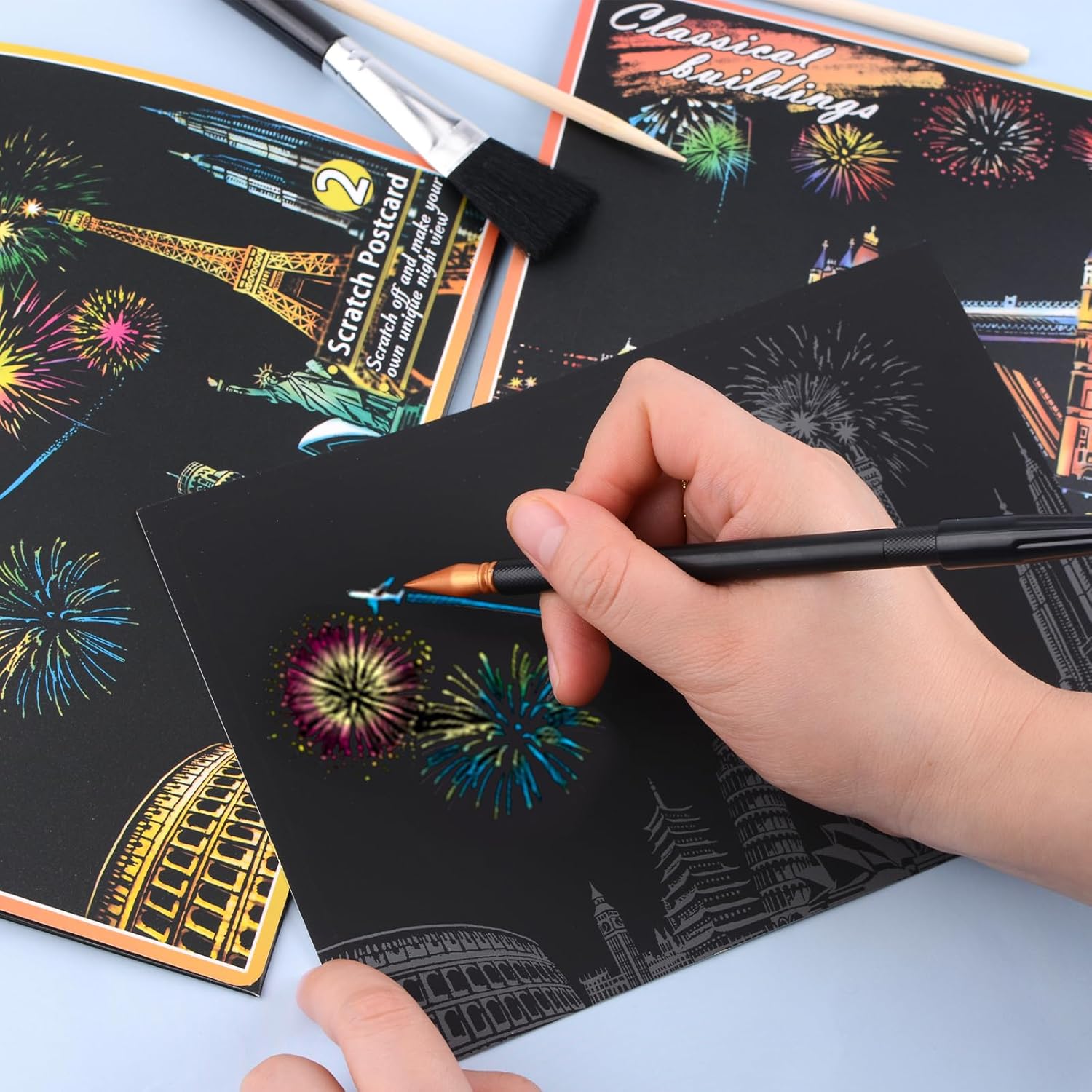 Contenuto della confezione: riceverai 8 pezzi colorati da grattare in diversi modelli e un set di kit abbinato, sufficienti per soddisfare le tue esigenze di utilizzo. Adatto per i principianti per cimentarsi nelle arti della carta da grattare. Facili da usare: i prodotti artistici in carta da grattare presentano motivi dai colori vivaci nascosti sotto un rivestimento opaco, ogni gratta e vinci presenta uno strato di lamina di schizzi, utilizza una penna antigraffio (inclusa) per grattare gli schizzi di colore grigio, rivelando un bel colore sottostante. Non sono necessarie vernici e non graffiano i vestiti dell'utente rispetto alla pittura tradizionale. Materiale di qualità: questa cartolina da grattare è realizzata in cartone colorato innocuo, garantendo una doppia cura per il corpo umano e l'ambiente, consentendo di utilizzarla con più tranquillità. Regalo ideale: il dipinto rifinito con una bella cornice può essere utilizzato per decorare stanze e salotti, ideale come regalo per familiari e amici. È ideale per compleanni, vacanze, feste e altre occasioni. Ampia gamma di applicazioni: questa decorazione arcobaleno può essere utilizzata non solo per coltivare l'interesse per la pittura e sviluppare abilità creative e pratiche, è anche un'ottima decorazione, il processo di raschiatura può aiutare le persone a rilassarsi e alleviare lo stress, godrai anche di un grande senso di realizzazione dopo aver completato le tue opere d'arte da grattare
